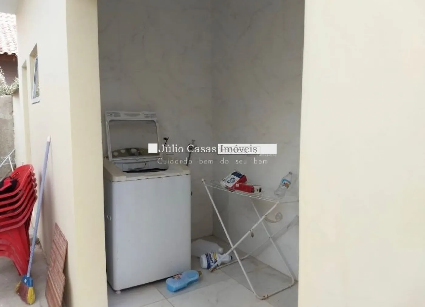 O quintal grande é complementado por uma piscina, criando um ambiente ideal para relaxamento e diversão. A lavanderia é espaçosa e inclui uma despensa e um banheiro adicional, aumentando a praticidade da casa.