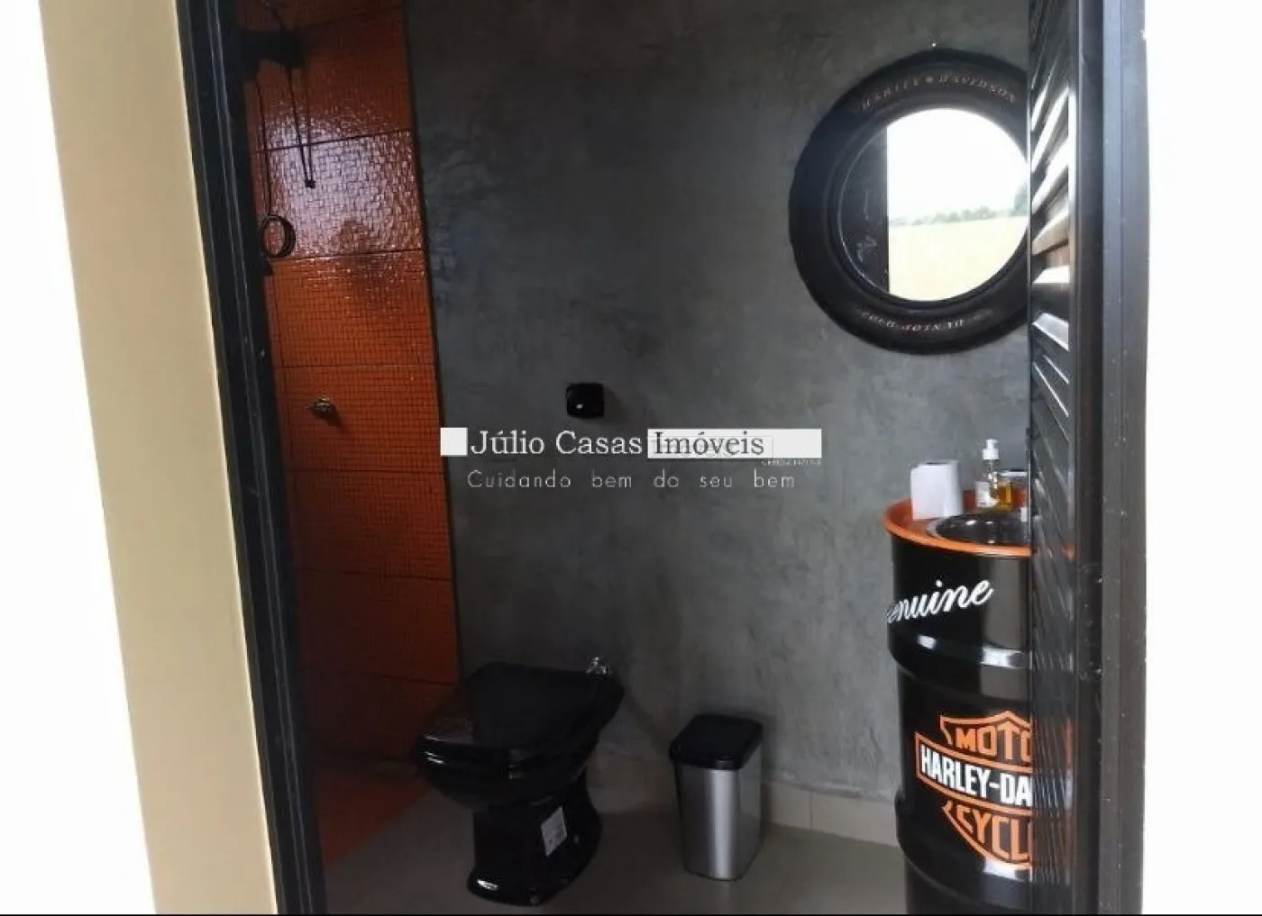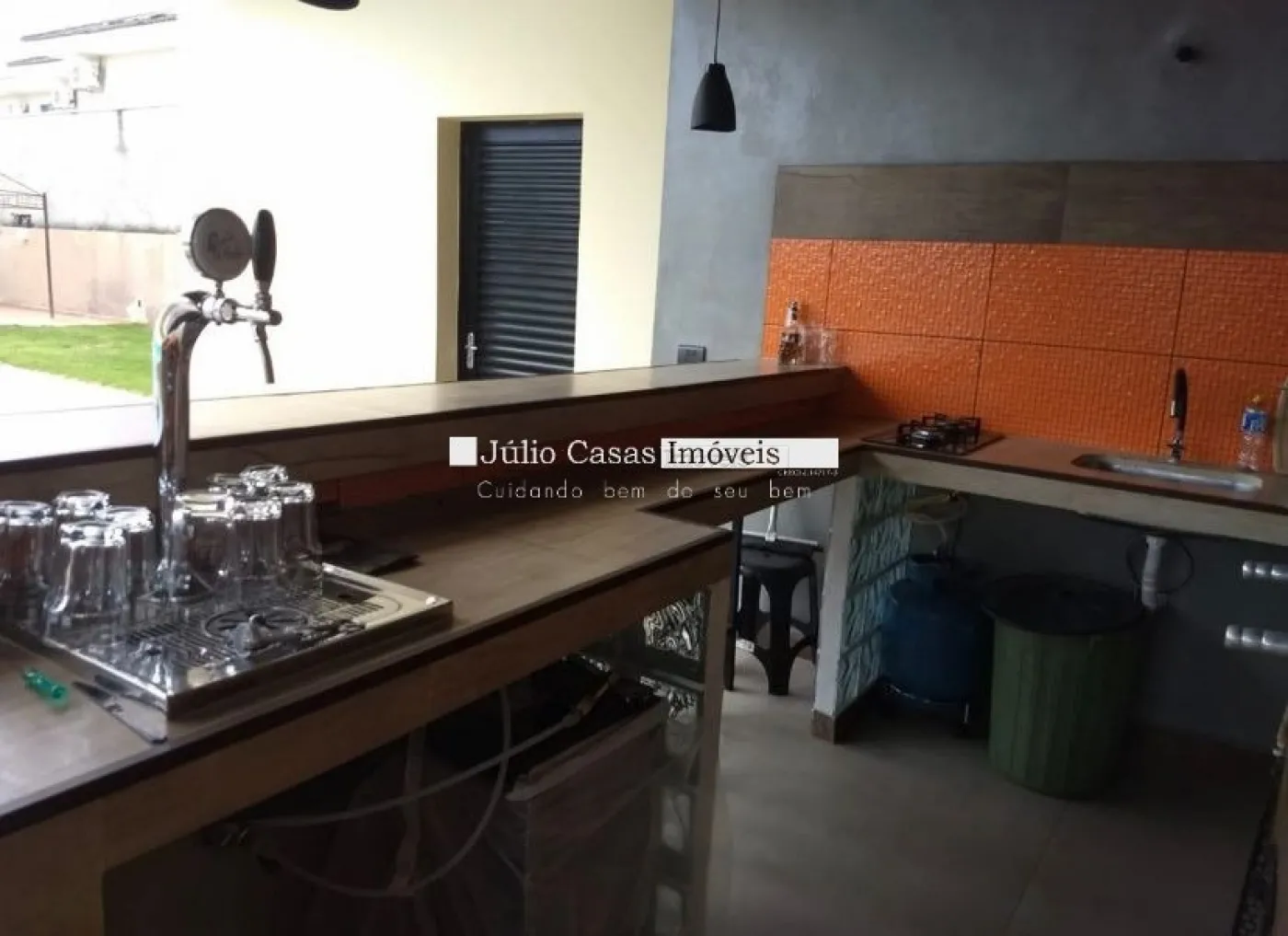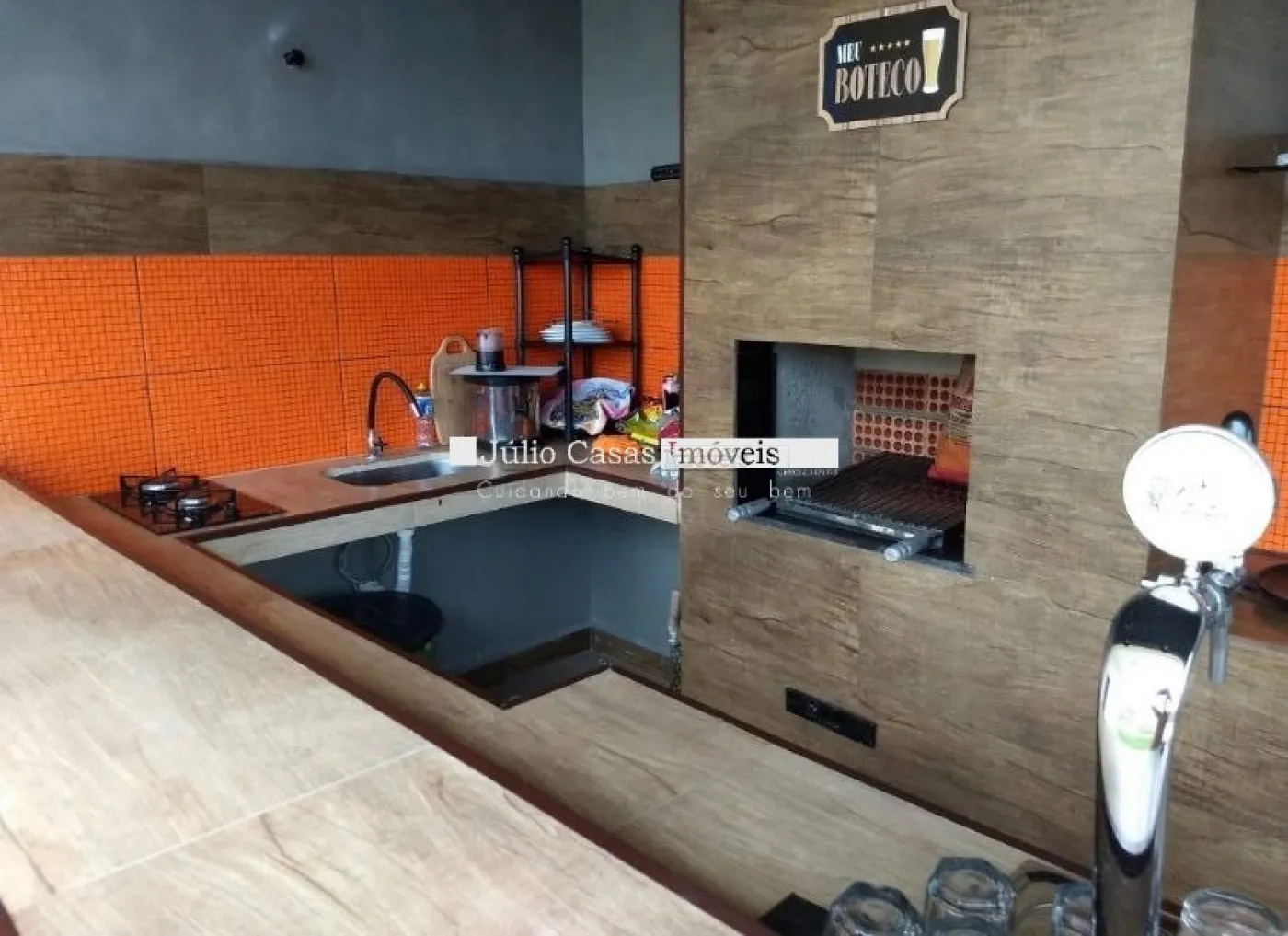 O imóvel conta com um lavabo conveniente e um escritório, ideal para trabalho em casa. A cozinha é modulada, com bancada em mármore, oferecendo um espaço funcional e sofisticado. A área gourmet é um destaque, equipada com churrasqueira, chopeira, fogão a lenha e uma bancada, tornando-a perfeita para receber convidados e aproveitar momentos de lazer.