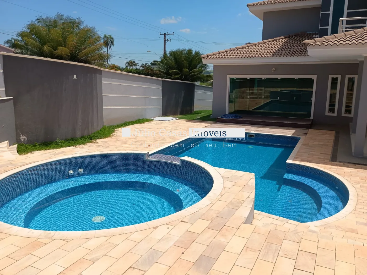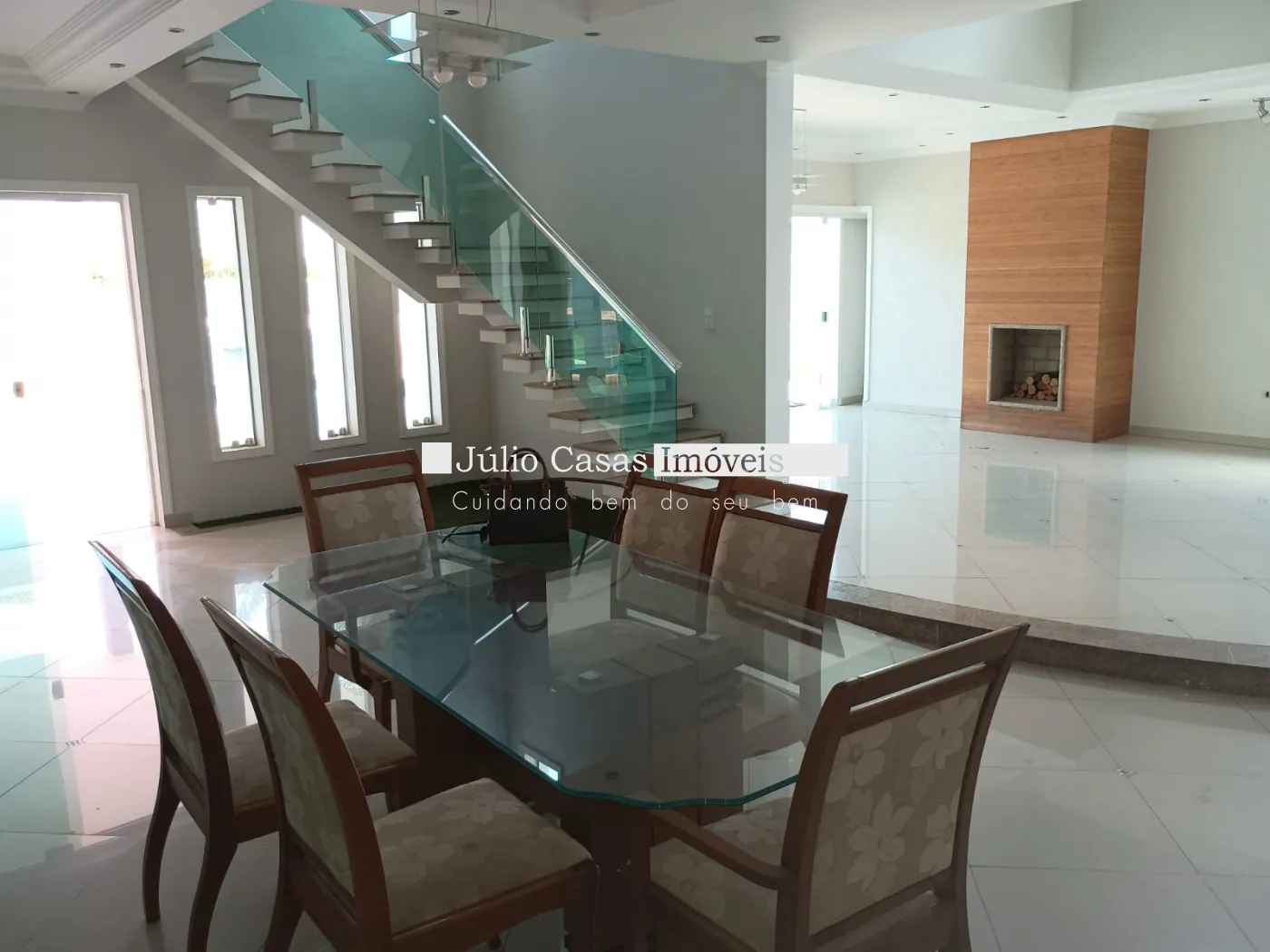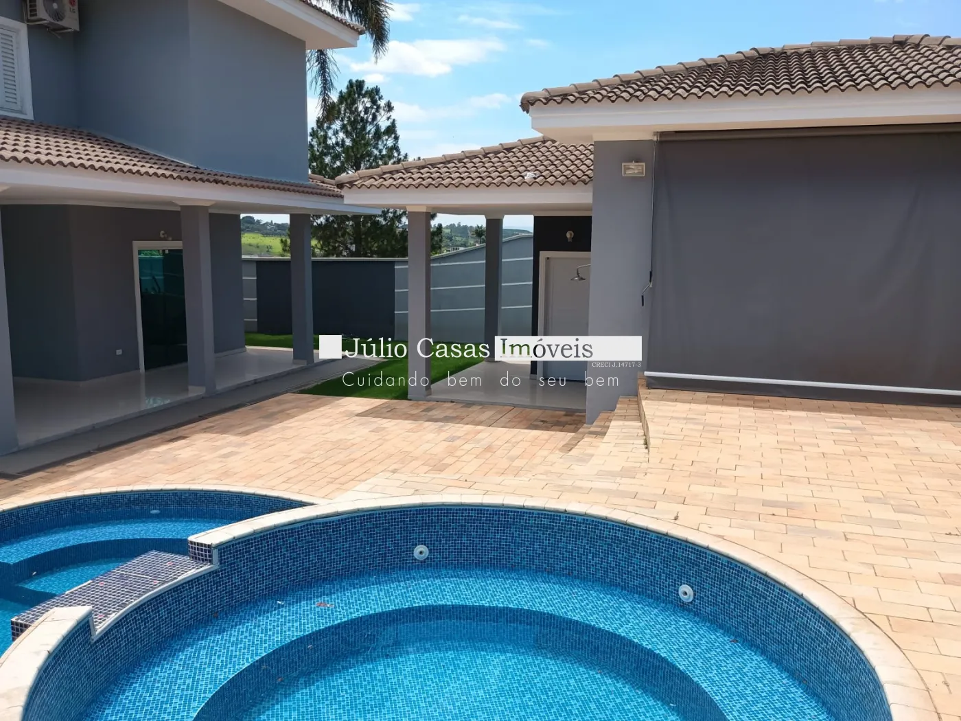 Situada em um condomínio de alto padrão, esta construção está localizada num terreno de esquina onde oferece acesso pela via principal e um aproveitamento do espaço ímpar, com paisagismo riquíssimo. Este imóvel com cerca de 509m² de construção conta com uma ampla varanda, sala de musculação, um espaço gourmet completo e com vista para a piscina e hidromassagem.