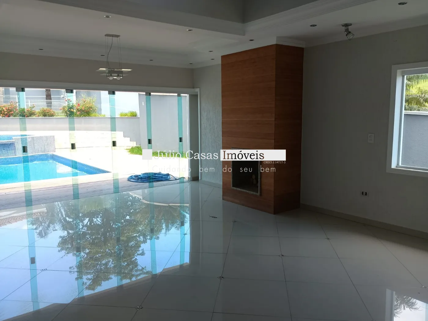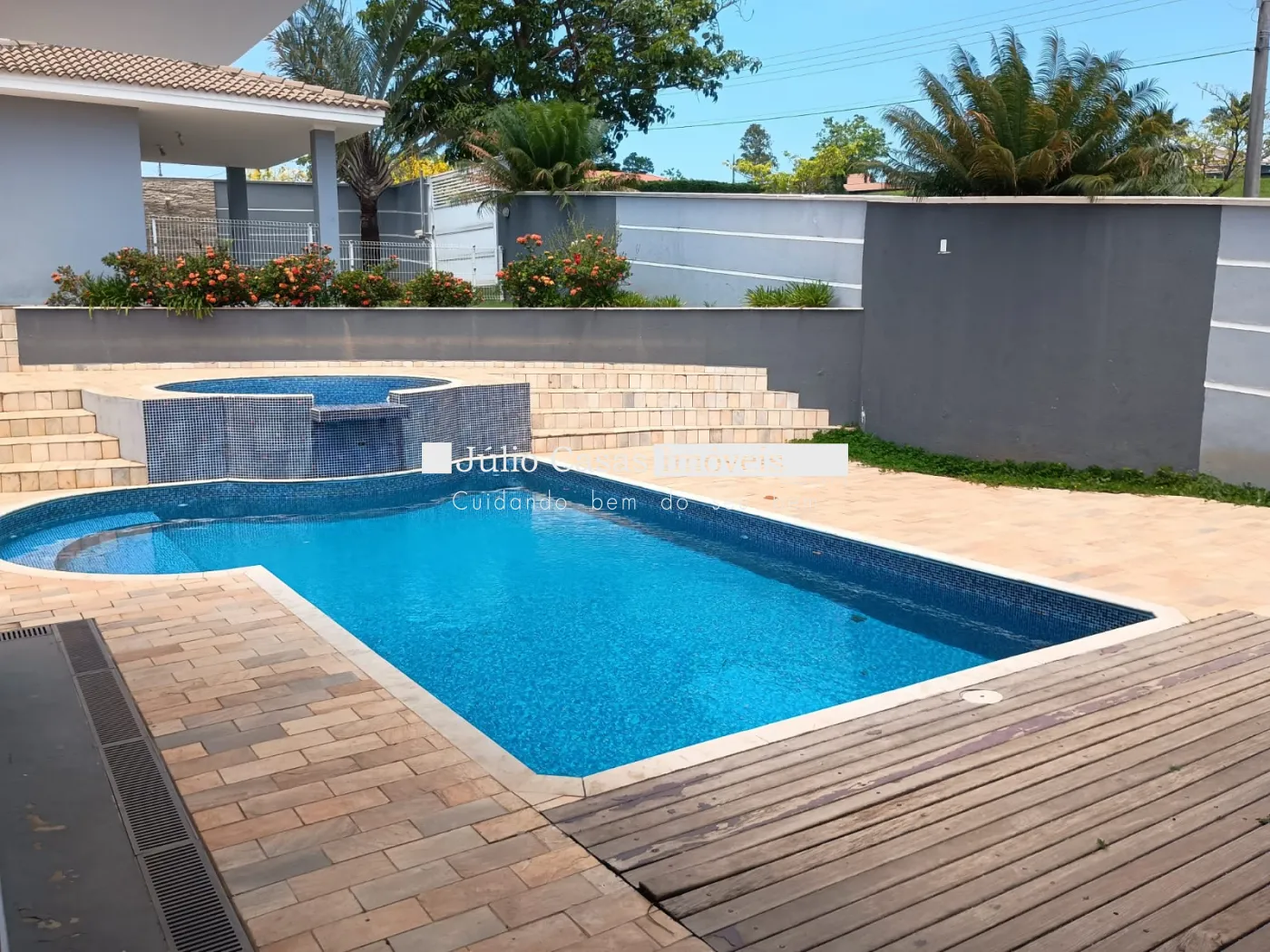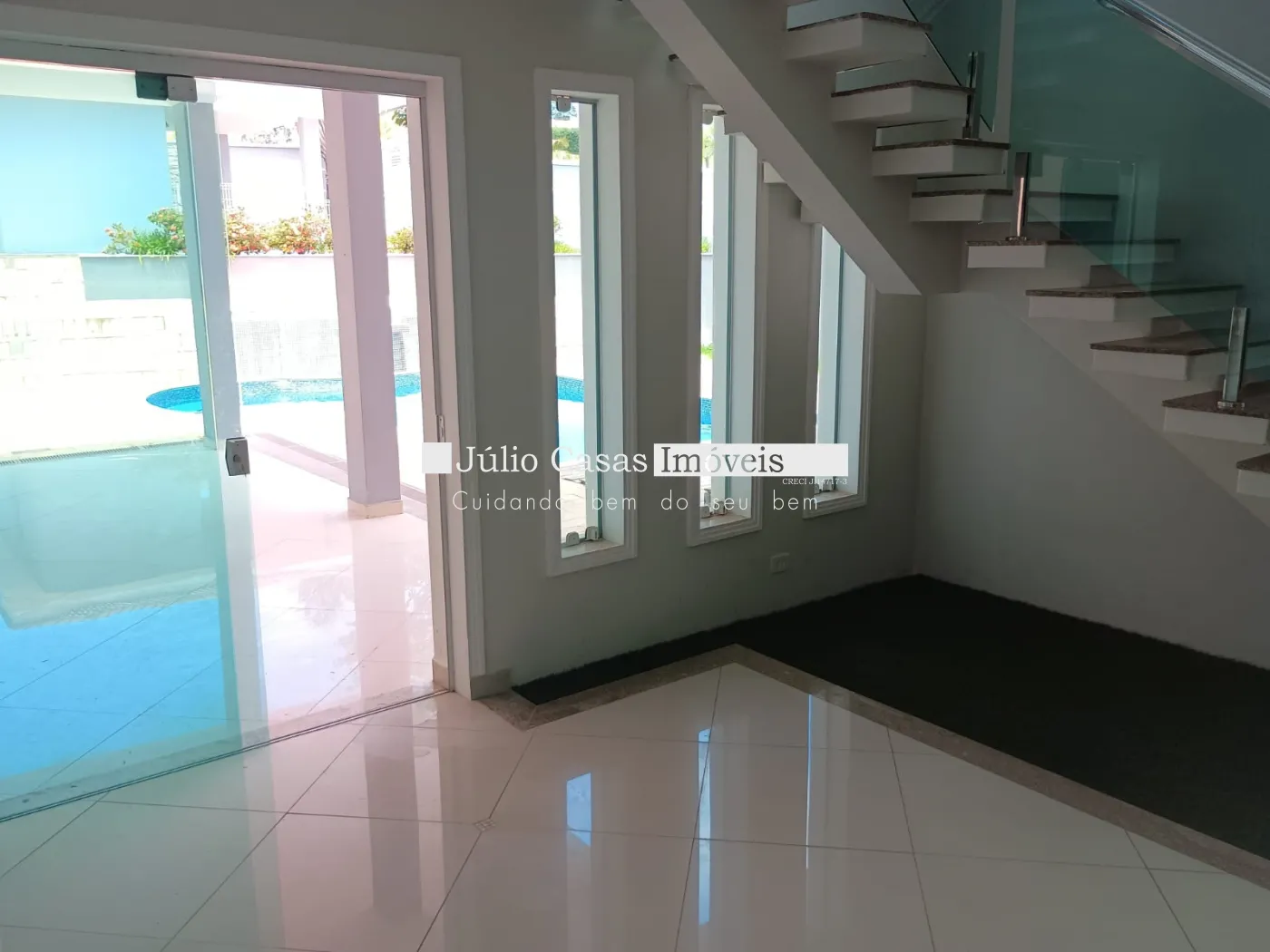 Situada em um condomínio de alto padrão, esta construção está localizada num terreno de esquina onde oferece acesso pela via principal e um aproveitamento do espaço ímpar, com paisagismo riquíssimo. Este imóvel com cerca de 509m² de construção conta com uma ampla varanda, sala de musculação, um espaço gourmet completo e com vista para a piscina e hidromassagem.