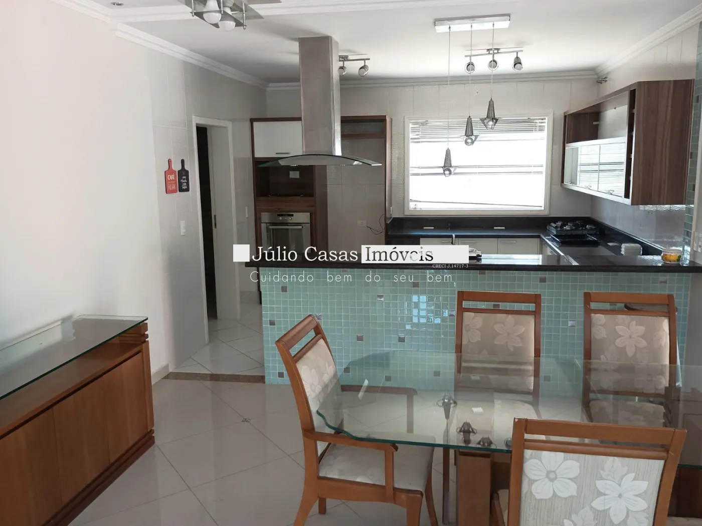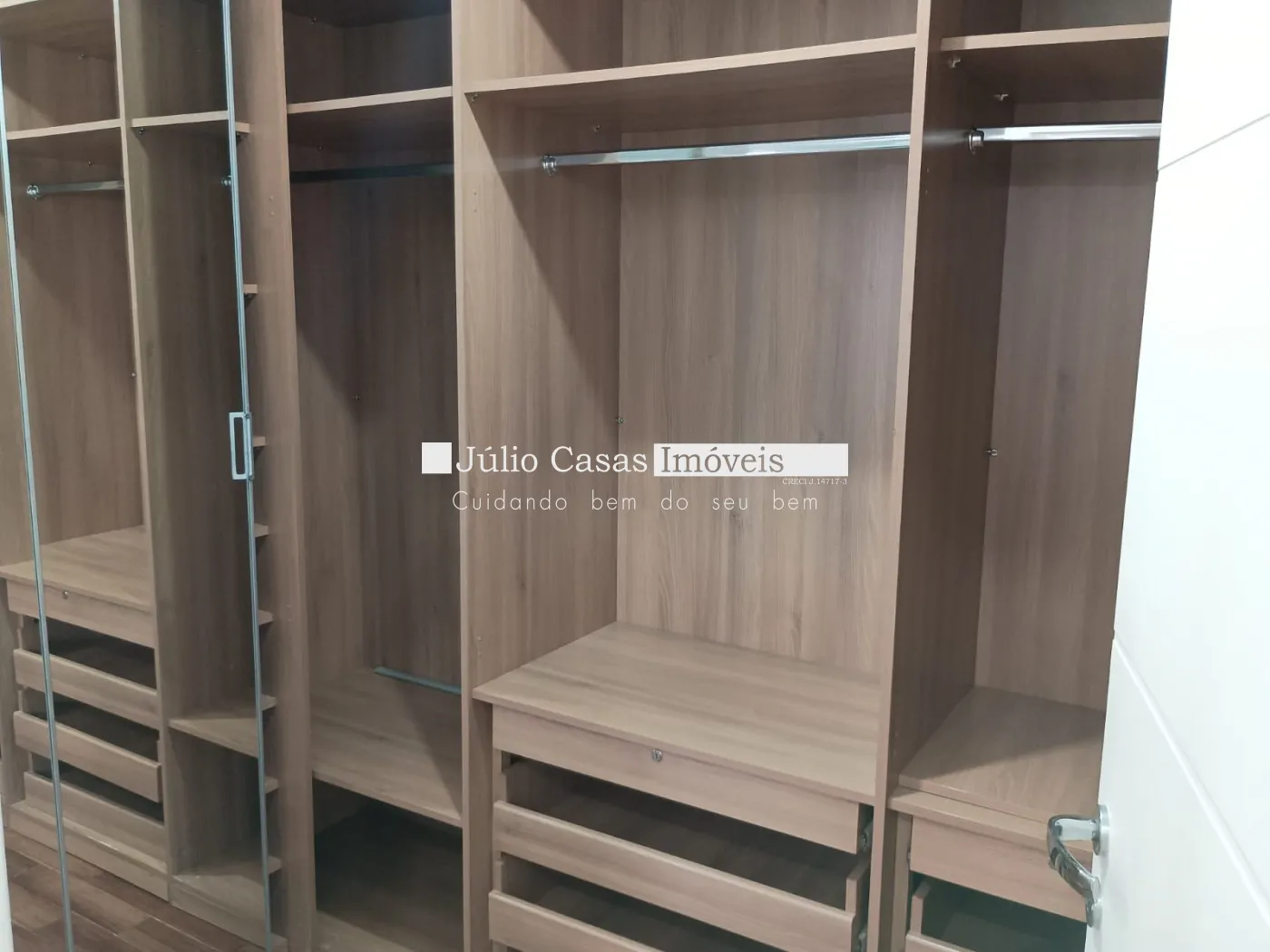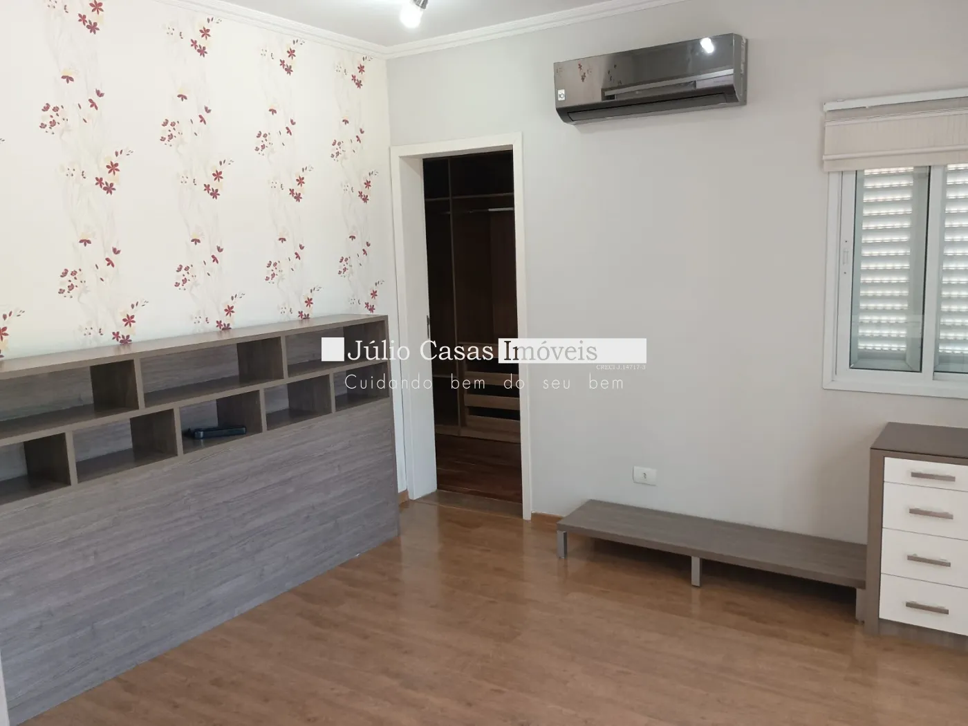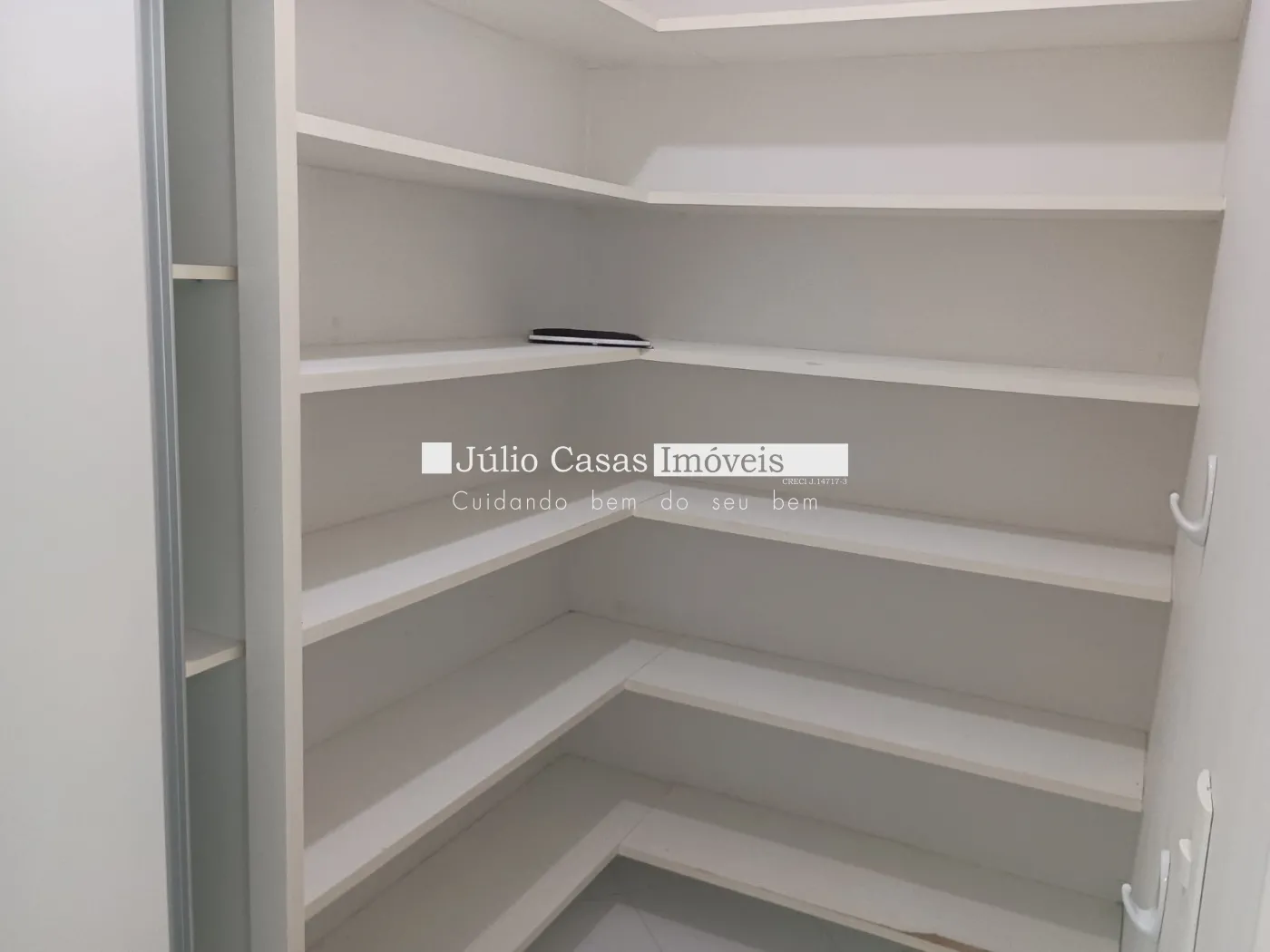 No andar térreo, há sala de jantar, sala de estar com lareira e com excelente iluminação natural, todas com piso em porcelanato. Além disso, um cômodo escritório, também com piso em porcelanato e repleto de armários modulados e ar condicionado. O térreo inclui ainda um lavabo, uma cozinha modulada estilo americano, uma despensa e uma lavanderia. No andar superior, encontram-se três dormitórios todos suítes com piso laminado, ar condicionado, varanda sendo uma suíte master com closet e hidromassagem. no hall de entrada para as suítes encontra-se uma sala de vídeo com piso em laminado de madeira, painel e ar condicionado.