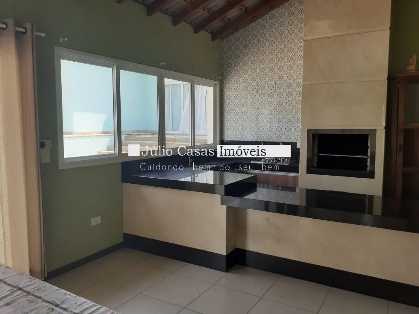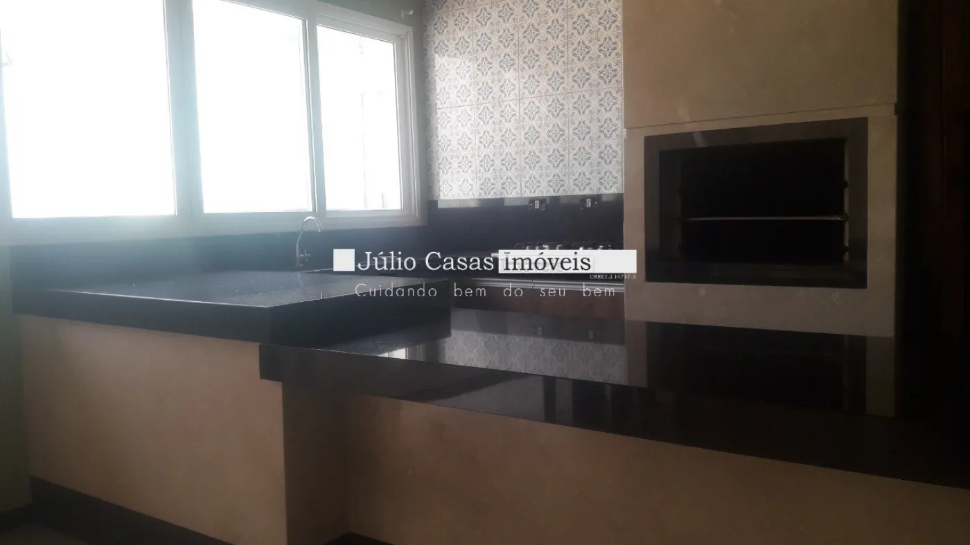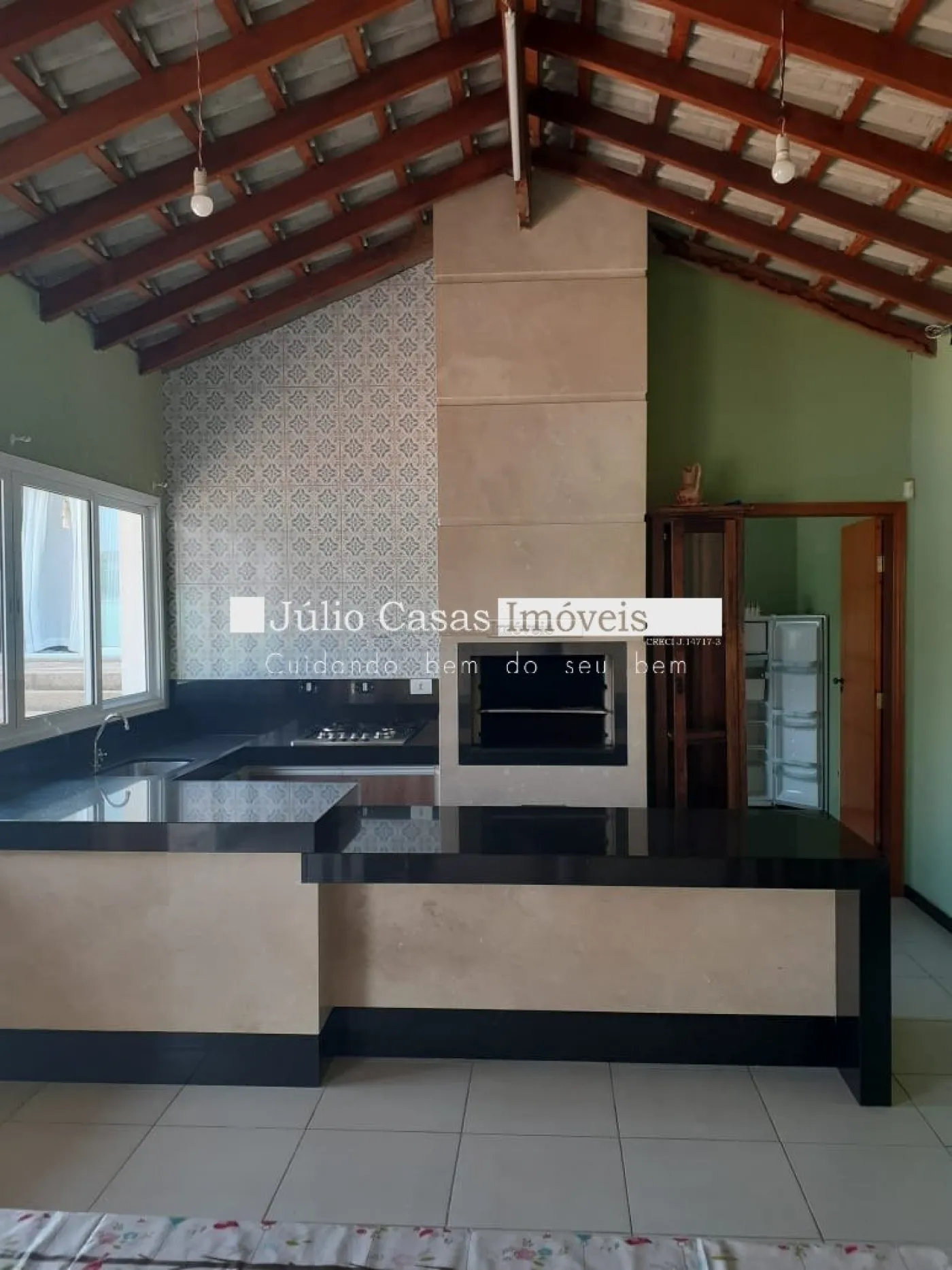 Casa térrea em condomínio com 232m2 de área construída sobre terreno de 800m2 , contendo sala para 2 ambientes espaçosos , lavabo com bancada em mármore Italiano, escritório contendo 2 salas com bancada de trabalho em granito Preto São Gabriel podendo ser revertido em dormitório, Cozinha com bancadas em Granito Preto São Gabriel , piso em porcelanato, armários embutidos , , lavanderia , despensa com armários , 3 dormitórios sendo 1 com suite, banho social , ambos com bancada em mármore Italiano , quartos com piso em laminado de madeira , área gourmet fechada com portas de correr em alumínio e vidros blindex, balcões e pia em granito preto, churrasqueira revestida com Mármore Espanhol Crema Marfil, piso em porcelanato , área da piscina totalmente revestida com pedras São Tomé, escada em granito rustico, piscina em vinil 9x5m com cascata em aço Inox , jardins em todo o contorno do imóvel,