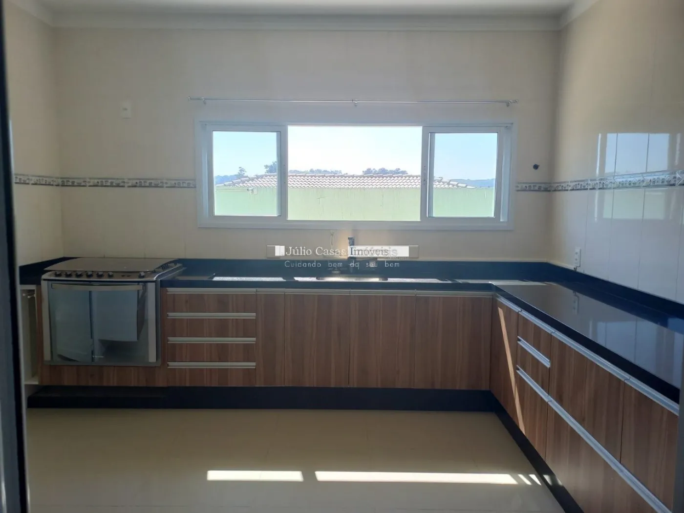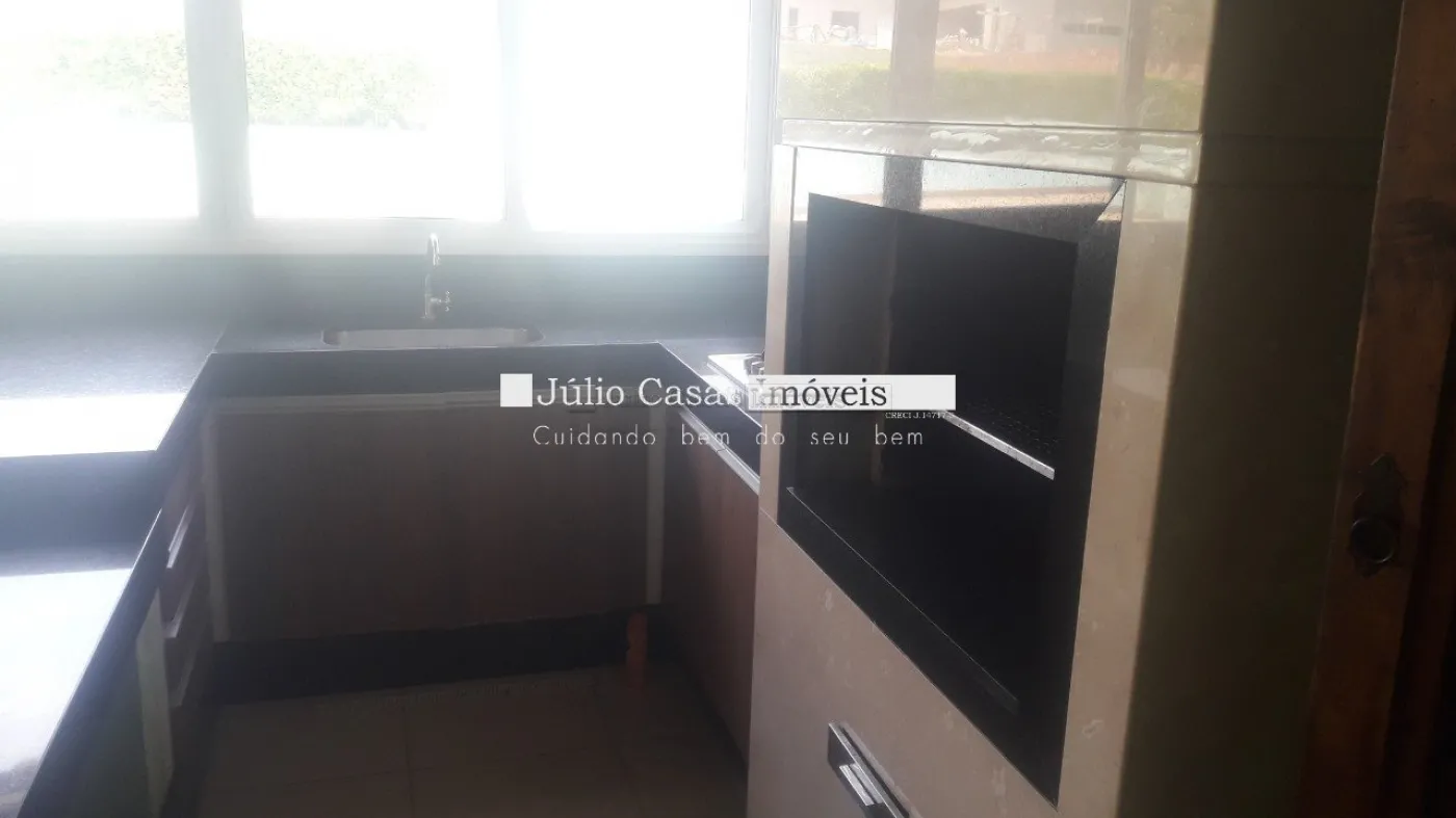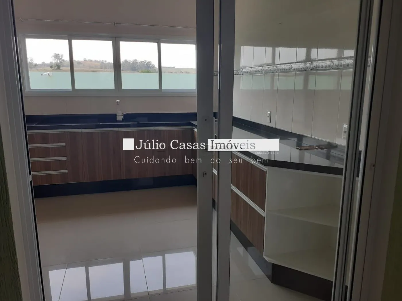 Casa térrea em condomínio com 232m2 de área construída sobre terreno de 800m2 , contendo sala para 2 ambientes espaçosos , lavabo com bancada em mármore Italiano, escritório contendo 2 salas com bancada de trabalho em granito Preto São Gabriel podendo ser revertido em dormitório, Cozinha com bancadas em Granito Preto São Gabriel , piso em porcelanato, armários embutidos , , lavanderia , despensa com armários , 3 dormitórios sendo 1 com suite, banho social , ambos com bancada em mármore Italiano , quartos com piso em laminado de madeira , área gourmet fechada com portas de correr em alumínio e vidros blindex, balcões e pia em granito preto, churrasqueira revestida com Mármore Espanhol Crema Marfil, piso em porcelanato , área da piscina totalmente revestida com pedras São Tomé, escada em granito rustico, piscina em vinil 9x5m com cascata em aço Inox , jardins em todo o contorno do imóvel,