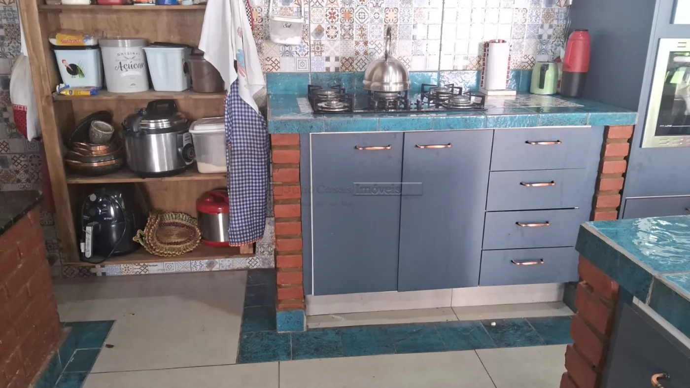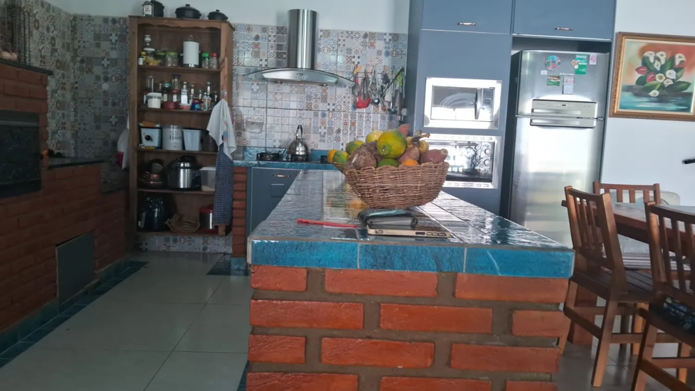 Cozinha: Decorada com azulejos retrô, combinando charme e funcionalidade.
