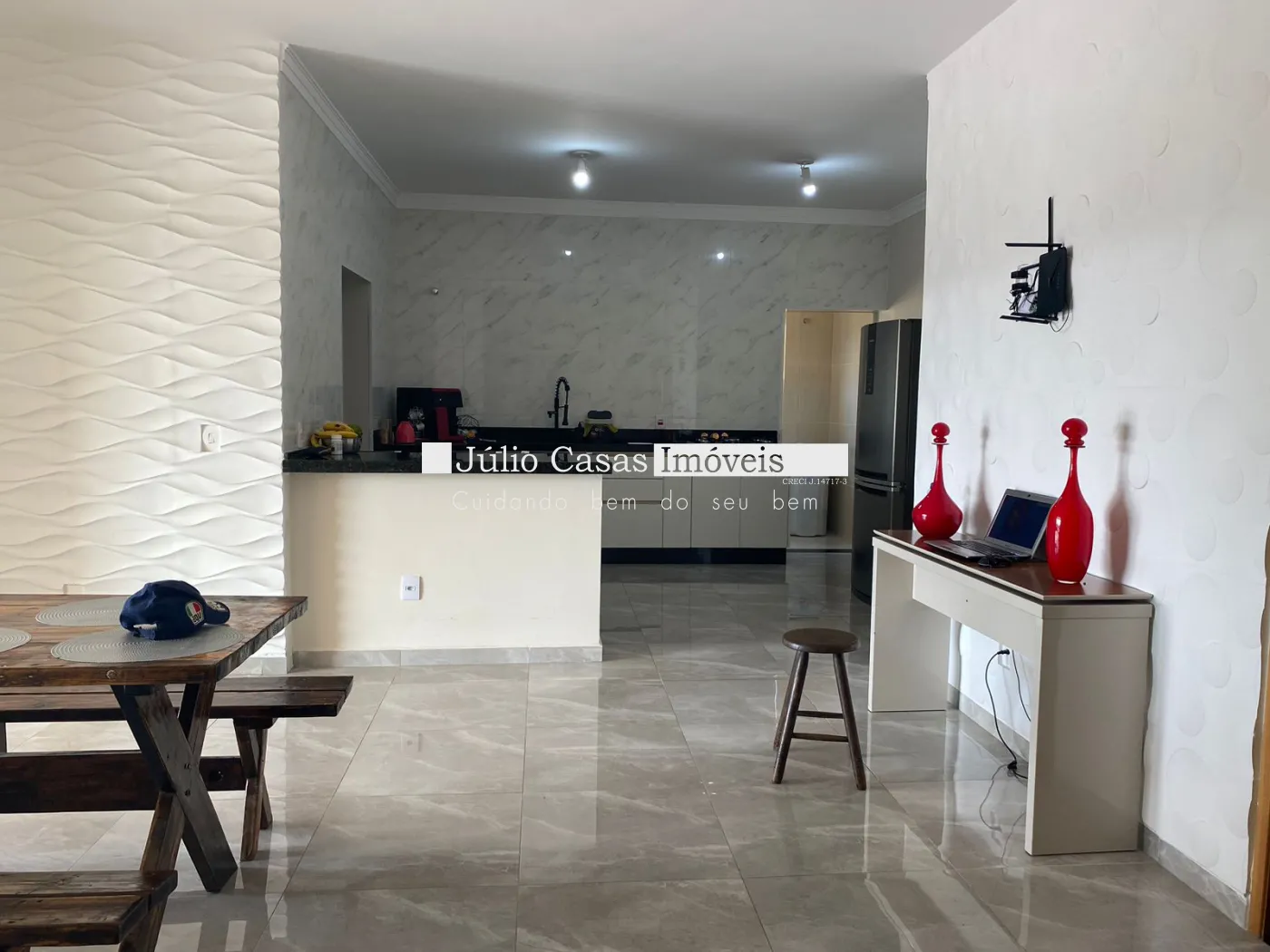 Casa térrea, projetada para oferecer conforto e funcionalidade, com detalhes que valorizam o convívio familiar e o lazer: Sala 3 ambientes: Espaçosa e integrada, proporcionando um ambiente acolhedor para receber visitas e desfrutar de momentos em família. Lavabo: Conveniente para o uso diário e para visitantes. Cozinha com copa: Equipada com móveis planejados, oferecendo espaço para refeições e preparos gastronômicos, com bancadas em granito que combinam estilo e praticidade. Área de serviço: Funcional e organizada para atividades domésticas. Área gourmet: Completa, com churrasqueira, forno e fogão a lenha, ideal para confraternizações ao ar livre. A bancada em granito proporciona um espaço perfeito para preparo de alimentos. Casa toda avarandada: Valoriza o contato com o exterior e proporciona ambientes arejados e iluminados. Pomar e jardim: Complementam o ambiente externo, oferecendo um espaço verde agradável e frutífero. Piscina com cascata e ducha: Perfeita para momentos de relaxamento e diversão em família. Piso cerâmico: Em toda a casa, garantindo praticidade e fácil manutenção. 3 suítes, sendo 1 suíte máster: Todas com armários embutidos, proporcionando conforto e privacidade aos moradores. Garagem para 4 veículos: Coberta, oferecendo espaço amplo e seguro para automóveis. Esta casa representa uma oportunidade única para quem busca qualidade de vida em um ambiente acolhedor e bem estruturado. Localizada em um local tranquilo, é ideal para quem valoriza o conforto e o bem-estar da família. Não perca a chance de conhecer esta residência que combina harmoniosamente praticidade, conforto e lazer. Estamos à disposição para te atender. Gostaria de saber mais informações ou agendar uma visita?