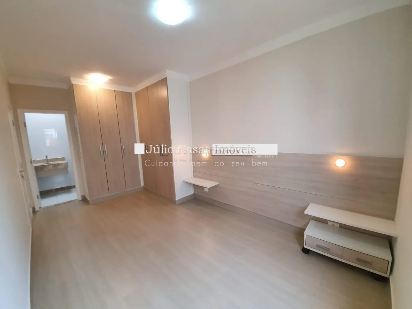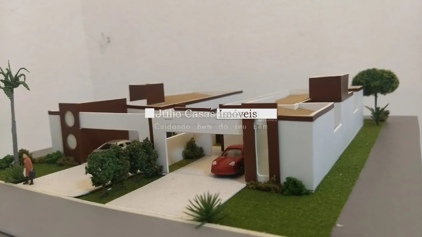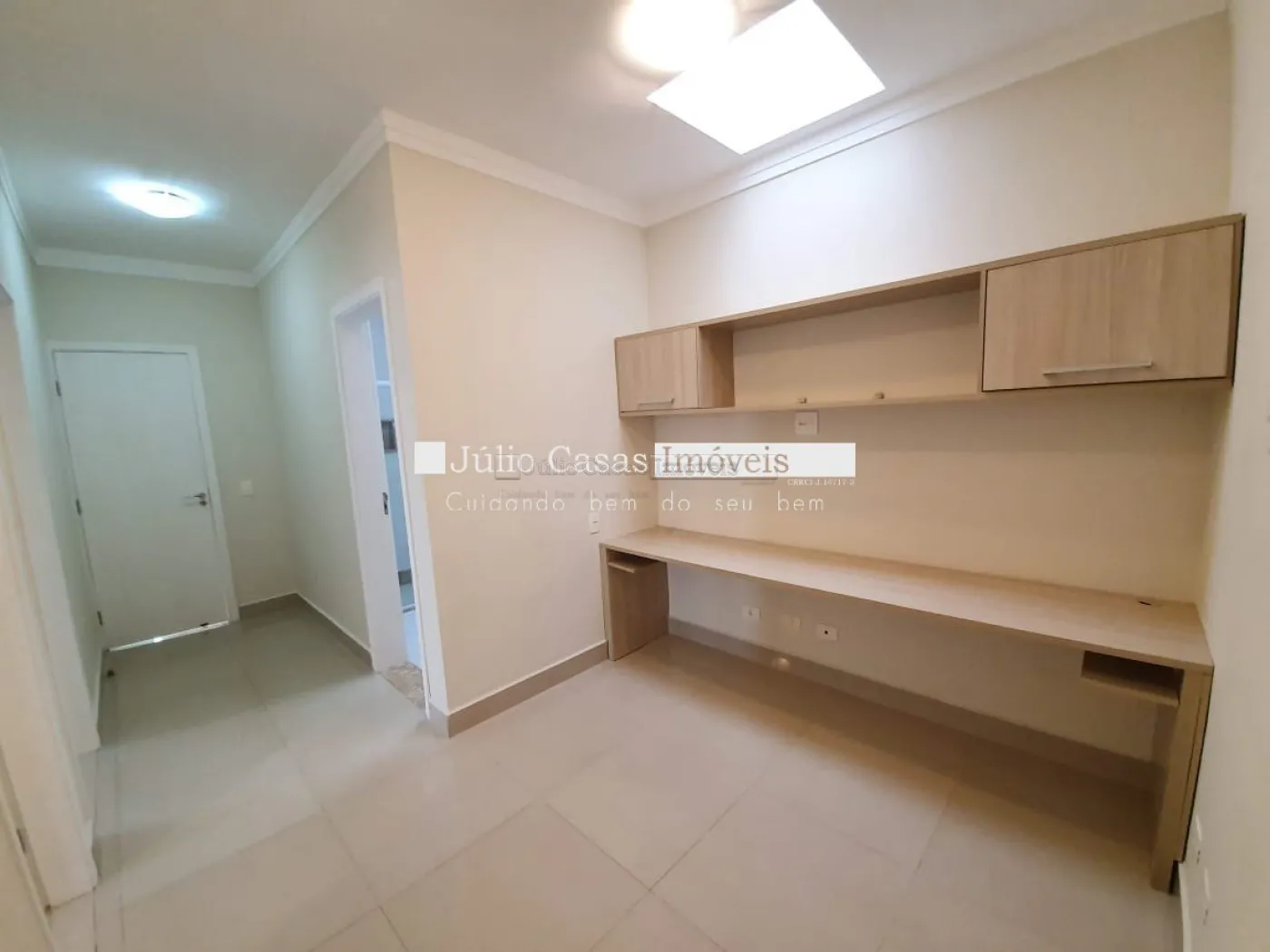 A residência térrea conta com três dormitórios, sendo uma suíte. O escritório possui iluminação natural, e há um banheiro social adicional. A casa dispõe de uma sala ampla com dois ambientes, uma cozinha tradicional com bancada em granito, área de serviço, banheiro de empregada e lavabo. A marcenaria está instalada nos três dormitórios, nos banheiros, na cozinha, na área de serviço e no escritório. Além disso, oferece quatro vagas na garagem e um quintal lateral.