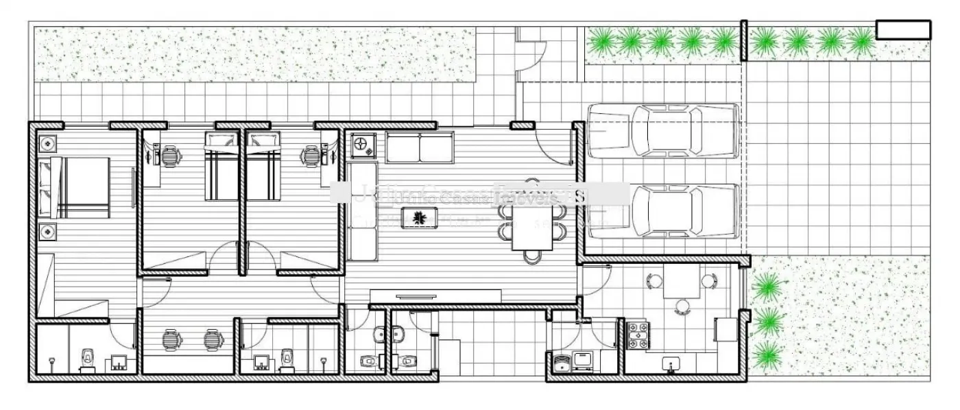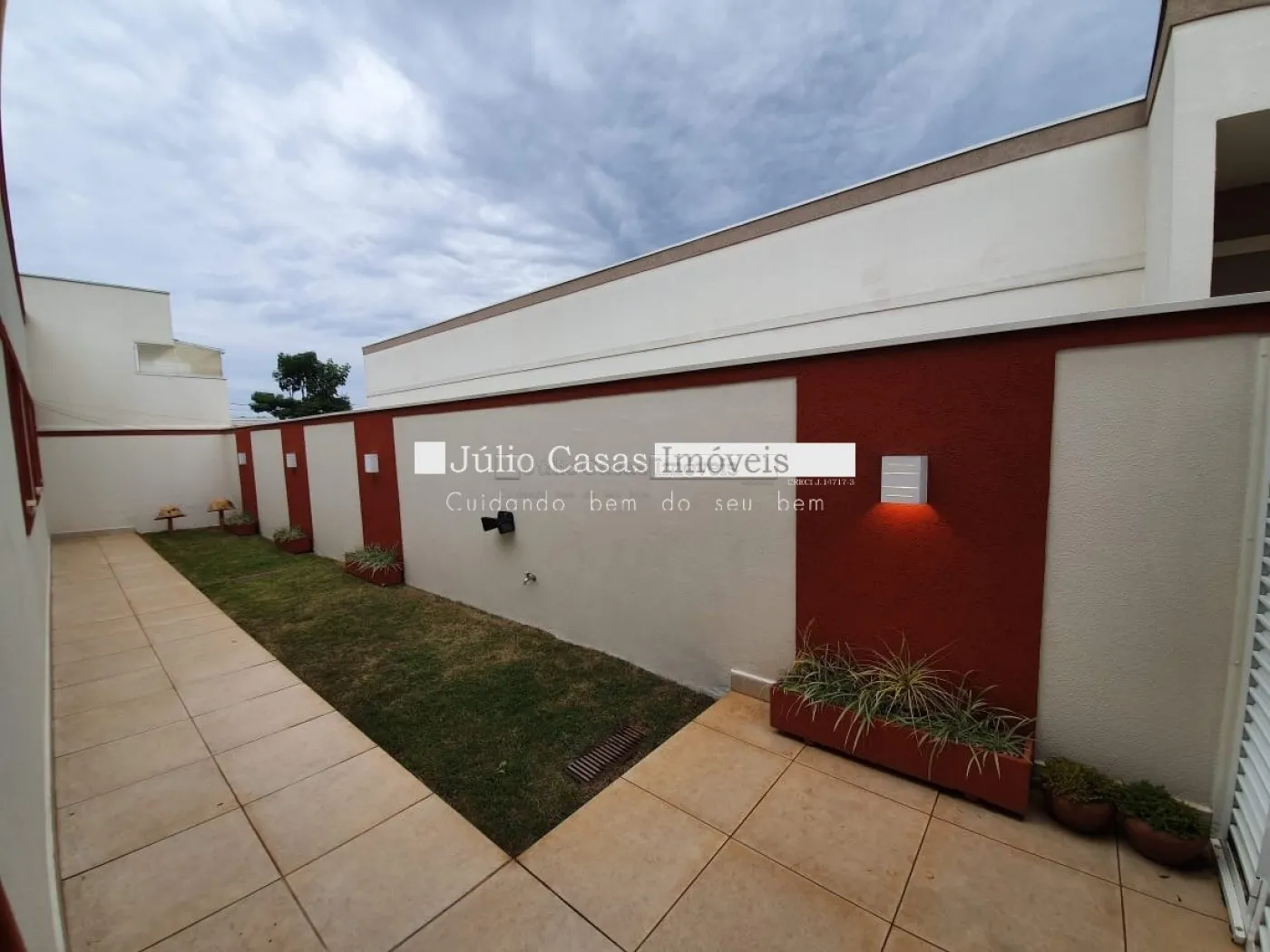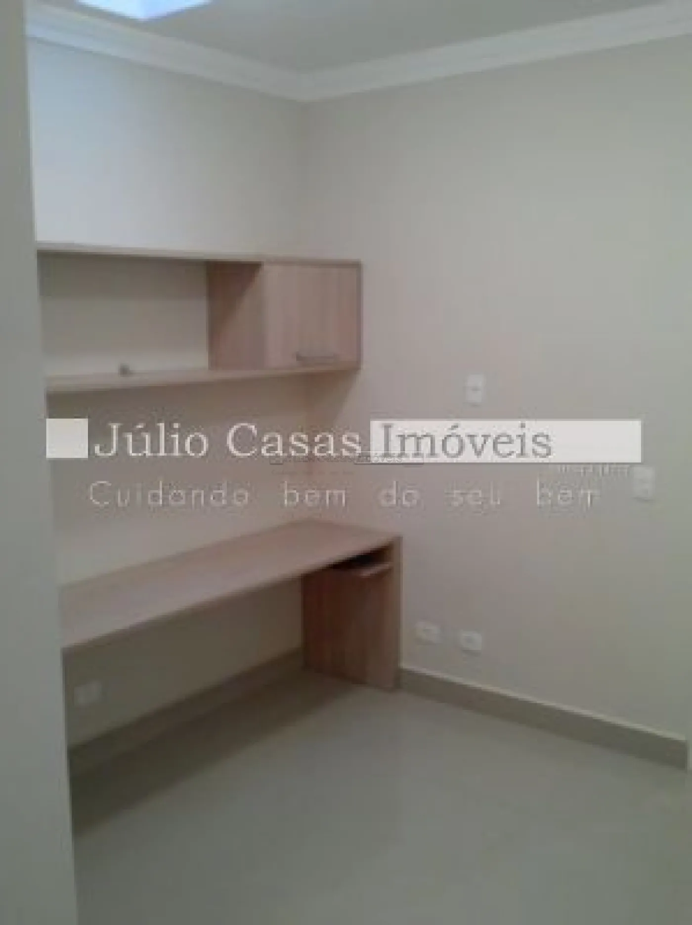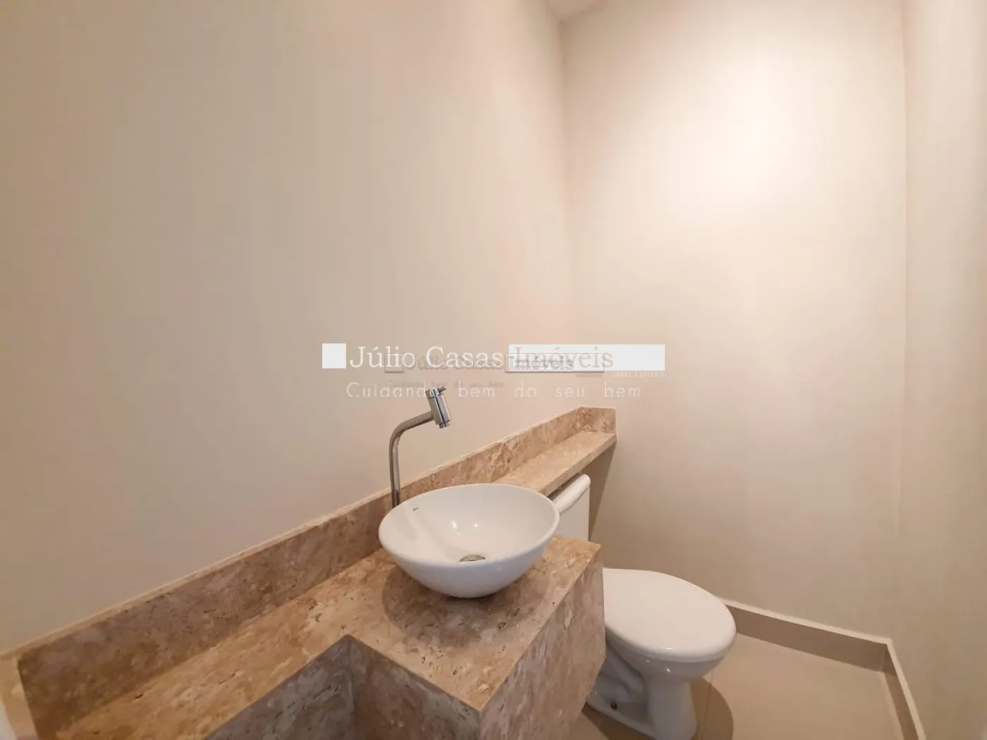 A residência térrea conta com três dormitórios, sendo uma suíte. O escritório possui iluminação natural, e há um banheiro social adicional. A casa dispõe de uma sala ampla com dois ambientes, uma cozinha tradicional com bancada em granito, área de serviço, banheiro de empregada e lavabo. A marcenaria está instalada nos três dormitórios, nos banheiros, na cozinha, na área de serviço e no escritório. Além disso, oferece quatro vagas na garagem e um quintal lateral.