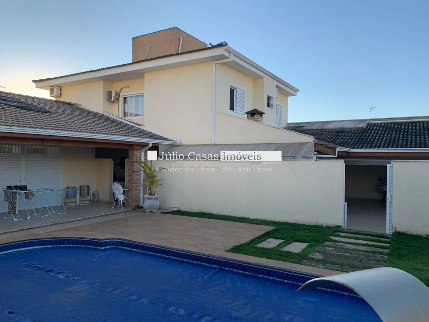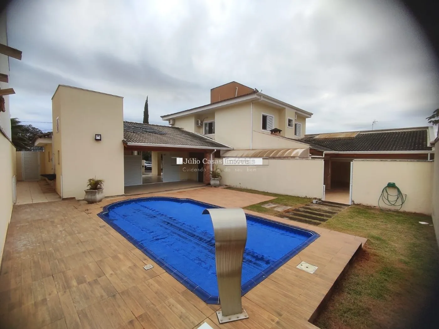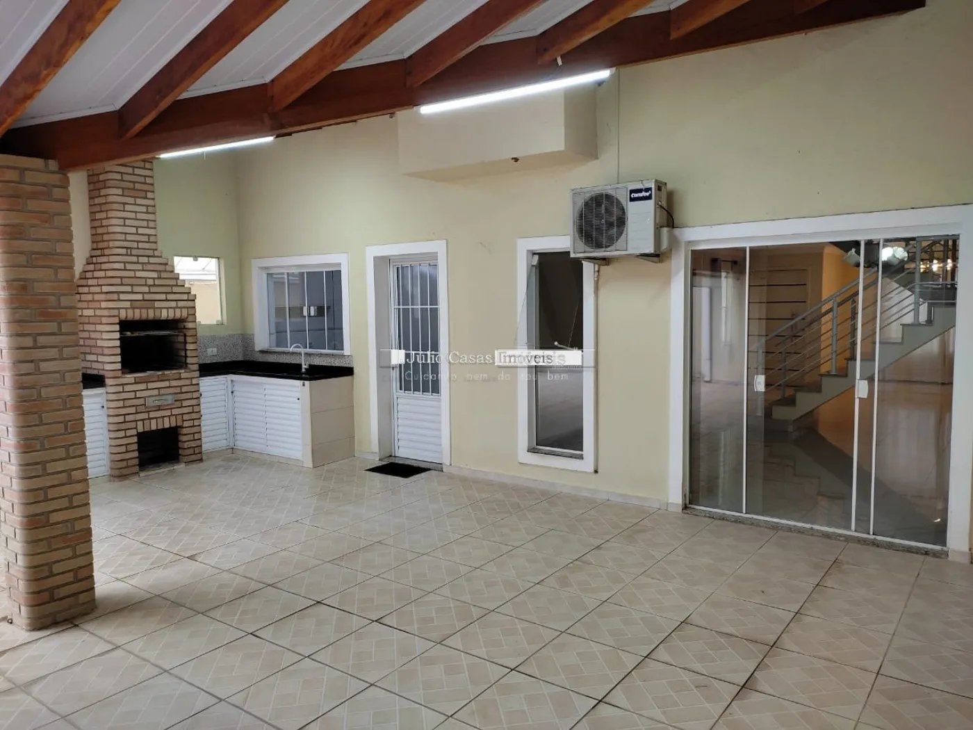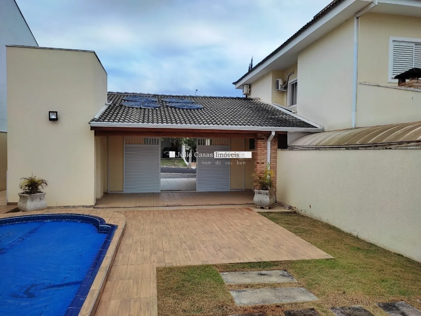 A área gourmet é equipada com pia de apoio e churrasqueira, perfeita para encontros e refeições ao ar livre. O imóvel também conta com uma piscina aquecida e um banheiro de apoio para maior comodidade. A garagem possui quatro vagas cobertas, garantindo espaço e segurança para os veículos.