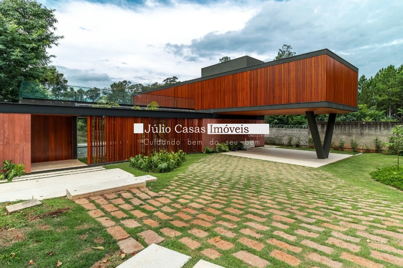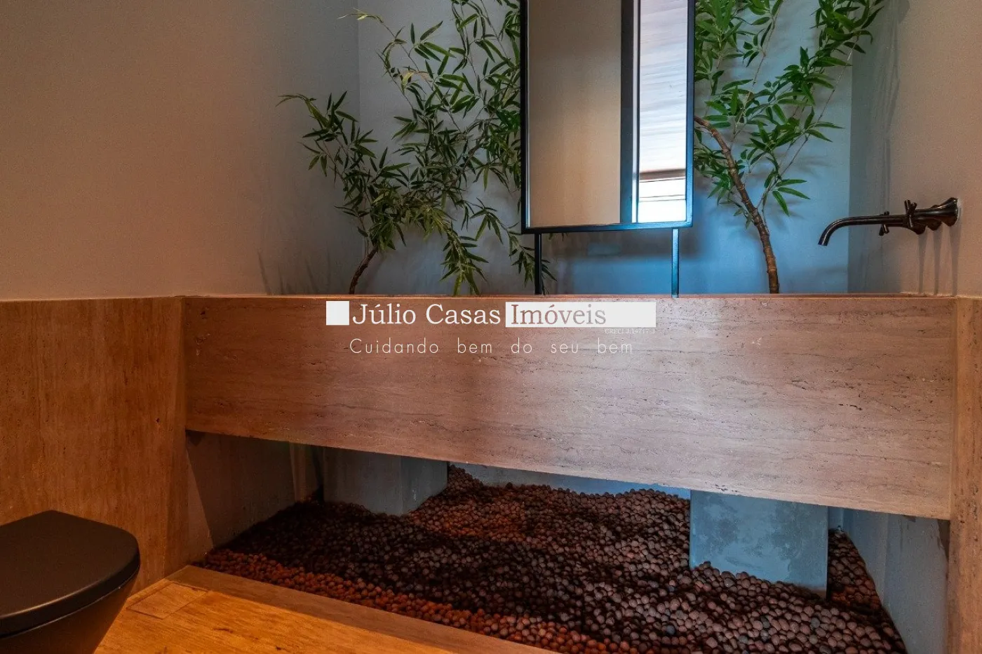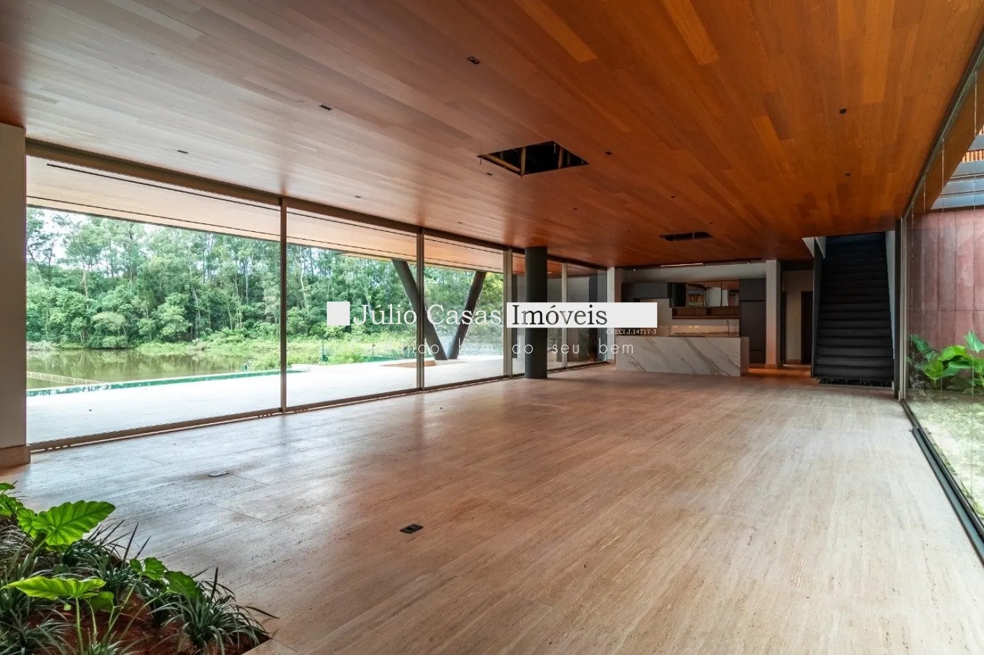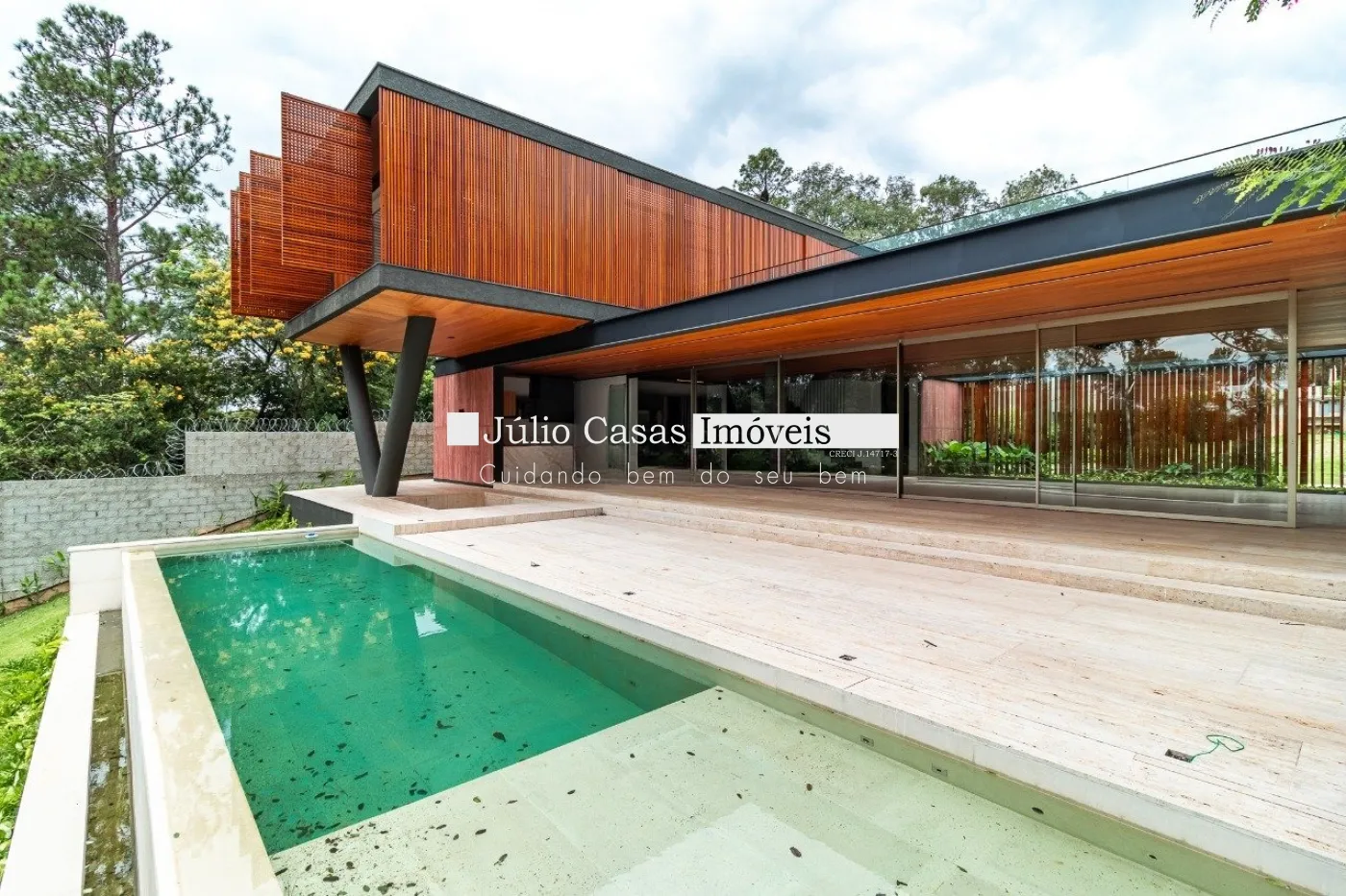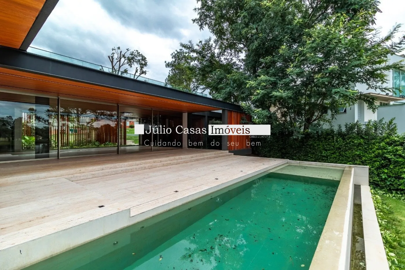 Casa em dois pavimentos localizada em condomínio de alto padrão, com finíssimo acabamento num projeto moderno assinado pelo arquiteto Fernando Poles e paisagismo de Gustavo Carvalho. Num terreno de 1330m² sendo 700m² de área construída, composta por ampla sala em dois ambientes, cozinha americana integrada com a área gourmet, piso com pedras ultra compacta, metais com função `touch` e linda vista para o lago. Cinco suítes sendo uma no andar térreo, espaço `rooftop` para prática de Golfe. Lareira externa a gás, esquadrias minimalistas, acabamento na varanda com Muxarabi em Cumaru. Casa toda revestida com concreto pigmentado, pisos de travertino romano na área social e dormitórios em madeira, acabamento do forro em madeira, móveis planejados da Florense, preparação para ar condicionado K7, sistema de automação Savant, piscina com borda infinita de granilite, sistema de energia solar com boiler de 800 litros.