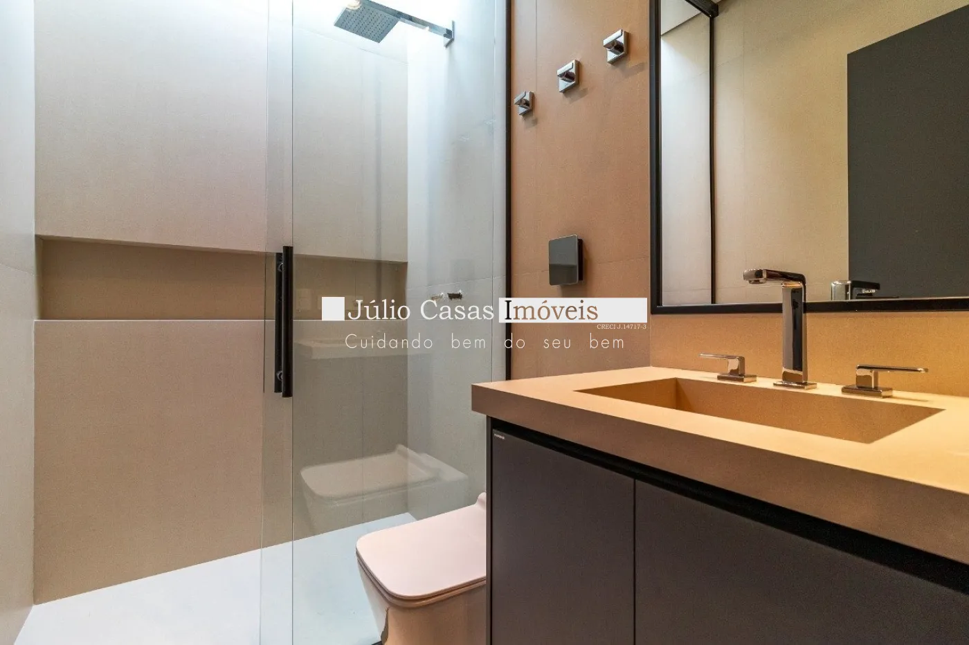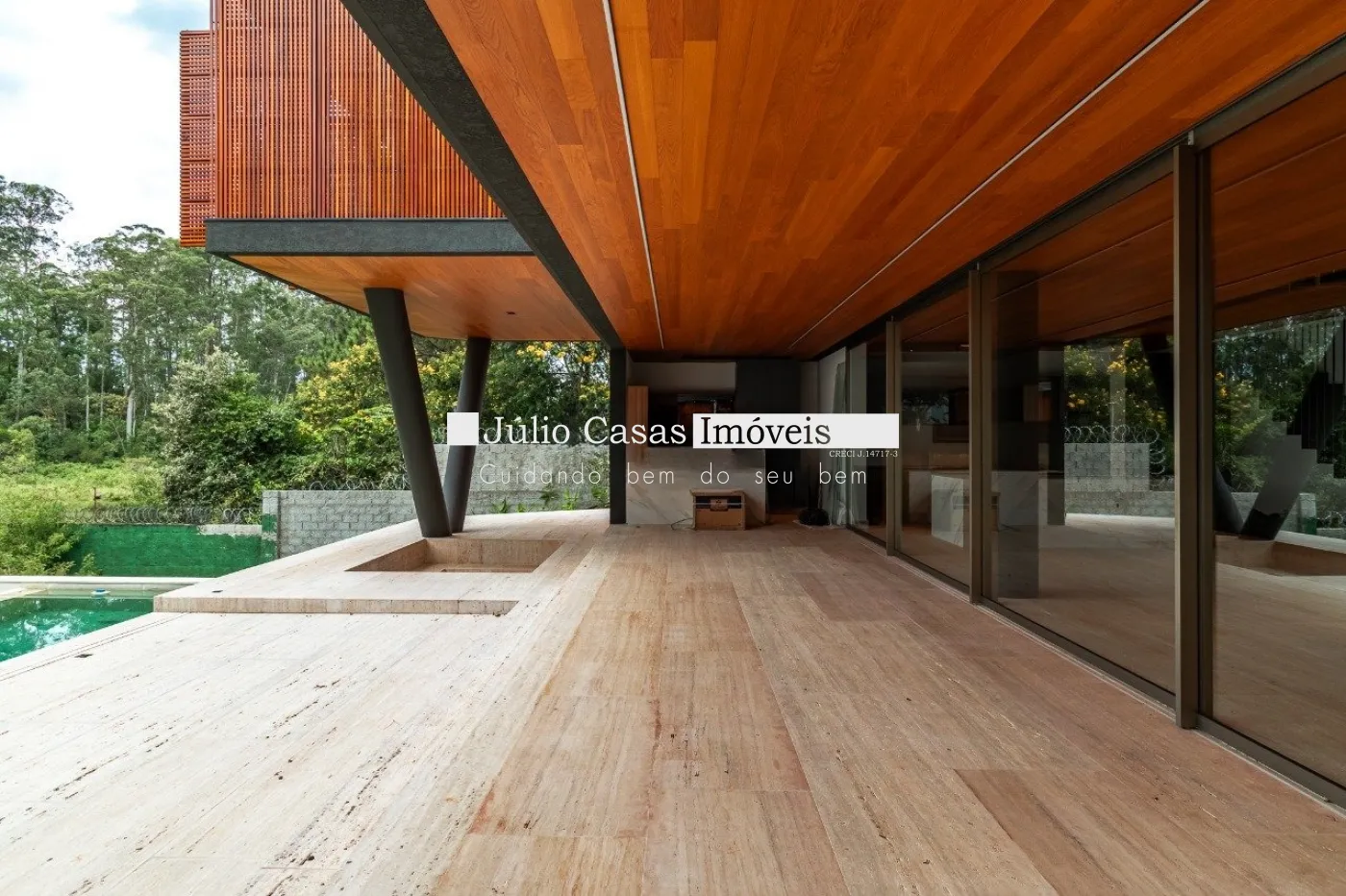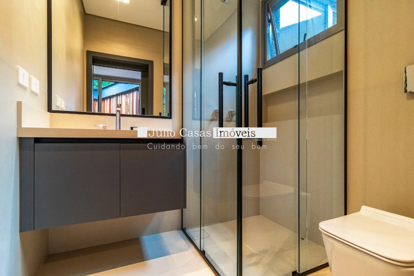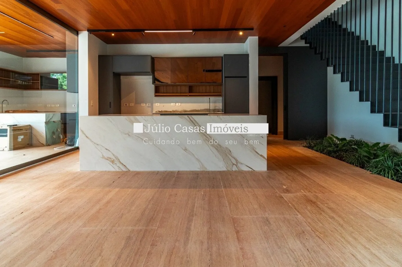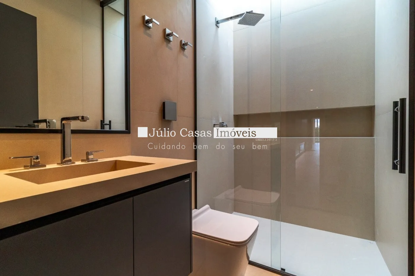 Casa em dois pavimentos localizada em condomínio de alto padrão, com finíssimo acabamento num projeto moderno assinado pelo arquiteto Fernando Poles e paisagismo de Gustavo Carvalho. Num terreno de 1330m² sendo 700m² de área construída, composta por ampla sala em dois ambientes, cozinha americana integrada com a área gourmet, piso com pedras ultra compacta, metais com função `touch` e linda vista para o lago. Cinco suítes sendo uma no andar térreo, espaço `rooftop` para prática de Golfe. Lareira externa a gás, esquadrias minimalistas, acabamento na varanda com Muxarabi em Cumaru. Casa toda revestida com concreto pigmentado, pisos de travertino romano na área social e dormitórios em madeira, acabamento do forro em madeira, móveis planejados da Florense, preparação para ar condicionado K7, sistema de automação Savant, piscina com borda infinita de granilite, sistema de energia solar com boiler de 800 litros.