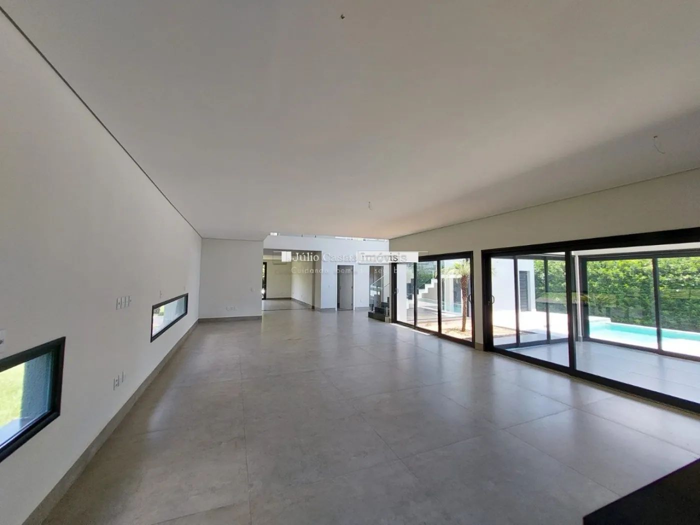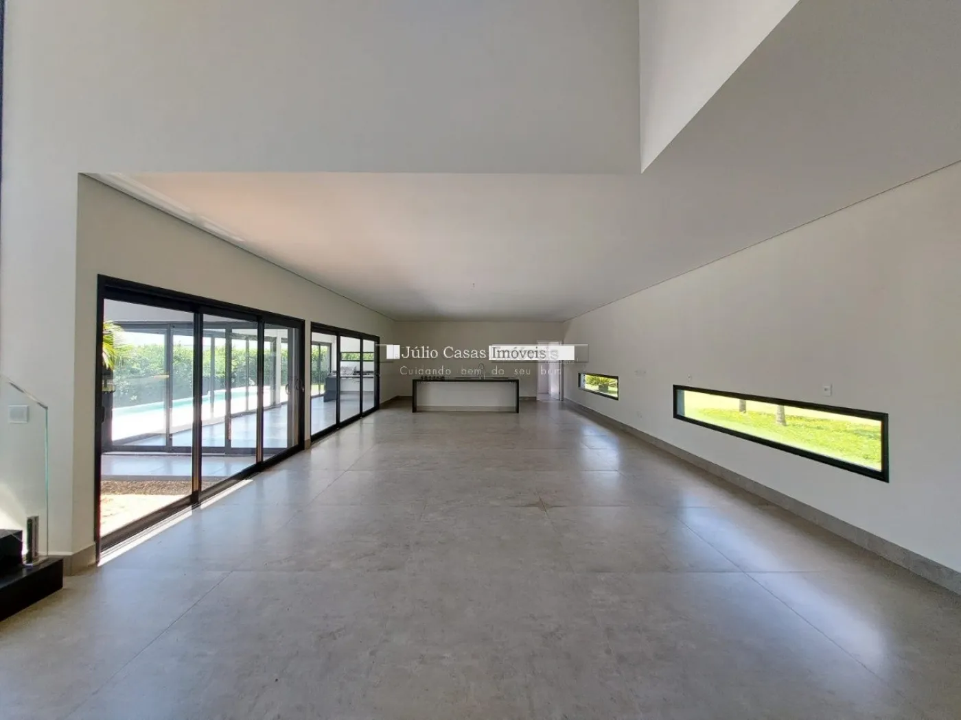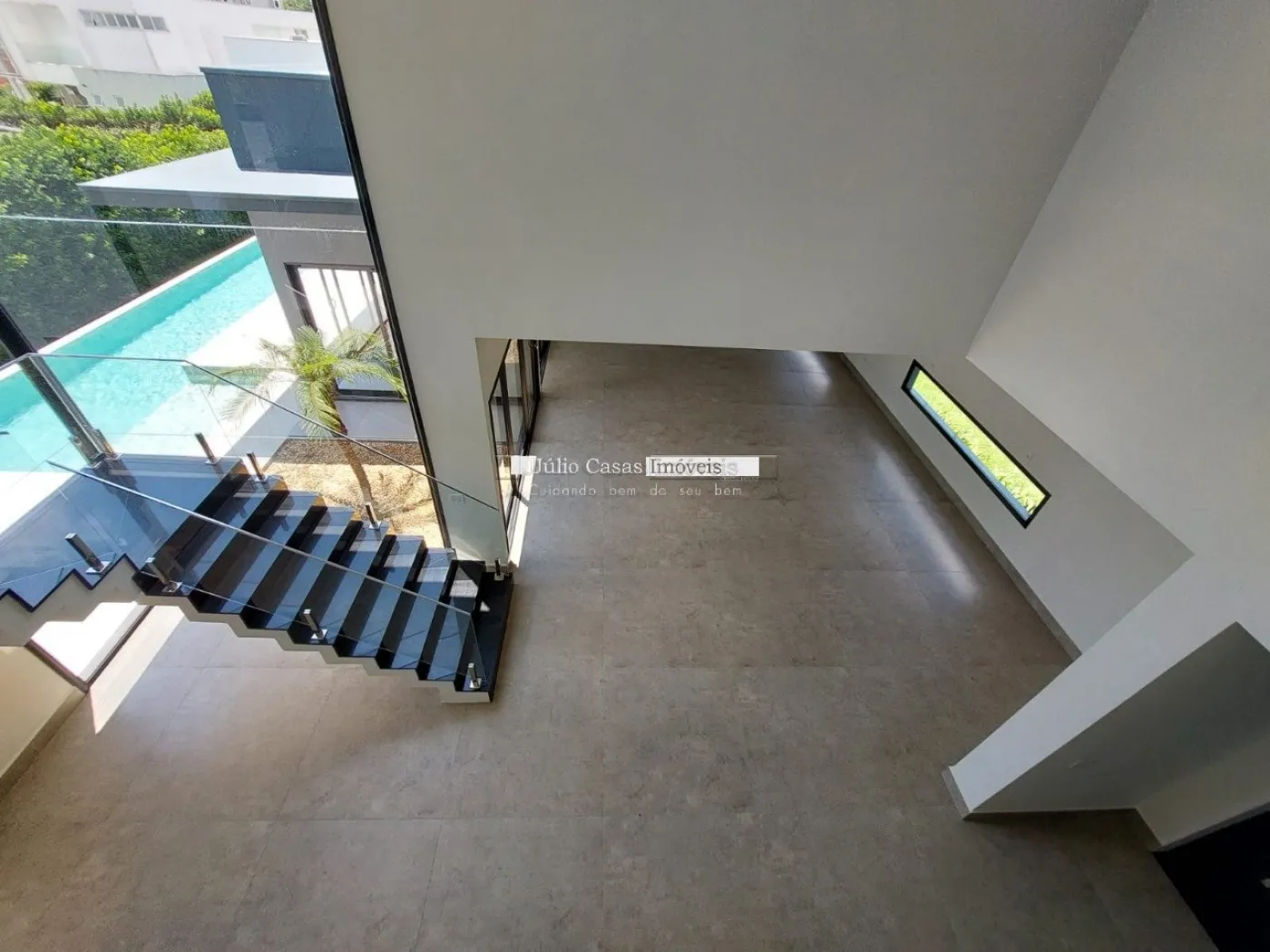 Casa térrea em condomínio de alto padrão. A residência dispõe de uma sala com três ambientes e pé-direito duplo, proporcionando um ambiente espaçoso e arejado. Há um lavabo de fácil acesso. A cozinha americana é integrada, equipada com pia e ilha, ideal para preparar refeições enquanto interage com os convidados. A lavanderia é ampla e há um depósito adicional para armazenamento. A área gourmet conta com churrasqueira e coifa em inox, perfeita para momentos de lazer. A piscina é aquecida, possui iluminação de LED e conta com um banheiro de apoio e depósito. A casa possui quatro suítes, sendo uma delas com closet e duas cubas no banheiro, oferecendo maior conforto e privacidade. Todas as suítes têm estrutura para ar condicionado, e todas as janelas e portas são automatizadas para maior praticidade. A garagem tem espaço para três veículos grandes, garantindo comodidade e segurança. Infraestrutura de Lazer: Campo de Golfe: Um dos maiores atrativos do condomínio, com um campo de golfe profissional que atrai entusiastas do esporte. Clube Social: Um espaço amplo com salão de festas, restaurante, bar e salão de jogos. Piscinas: Piscinas para adultos e crianças, com áreas de descanso e espreguiçadeiras. Quadras Esportivas: Inclui quadras de tênis, futebol e poliesportivas, incentivando a prática de diversos esportes. Playground: Área segura e equipada para crianças, com brinquedos e atividades ao ar livre. Estamos à disposição para te atender. Gostaria saber mais informações deste imóvel ou agendar uma visita?
