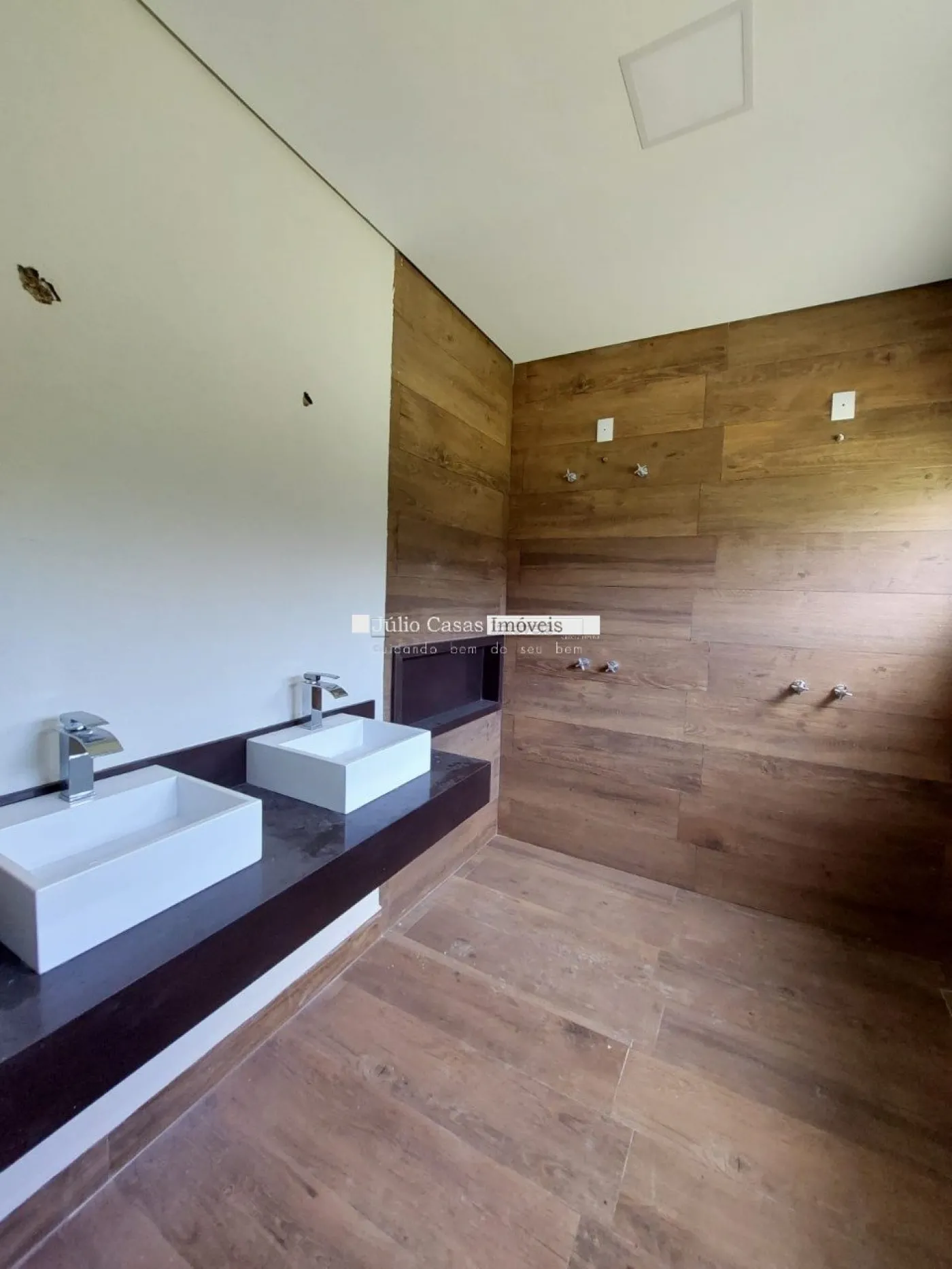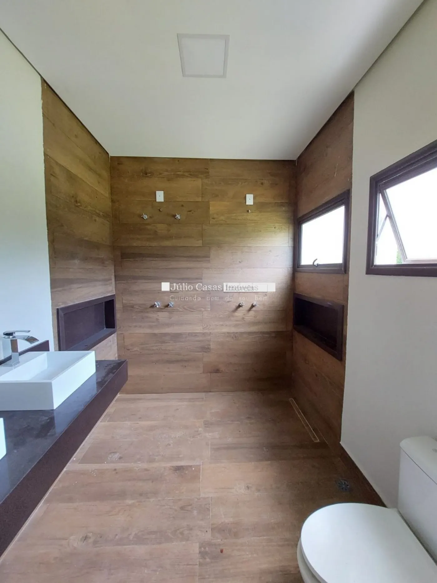 A casa possui quatro suítes, sendo uma delas com closet e duas cubas no banheiro, oferecendo maior conforto e privacidade. Todas as suítes têm estrutura para ar condicionado, e todas as janelas e portas são automatizadas para maior praticidade.