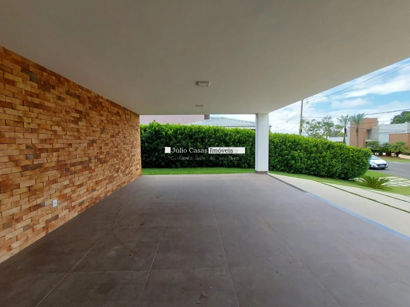 A garagem tem espaço para três veículos grandes, garantindo comodidade e segurança.