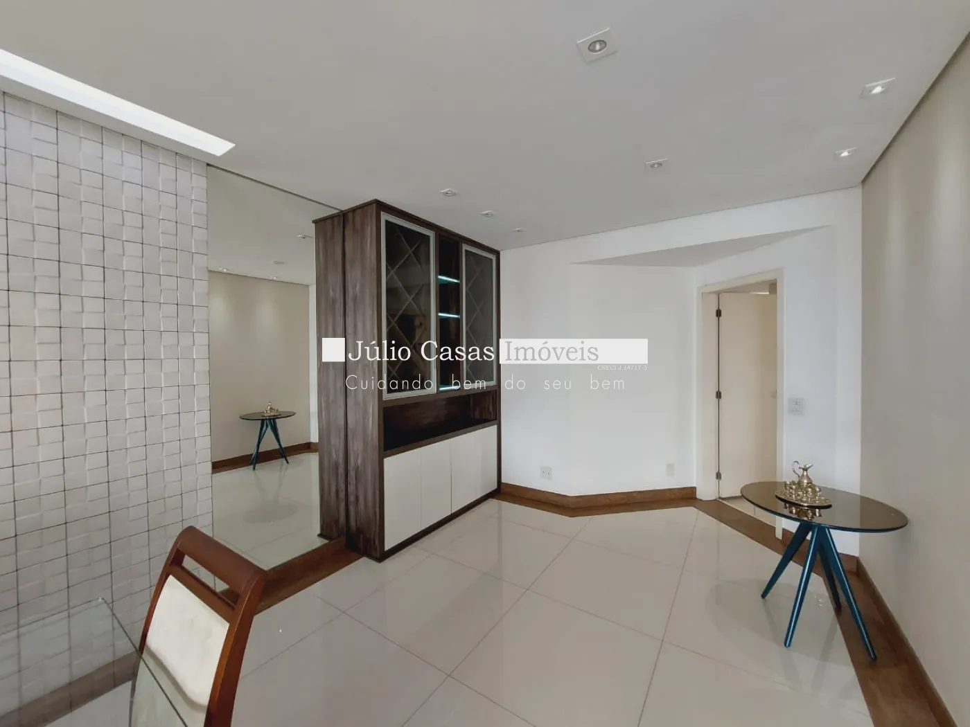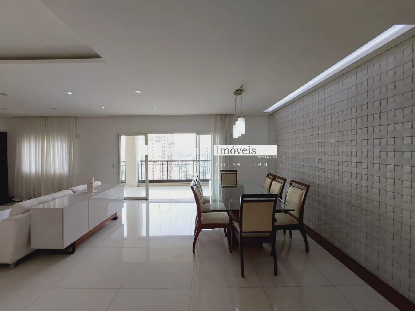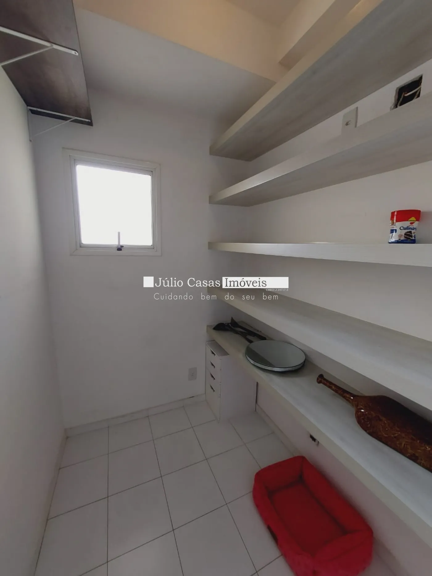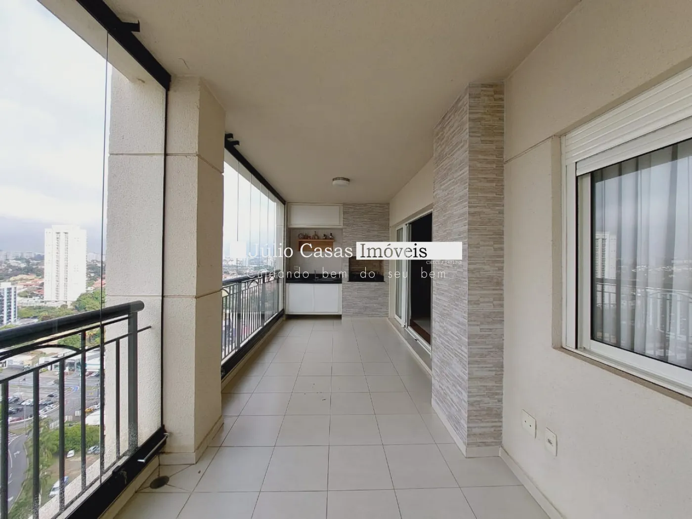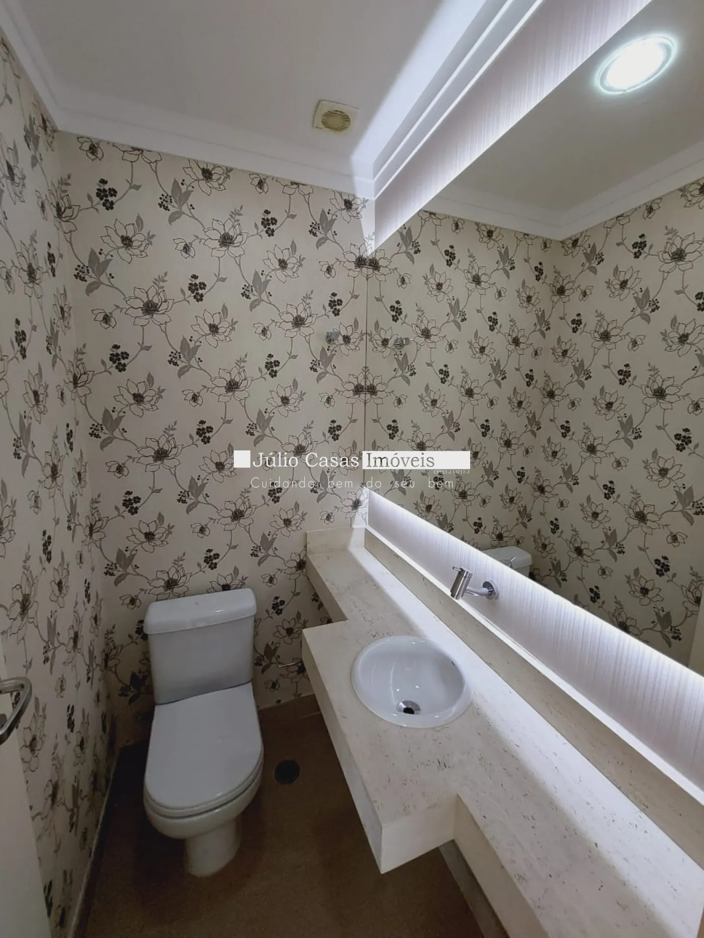Amplo e sofisticado, com sala para 3 ambientes em porcelanato e iluminação LED, lavabo com pia em mármore travertino, e varanda gourmet envidraçada com churrasqueira e pia com armário.
