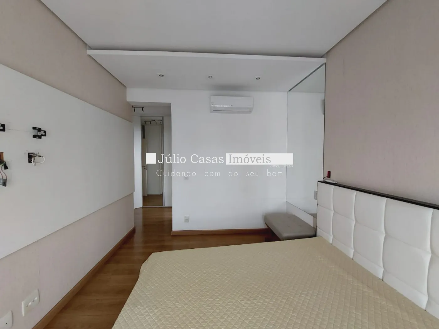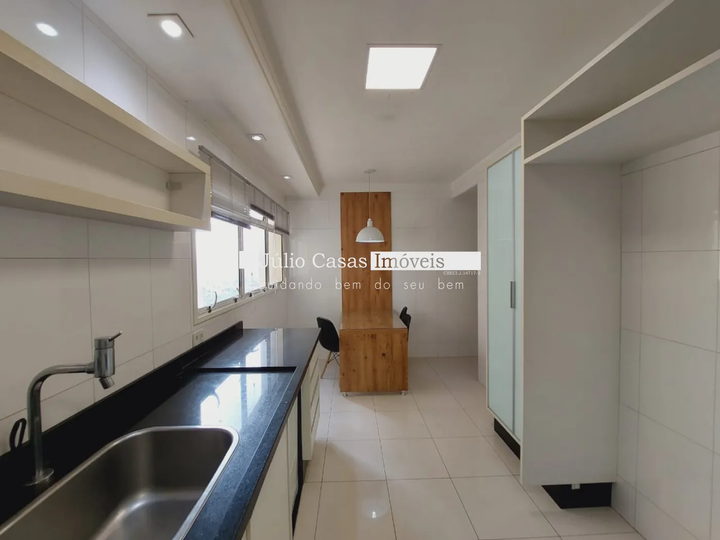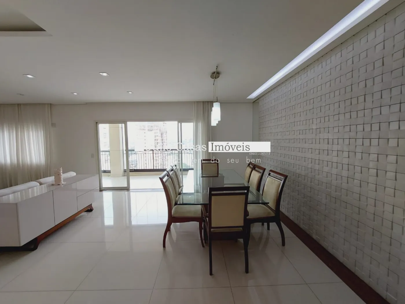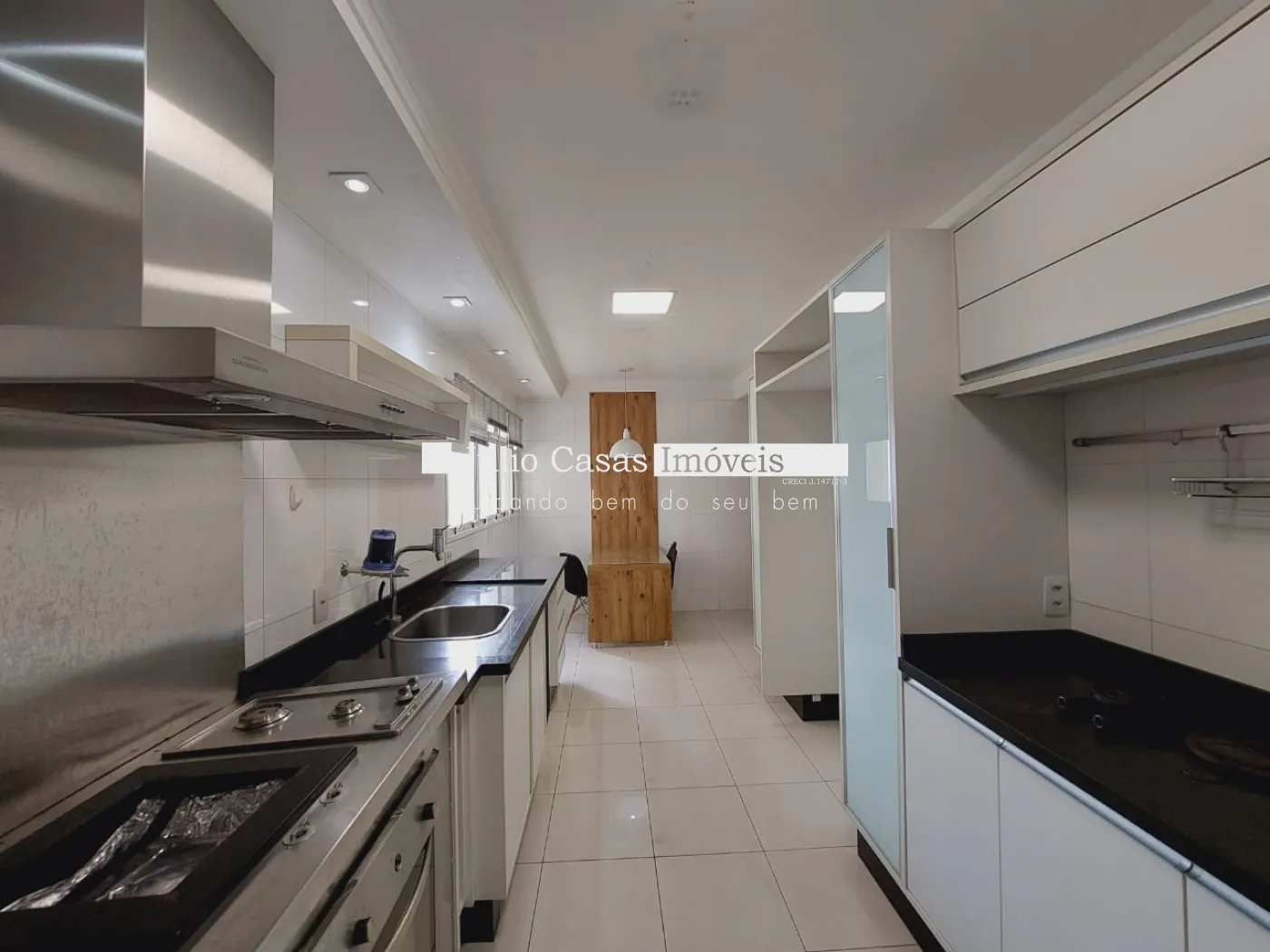 Amplo e sofisticado, com sala para 3 ambientes em porcelanato e iluminação LED, lavabo com pia em mármore travertino, e varanda gourmet envidraçada com churrasqueira e pia com armário.