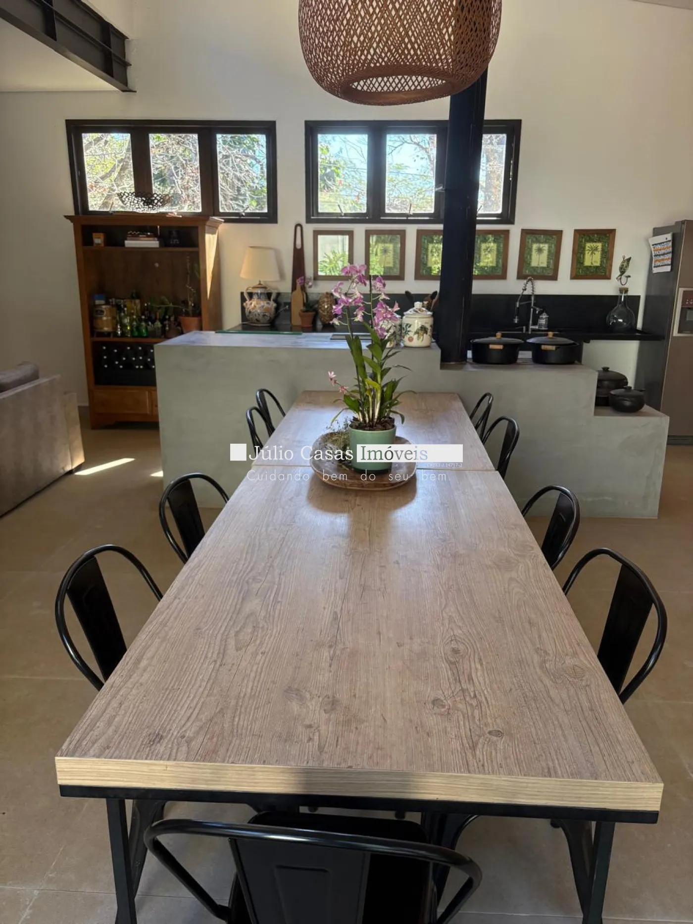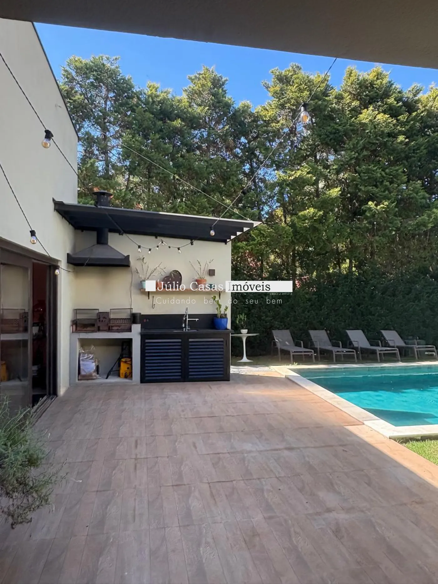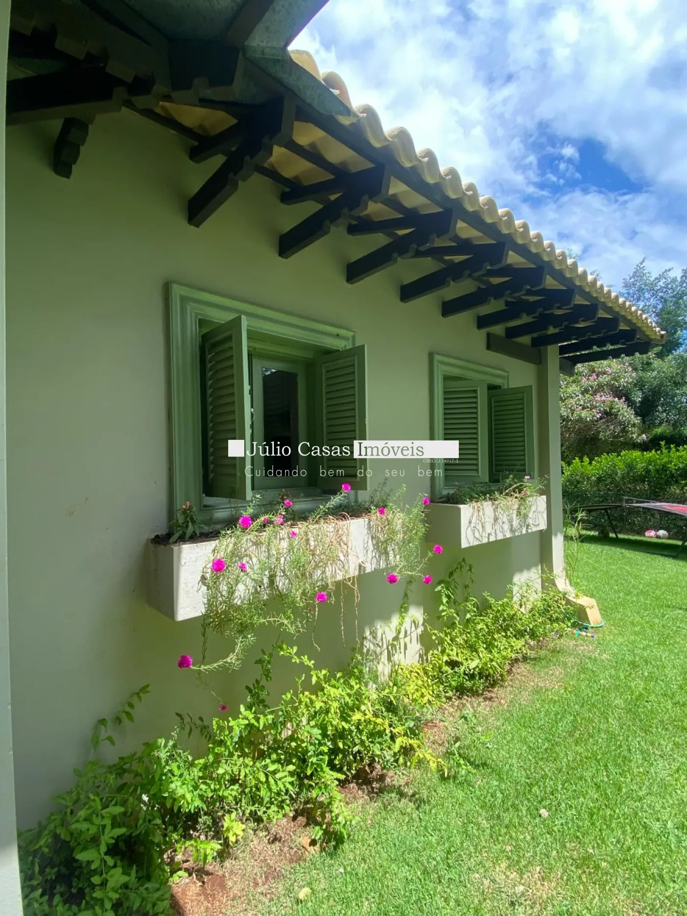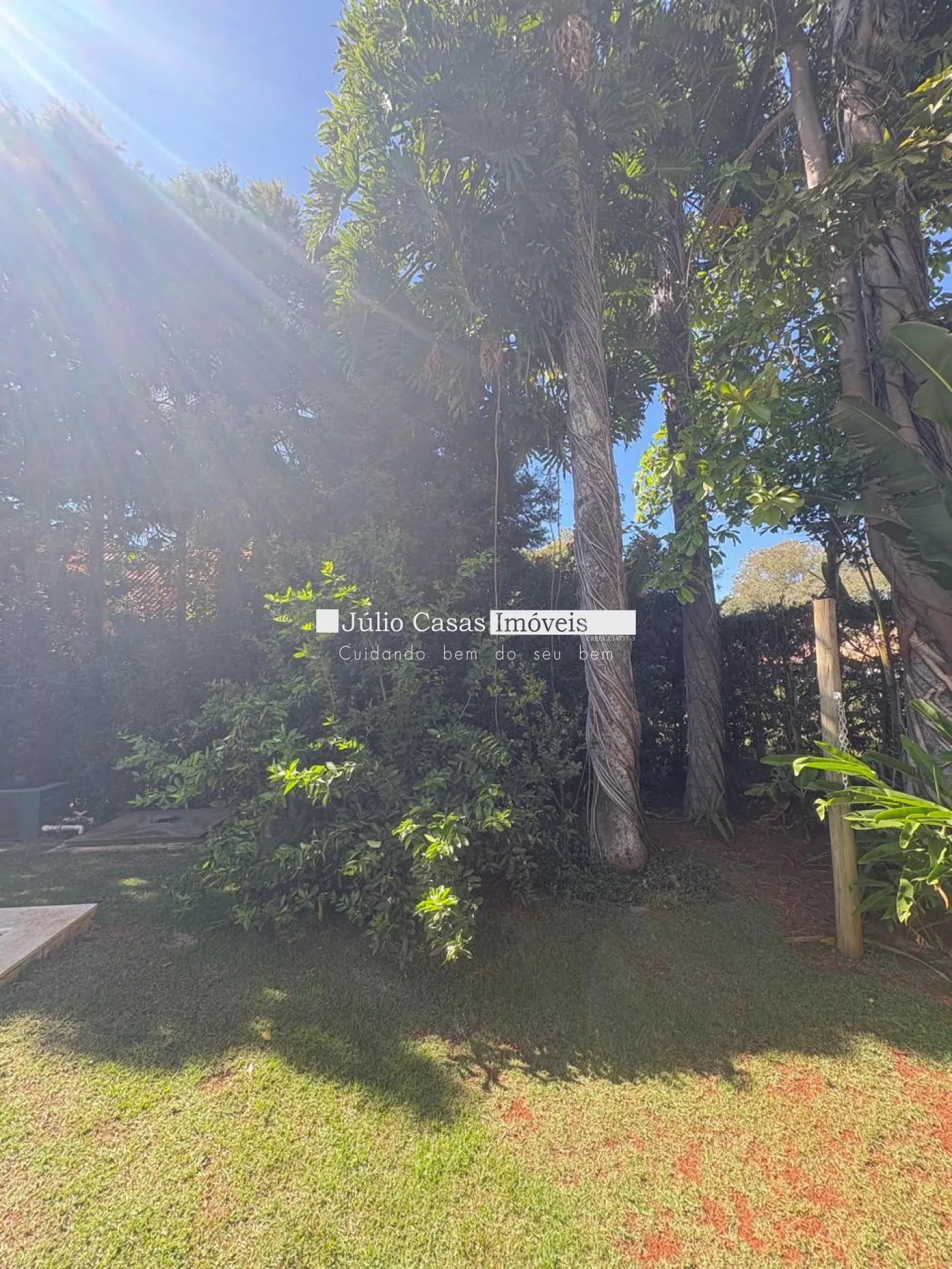 Casa térrea com sala com lareira, lavabo, escritório, depósito, 4 suítes com ar condicionado e todas com armários planejados.