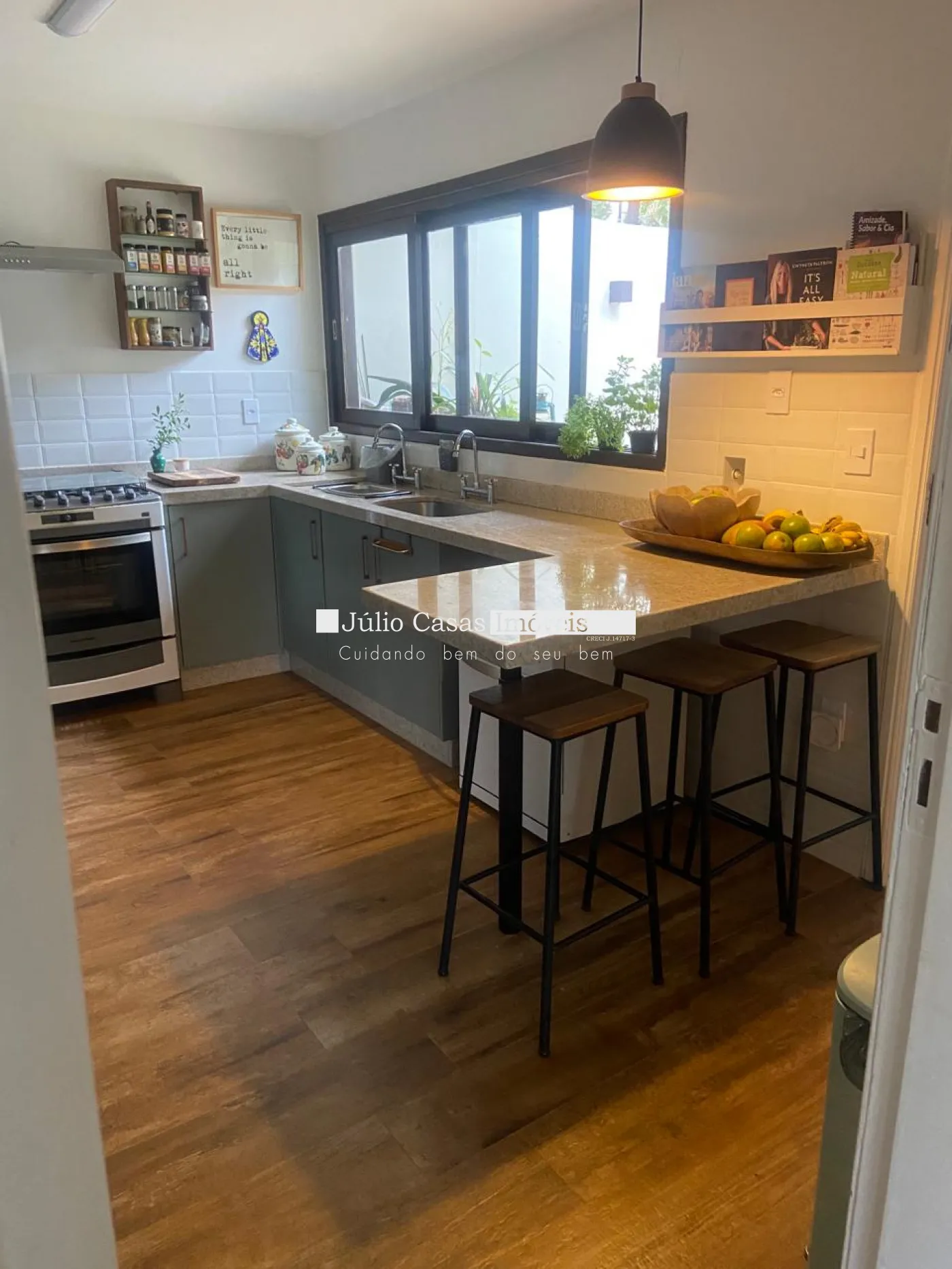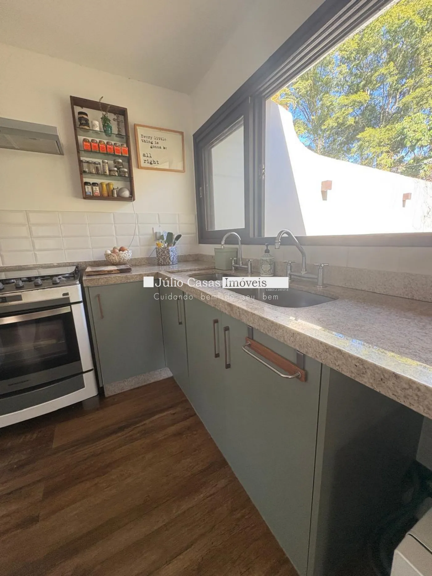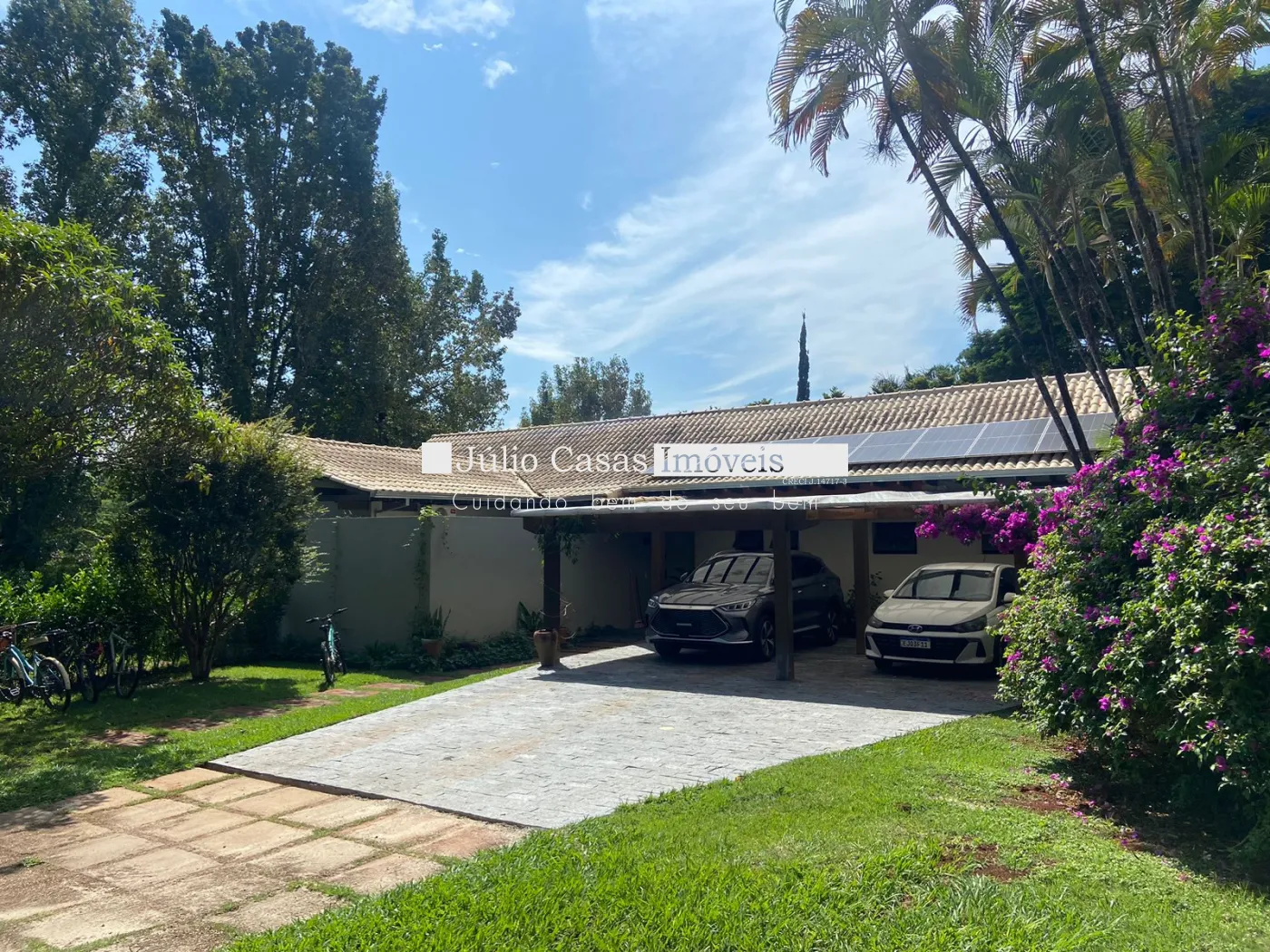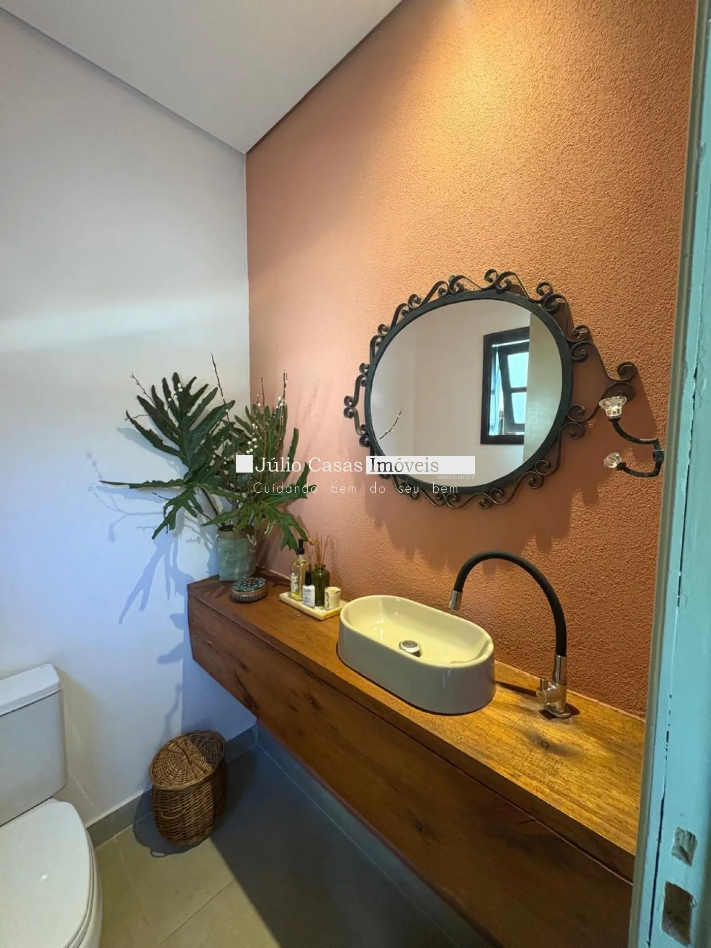 Casa térrea com sala com lareira, lavabo, escritório, depósito, 4 suítes com ar condicionado e todas com armários planejados.