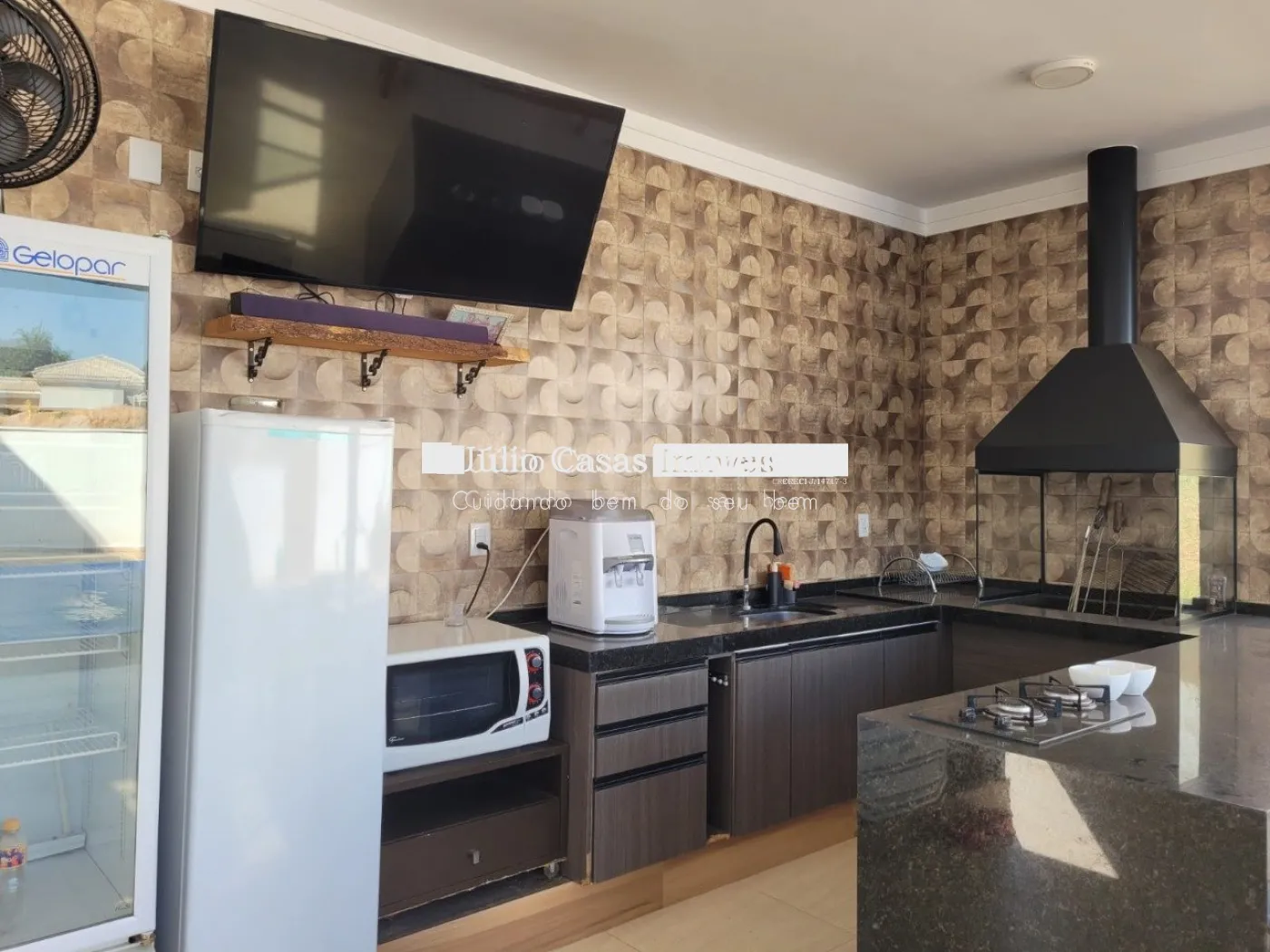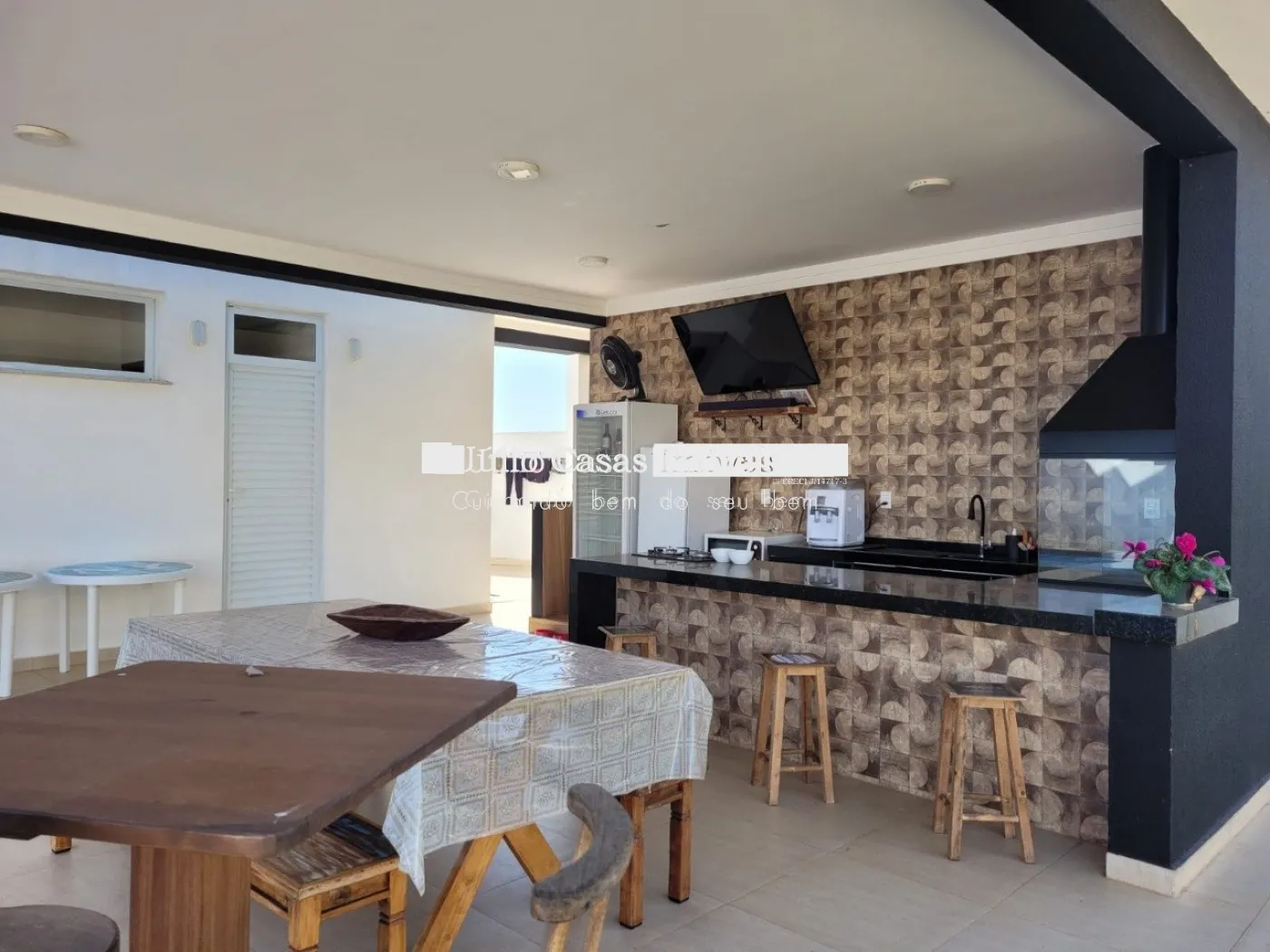 Linda casa com sala 3 ambientes totalmente integrada com a cozinha estilo aberto e área gourmet, cozinha modulada com bancada em granito, despensa, área de serviço com varanda técnica, quintal com área gourmet com pia, churrasqueira , wc e piscina aquecida, canil.