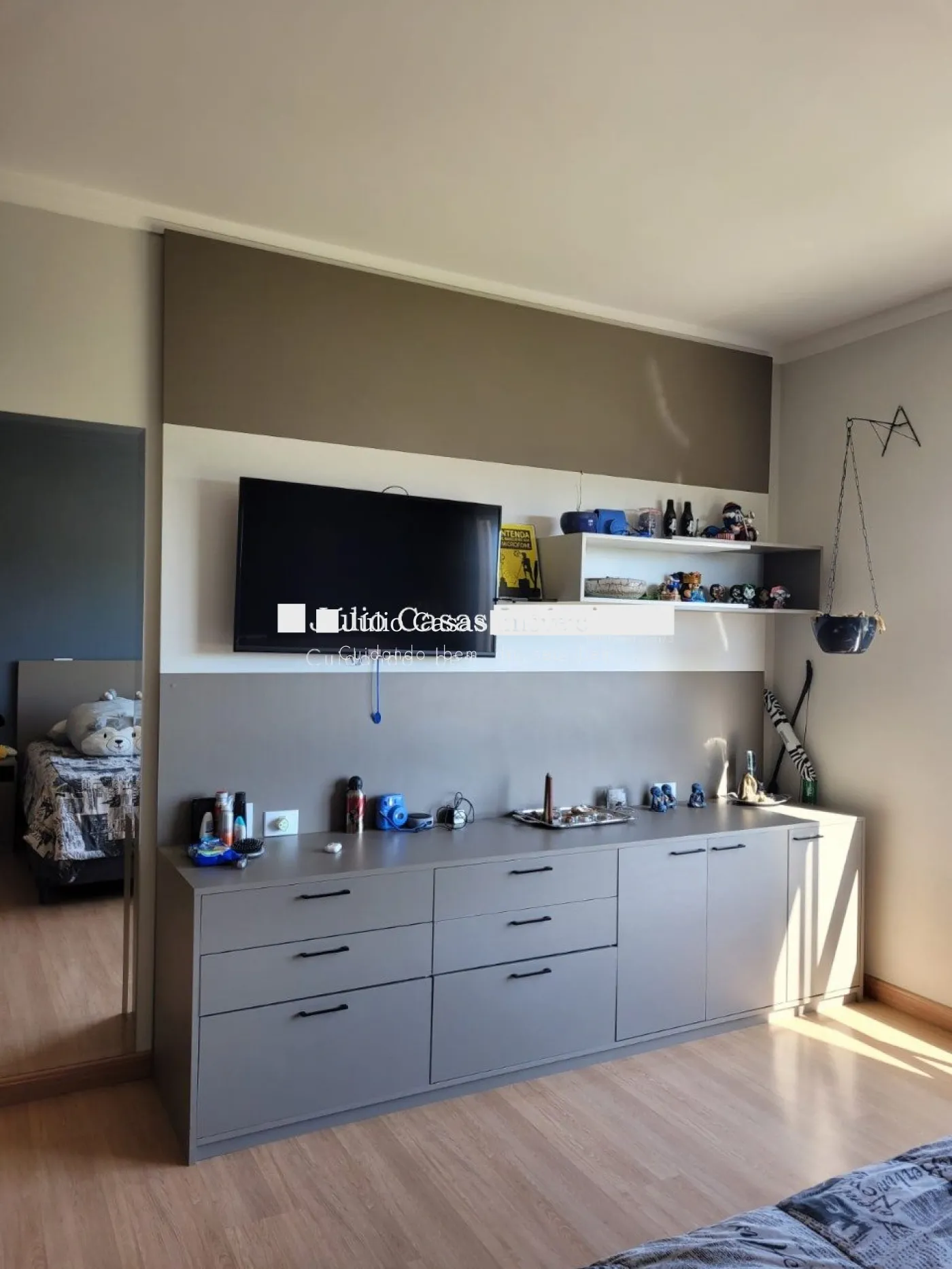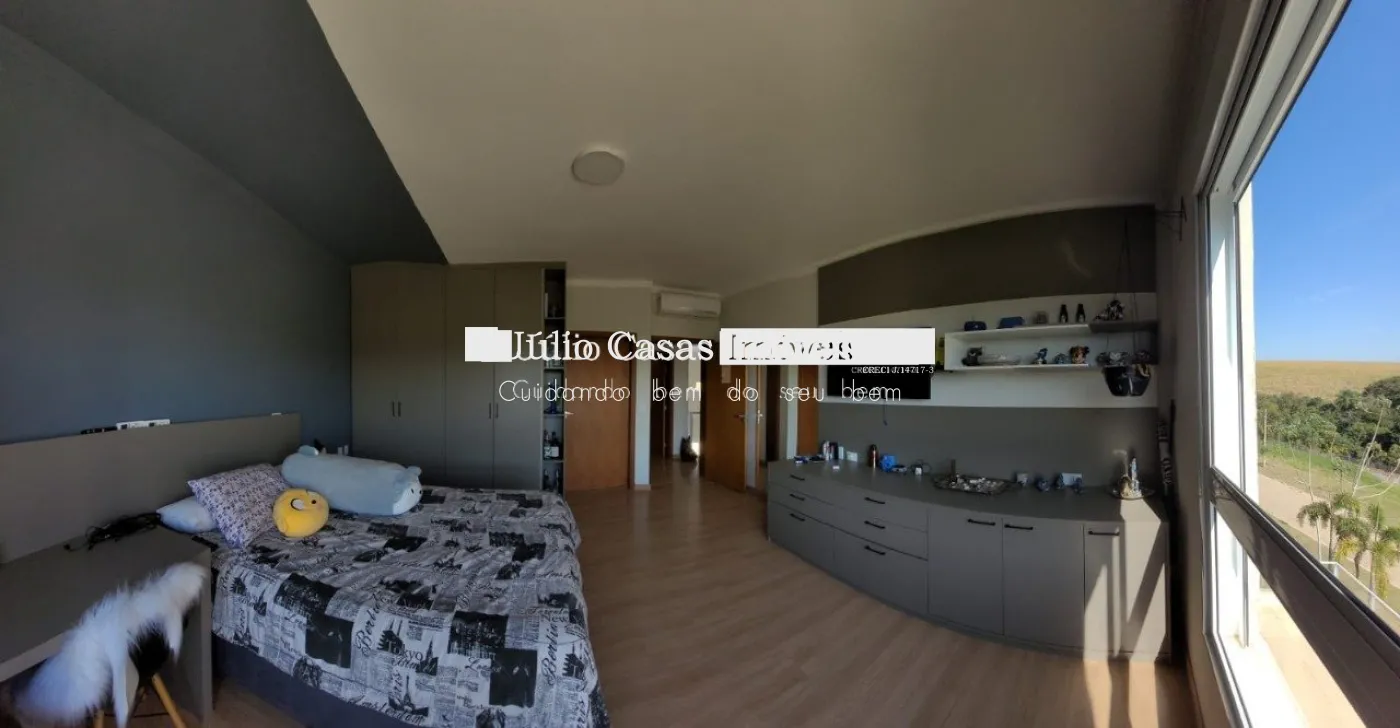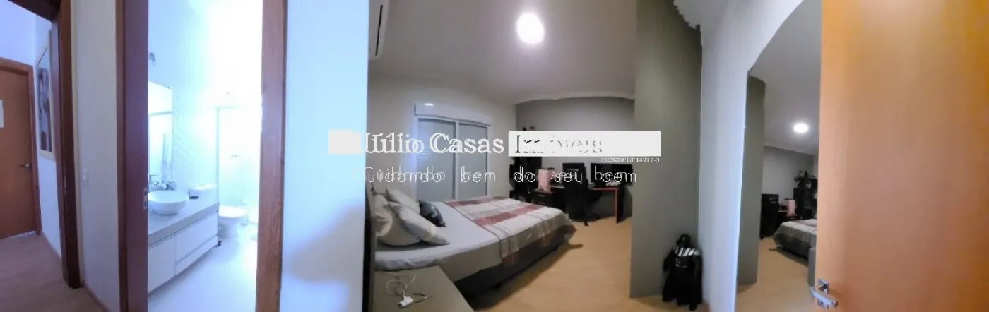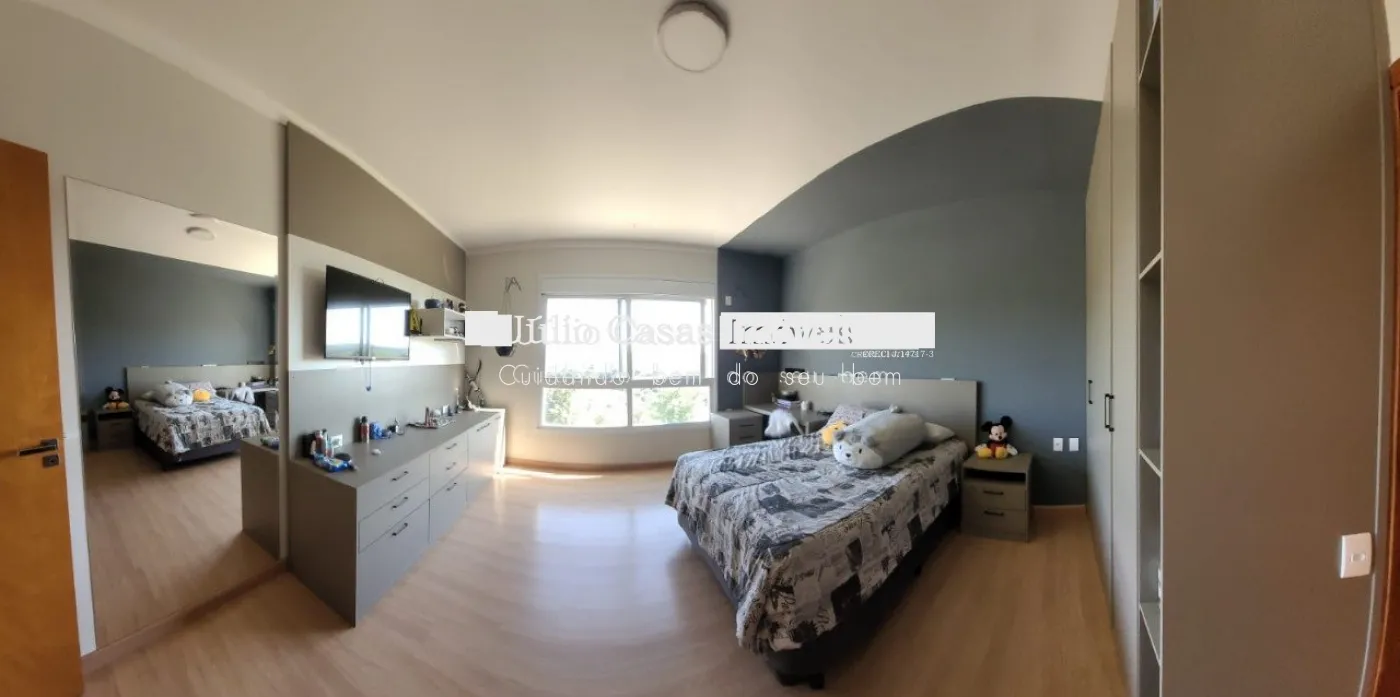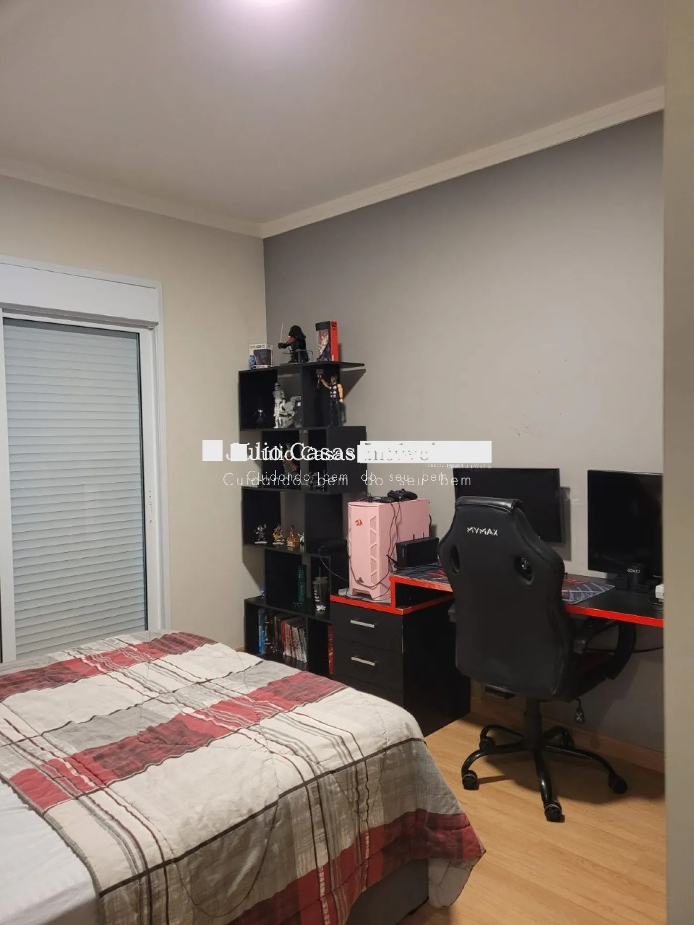 Andar superior com 3 suítes amplas com modulados, e closet, varanda, todos os banheiros com box em vidro e gabinetes, Garagem para 2 veículos cobertos e escritório.