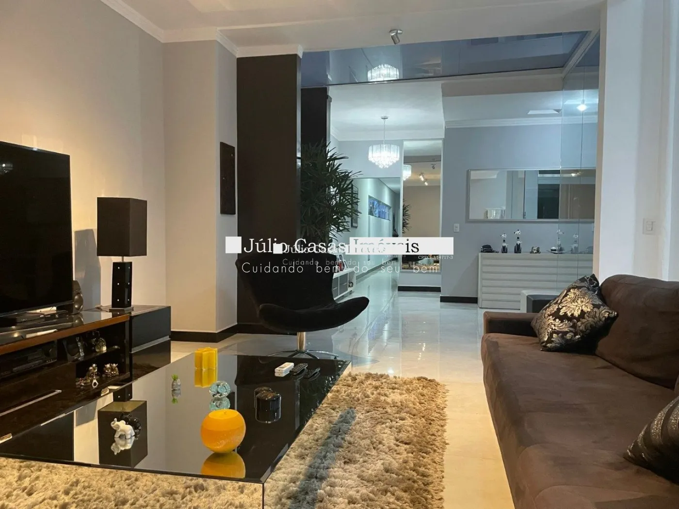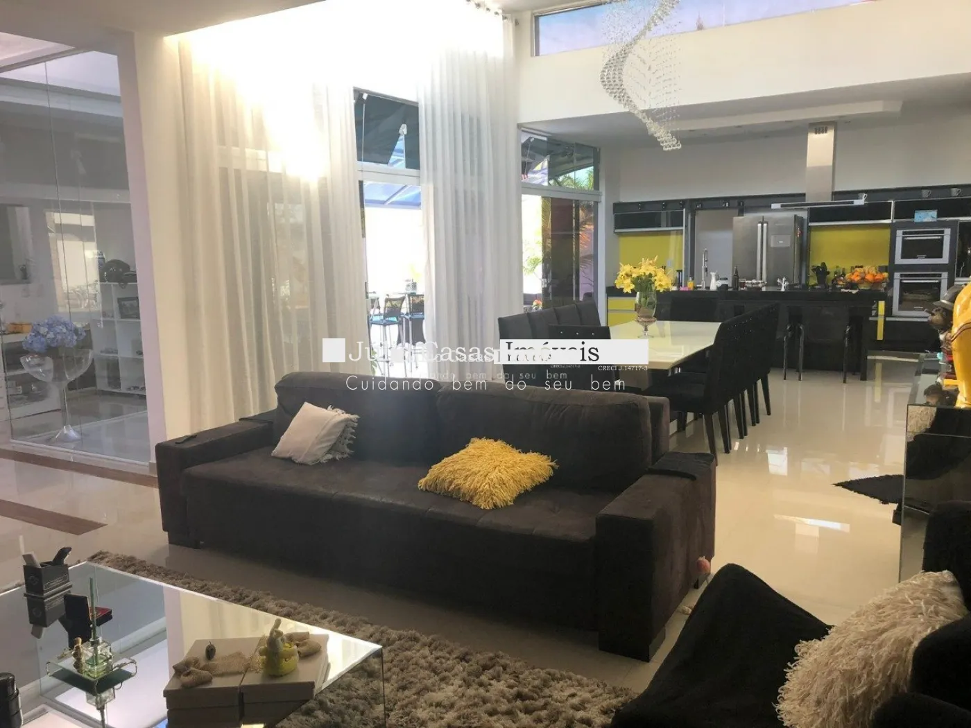 Sala de 3 Ambientes com pé direito duplo, proporcionando um ambiente arejado e elegante.
