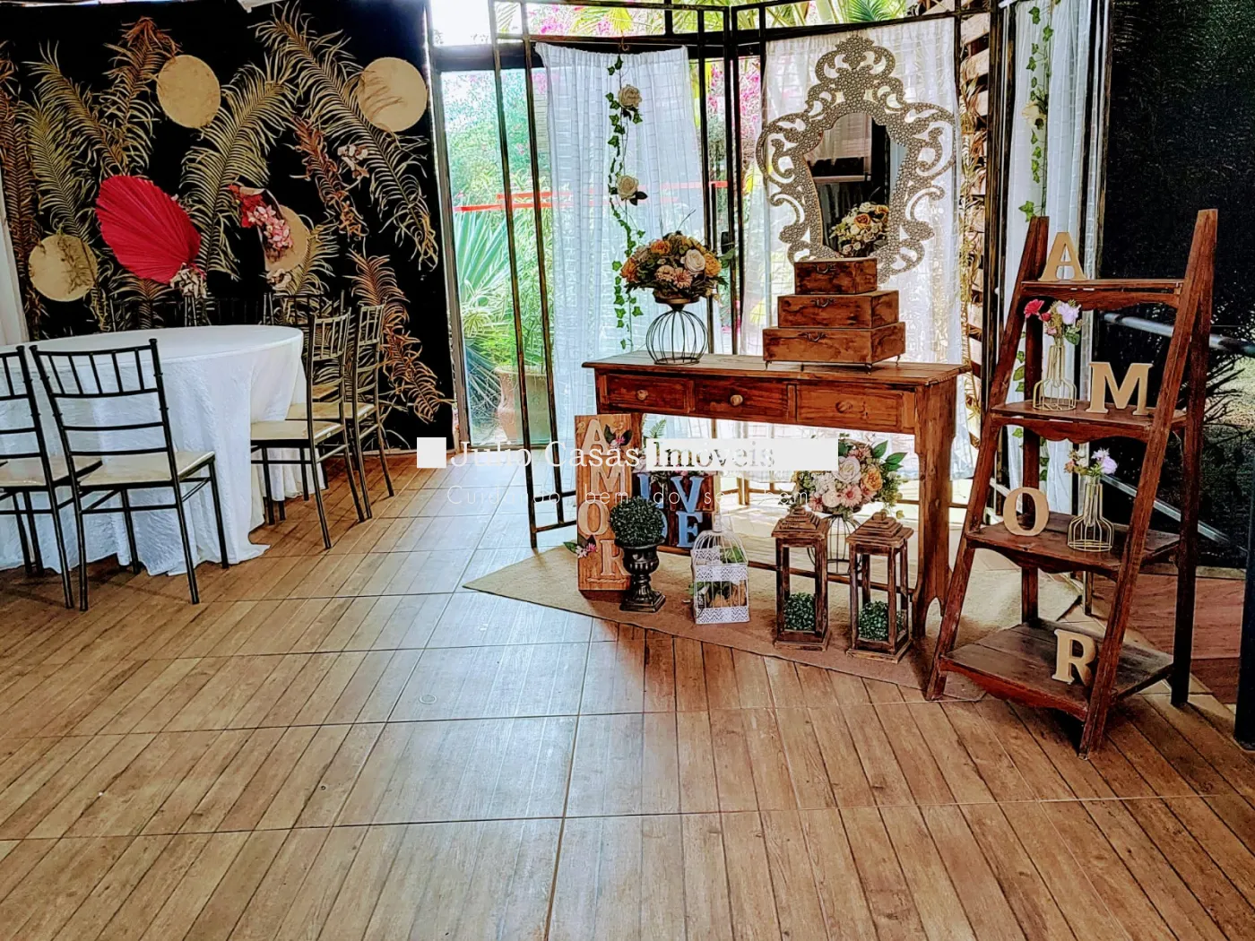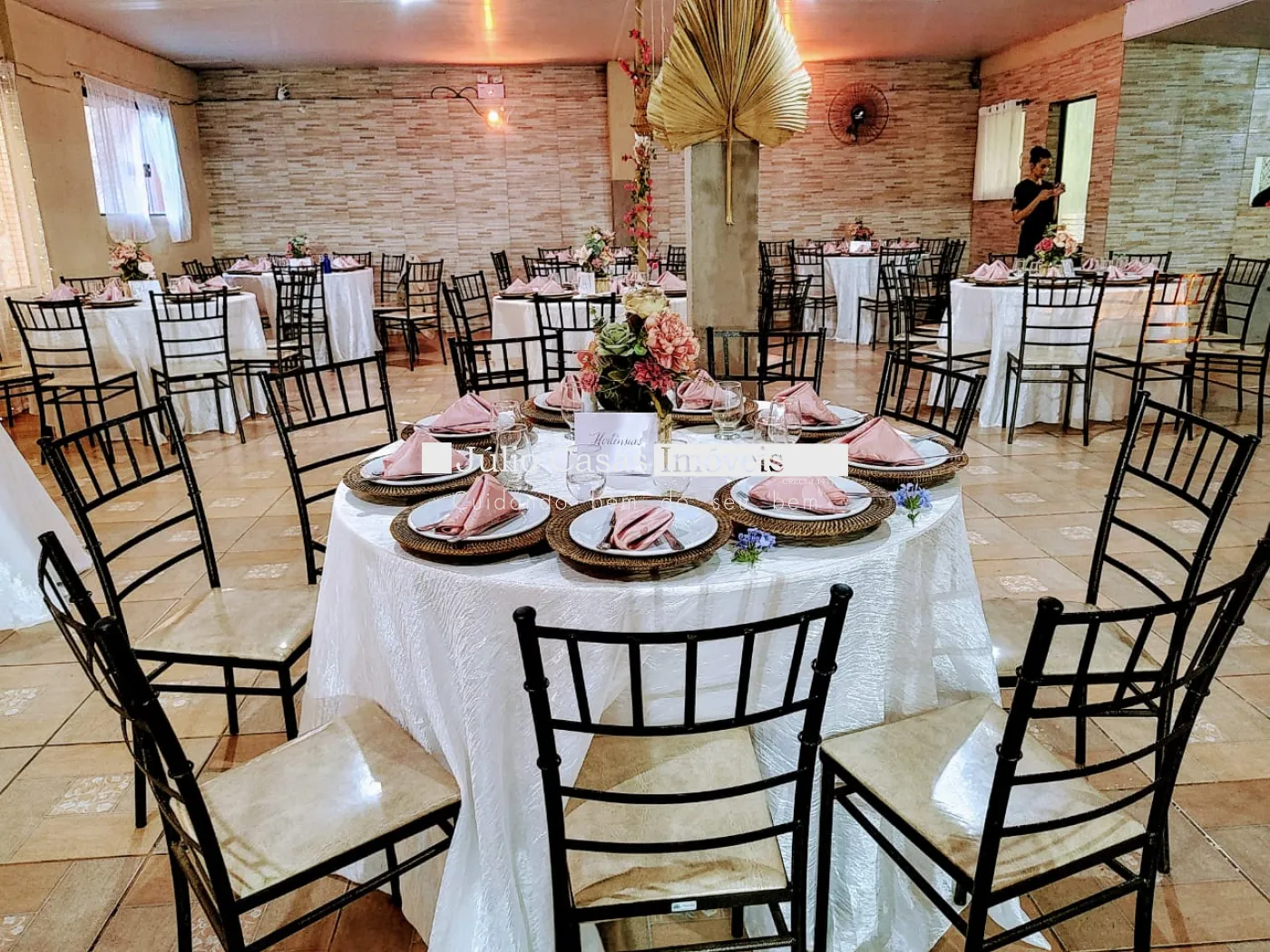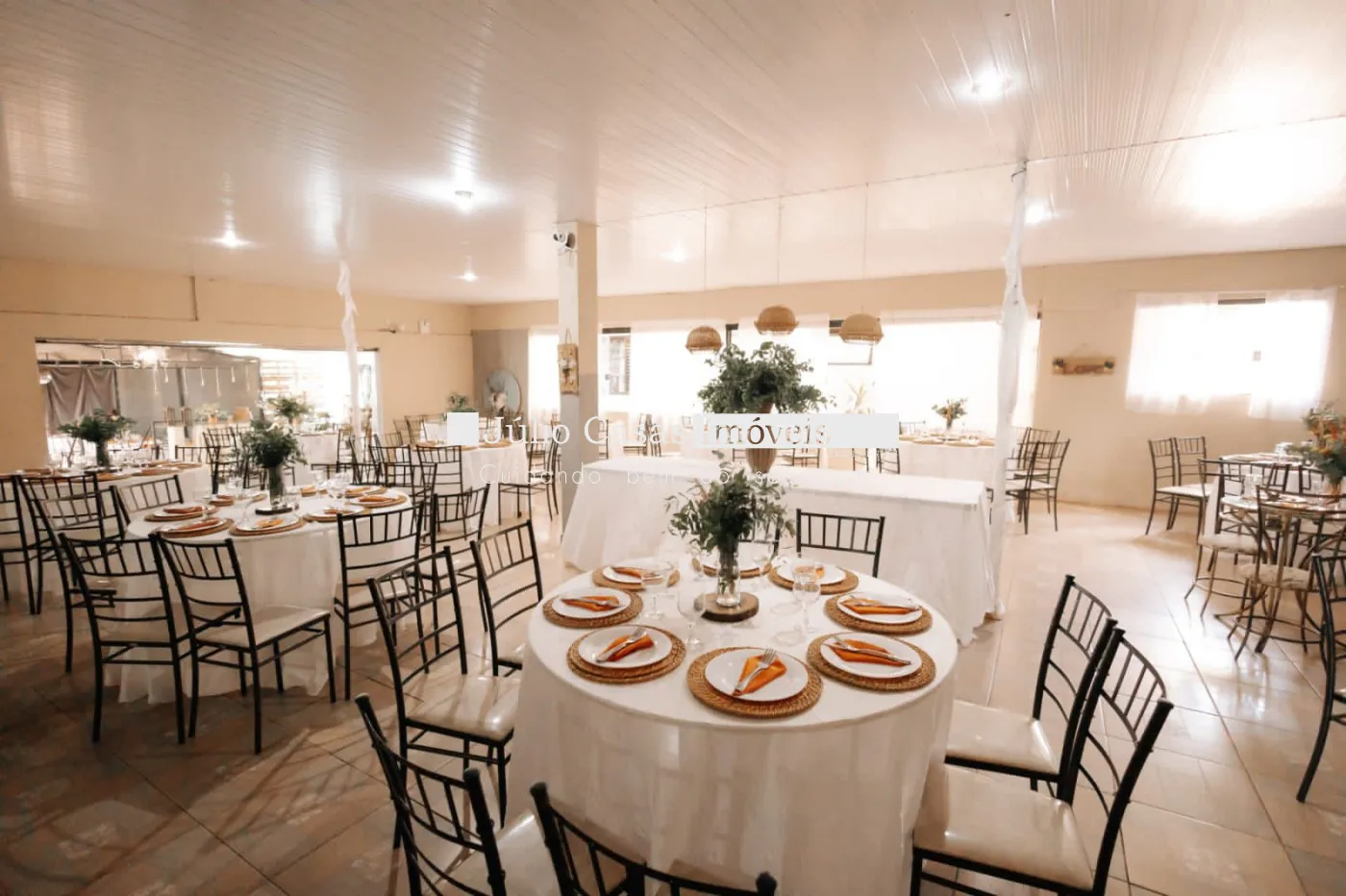 - Salão fechado amplo que comporta até 180 pessoas sentadas;