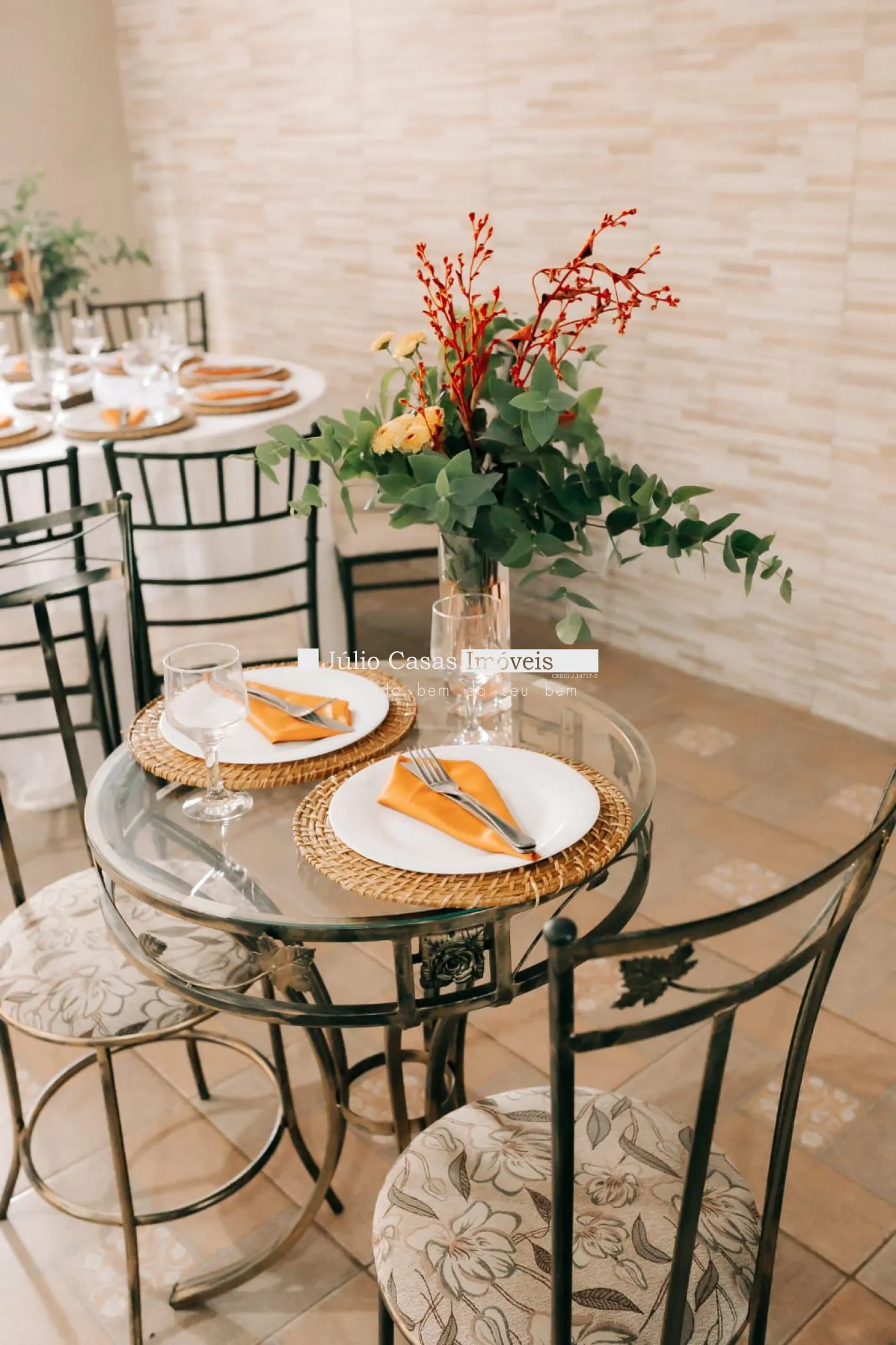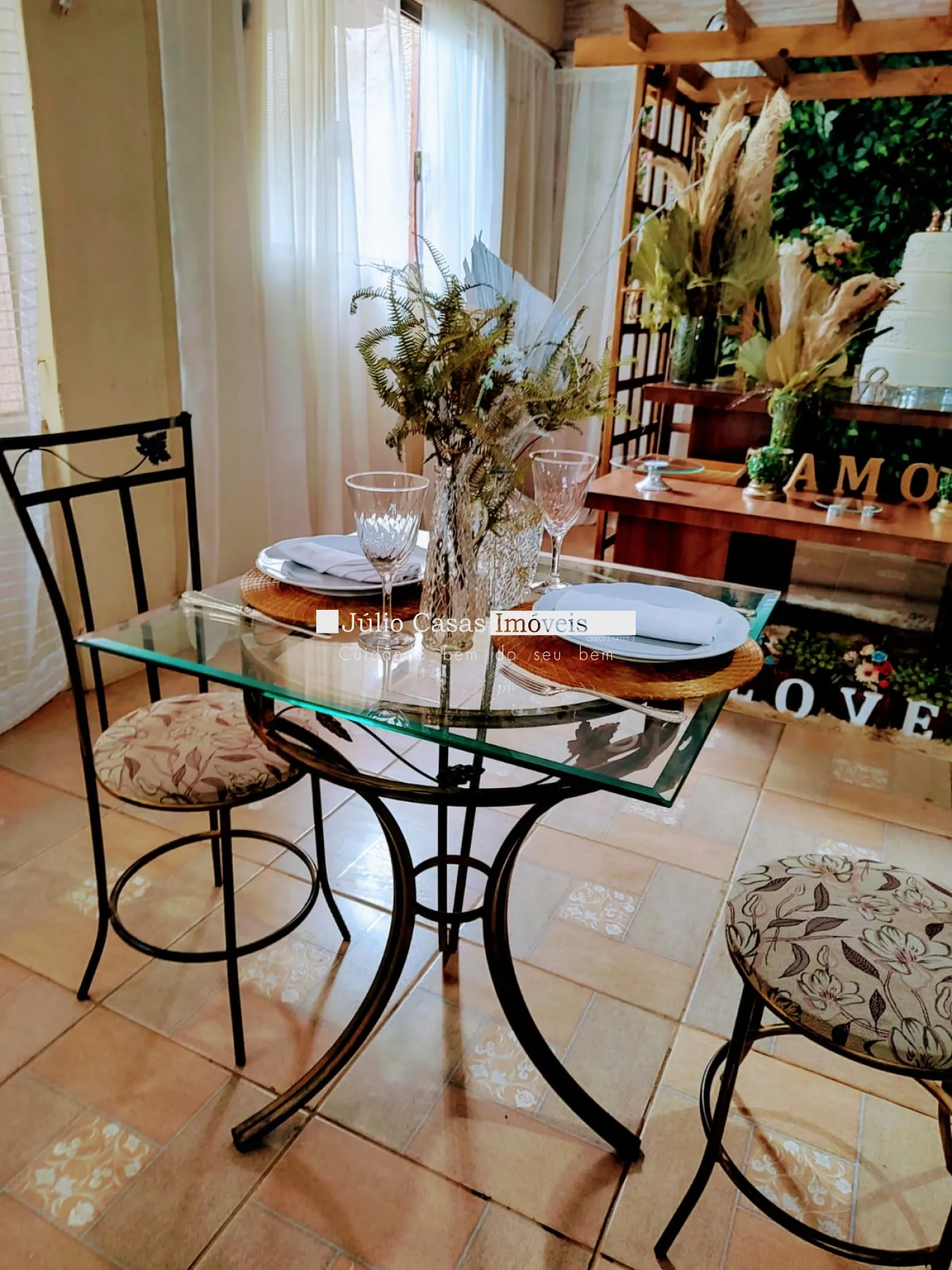 - Mesas e cadeiras de ferro;