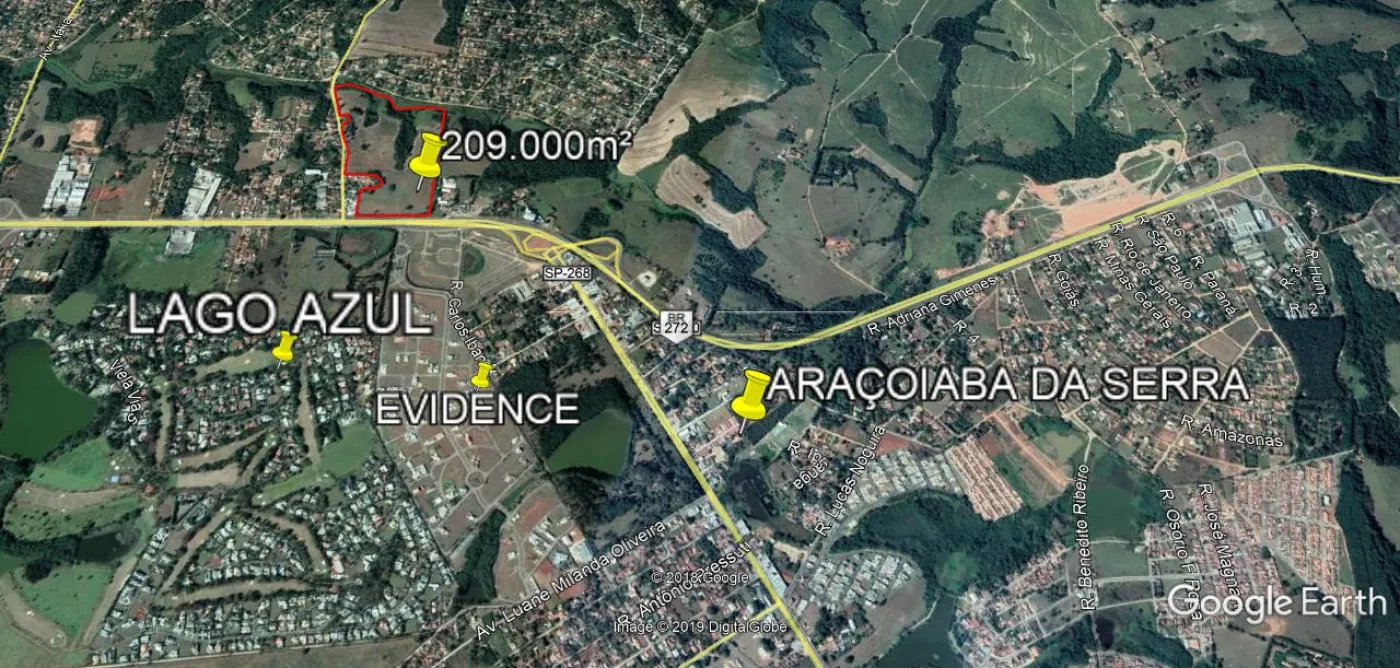 Excelente área com 209.309 metros quadrados, perfeita para loteamento, bem localizada, com aproximadamente 300 metros de frente com a Rodovia Raposo Tavares, em Araçoiaba da Serra.