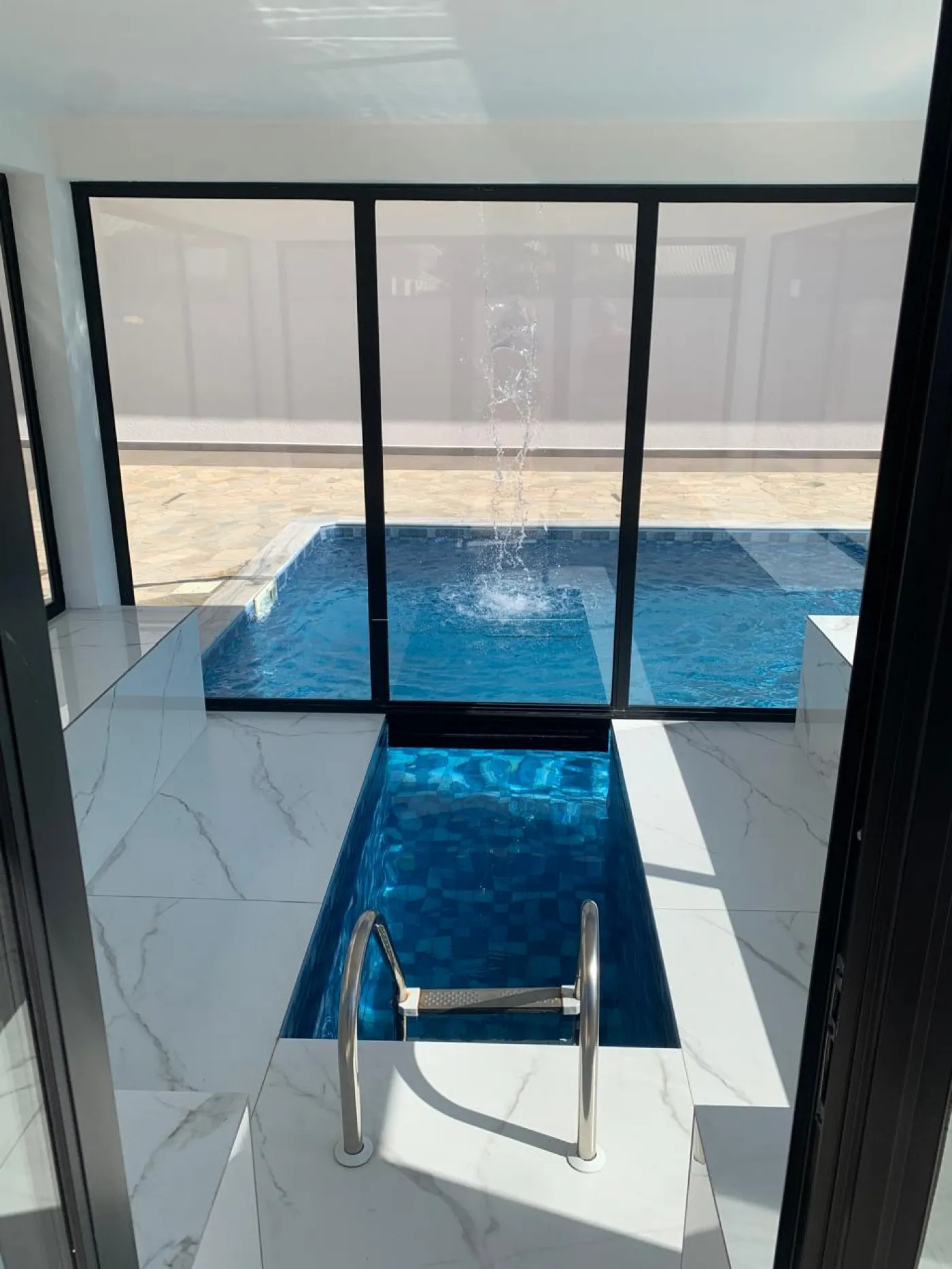 Este imóvel possui um reservatório externo de água com capacidade para 15.000 litros e reposição automática. Todo o piso é em porcelanato, projetado com total acessibilidade, sem degraus e com portas mais largas. Há preparação para tomadas para carros elétricos, ar condicionado em todos os ambientes e aquecimento da piscina.