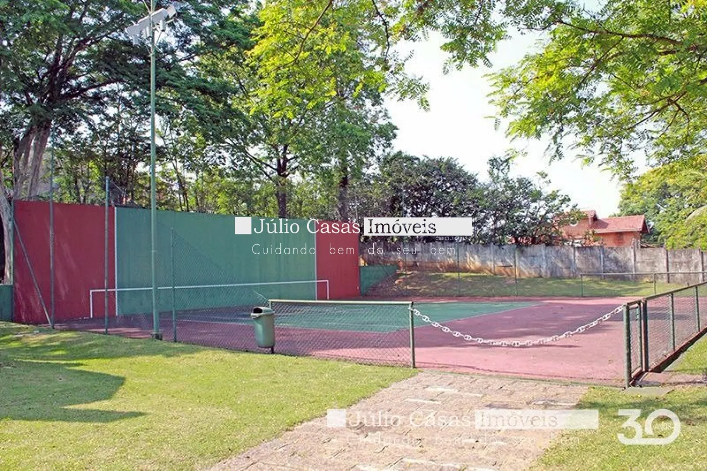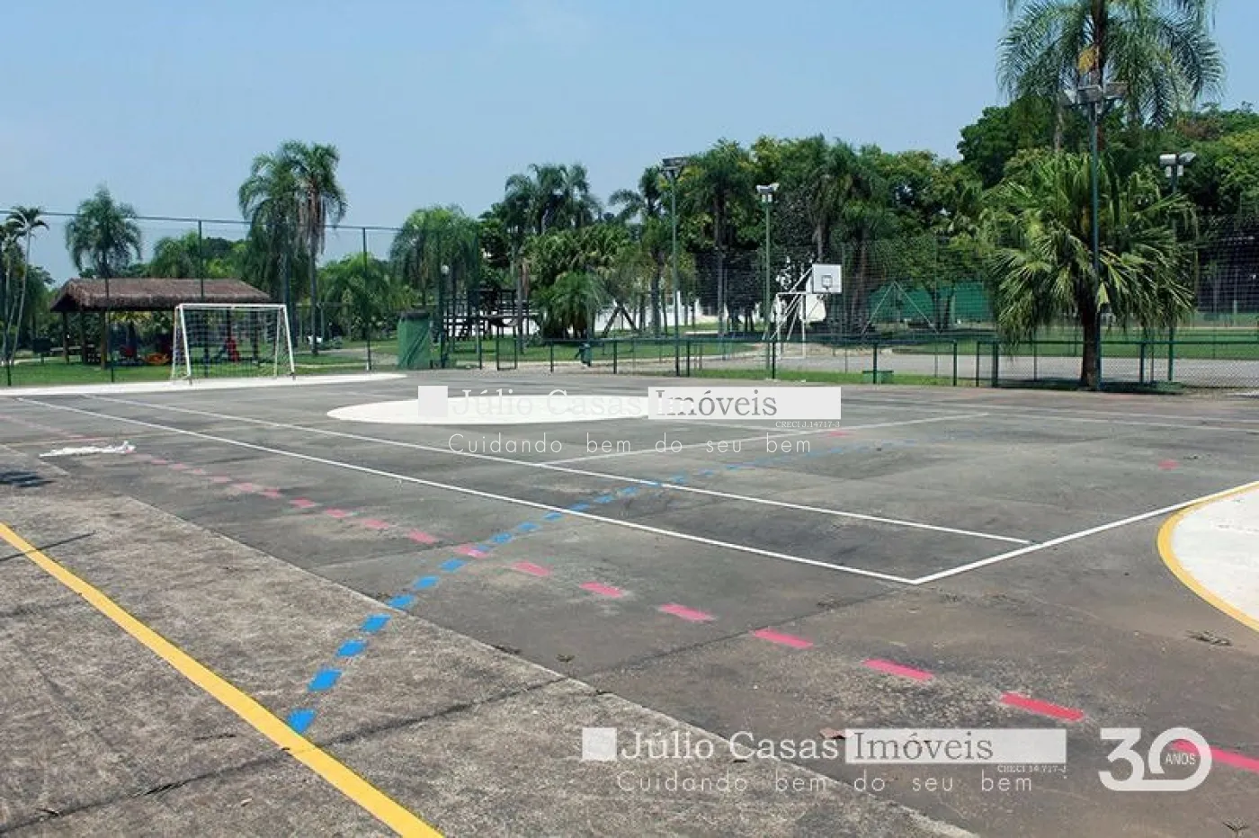 Área de lazer com quadra poliesportiva, piscina com quiosque.