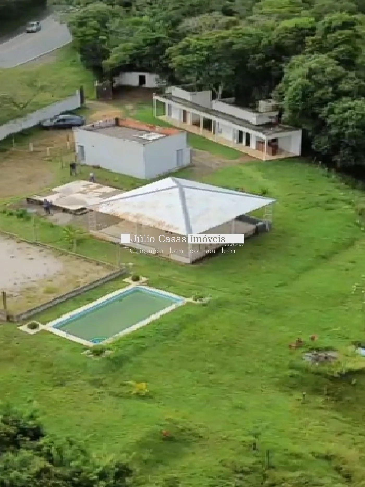 Conta com cozinha industrial equipada, amplo estacionamento, banheiros femininos e masculinos, salão de festas espaçoso, área gourmet com churrasqueira, piscina, dois quartos aconchegantes e uma vista deslumbrante cercada por muito verde. A propriedade dispõe de energia trifásica e sistema de alarme monitorado por empresa especializada, garantindo segurança e tranquilidade.