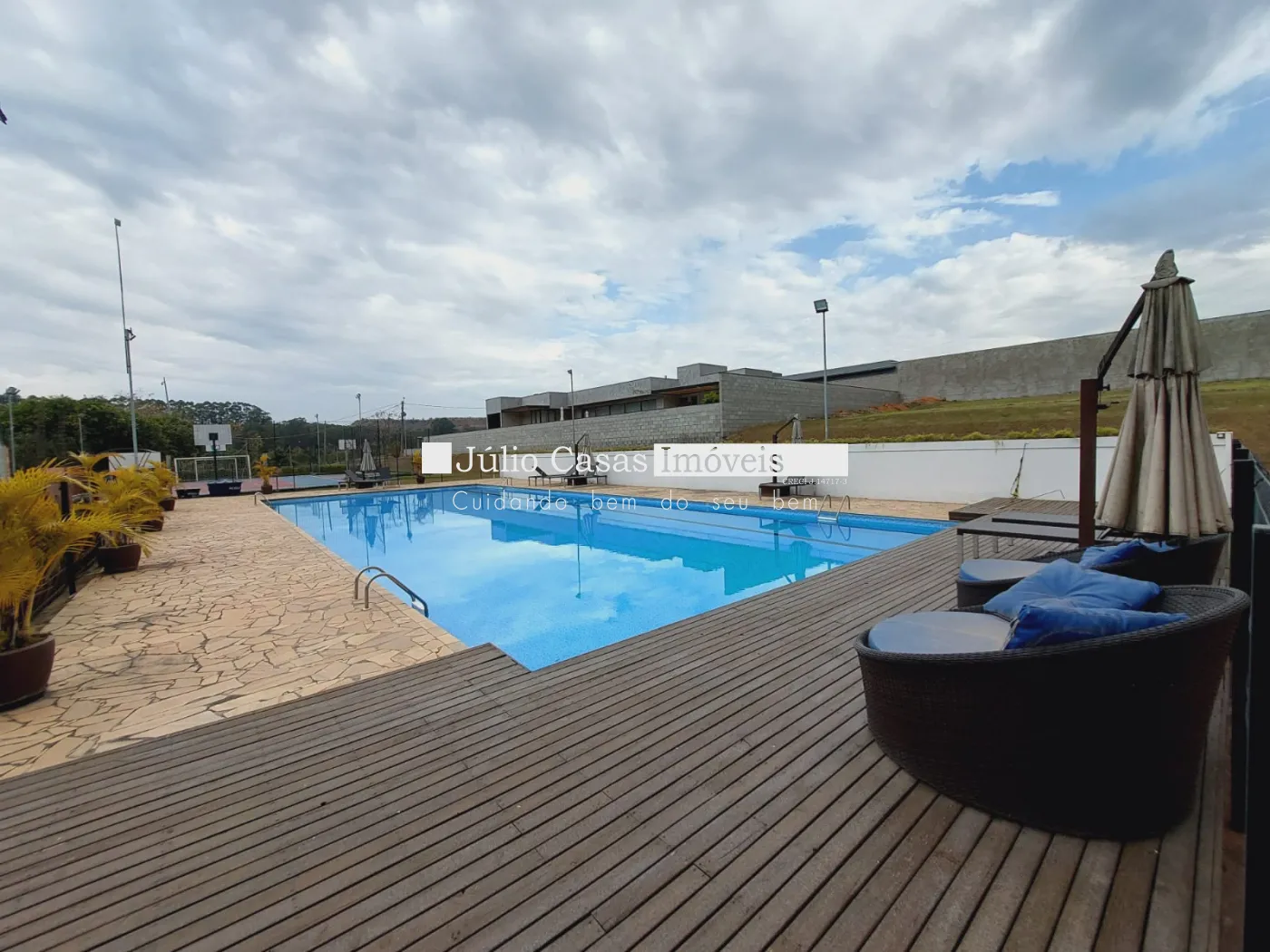 Condomínio com lazer completo, piscina, quadra de areia, quadra poliesportiva, quadra de tênis, playground.