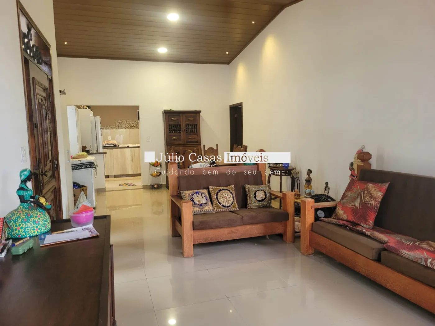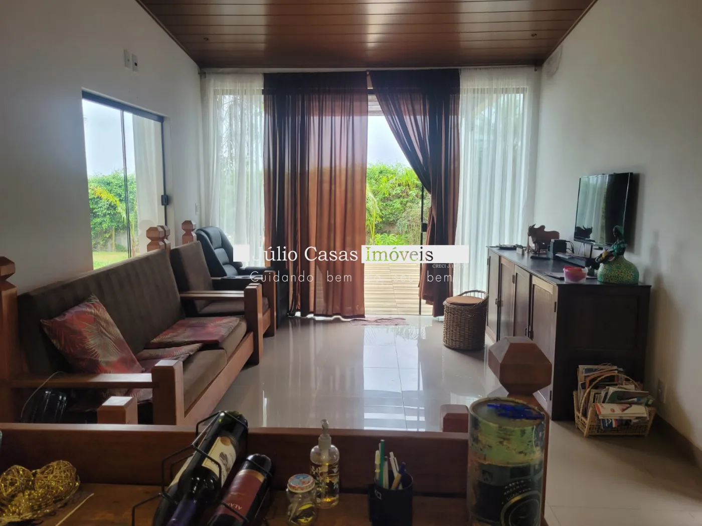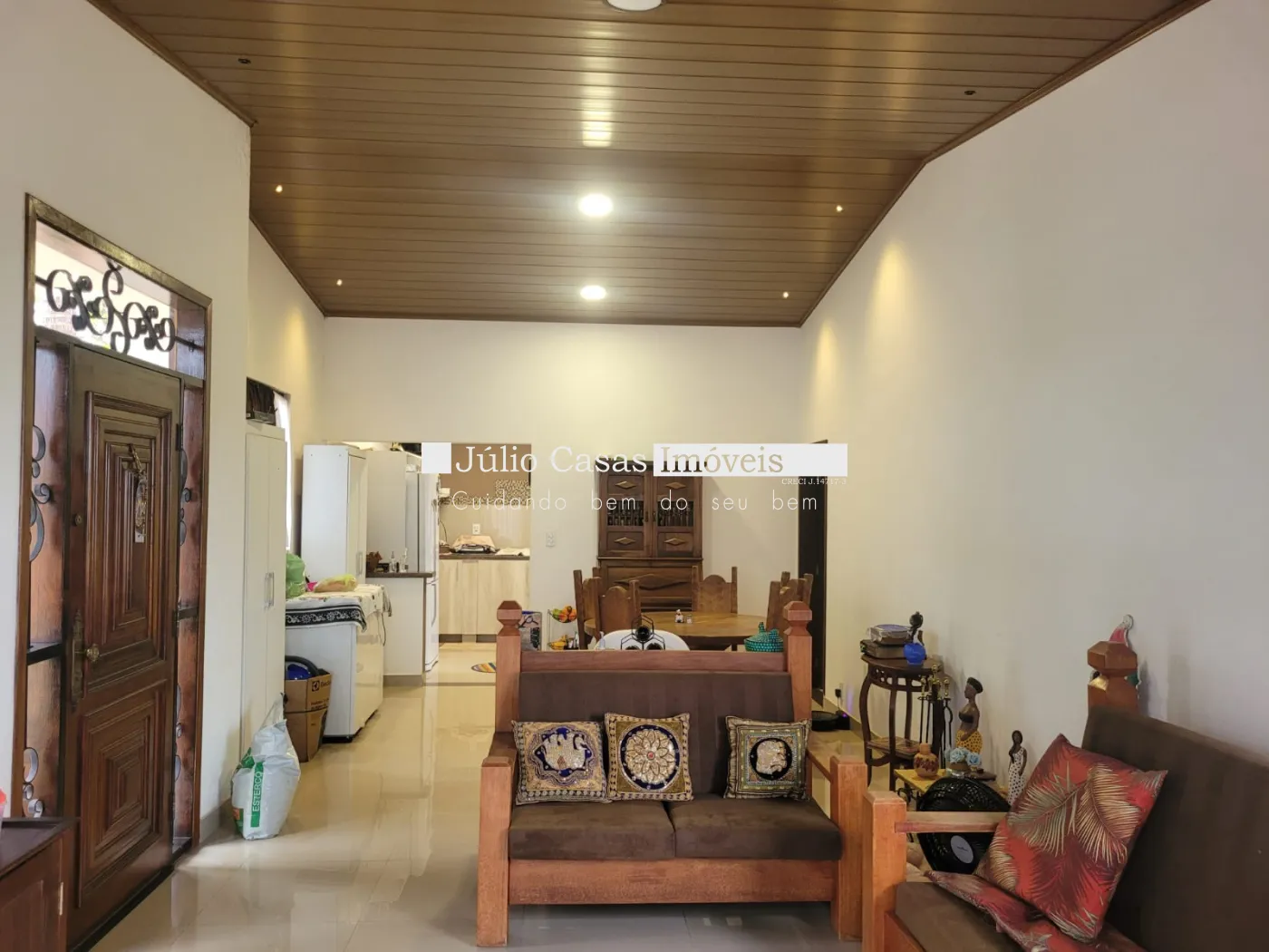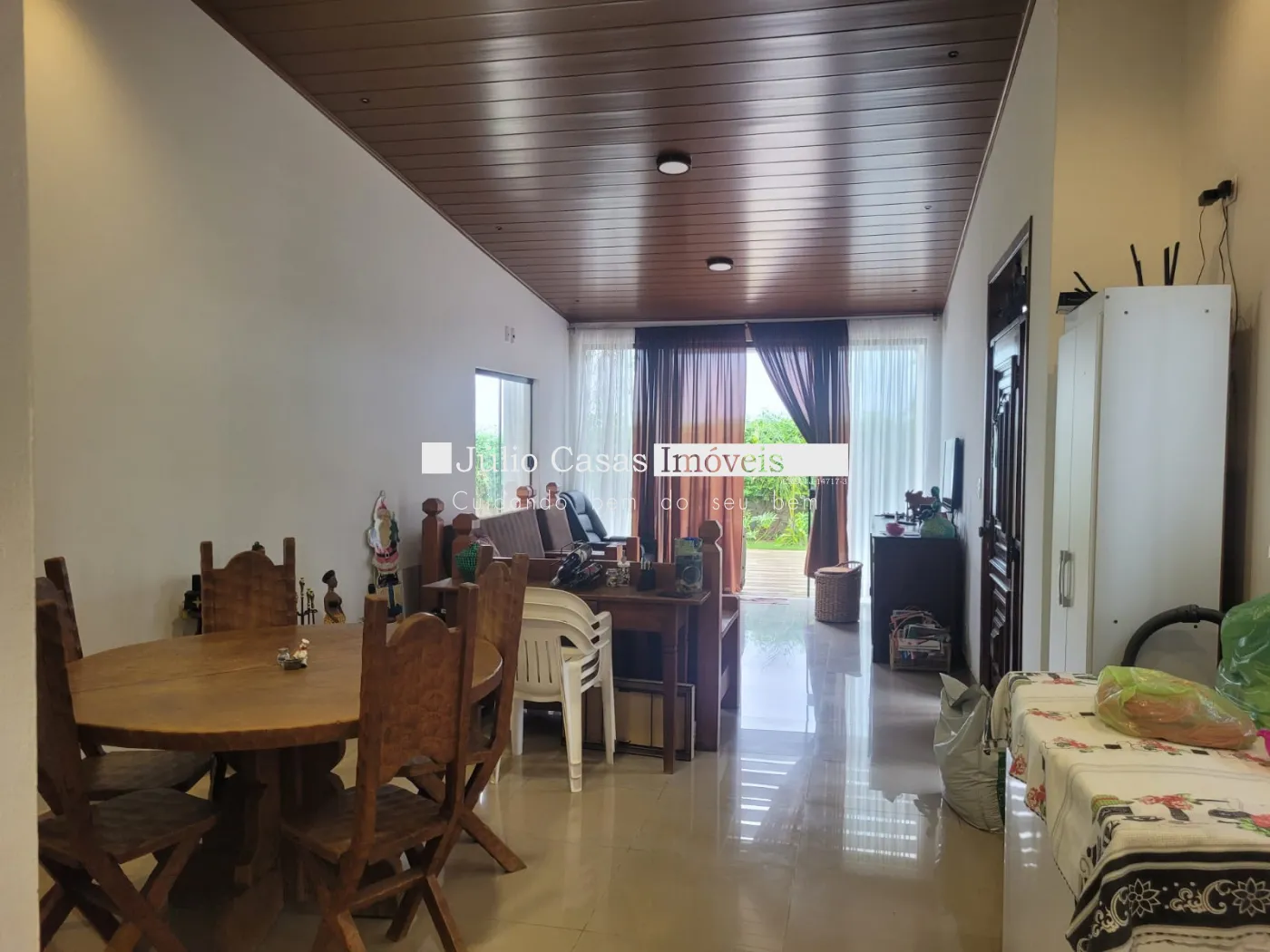 Casa em estilo contemporâneo, térrea com pé direito alto, sala ampla para dois ambientes, jantar e estar.