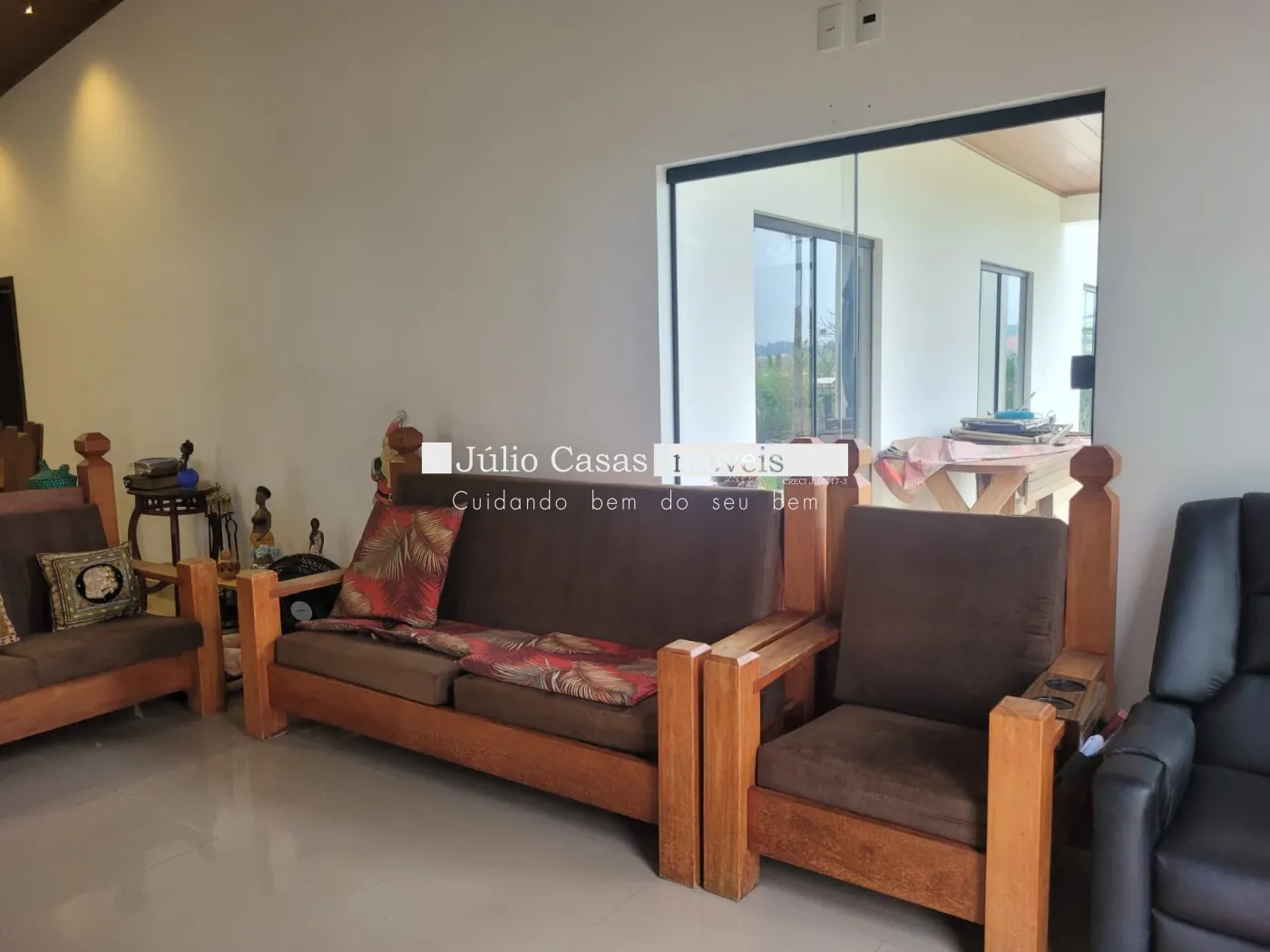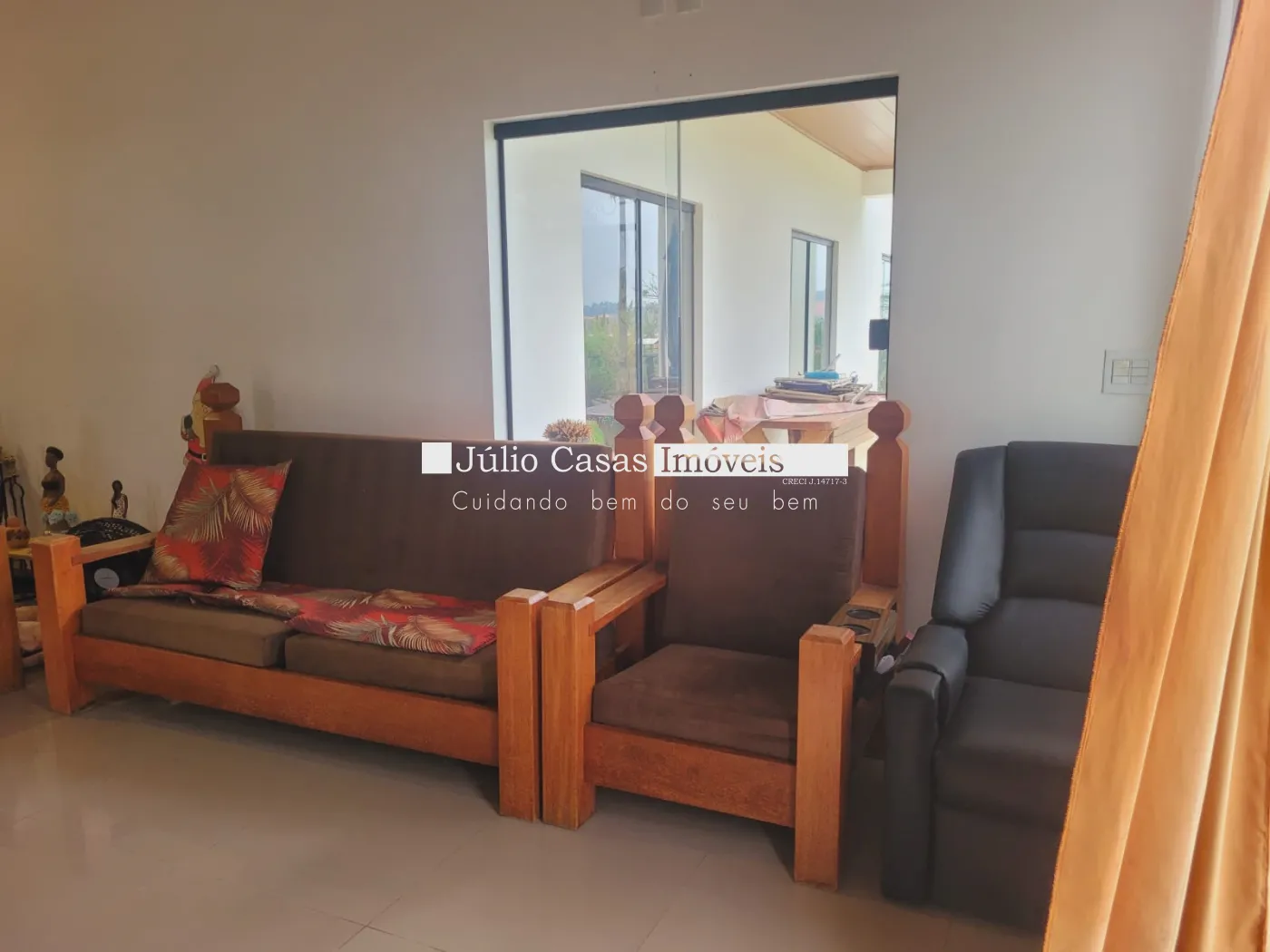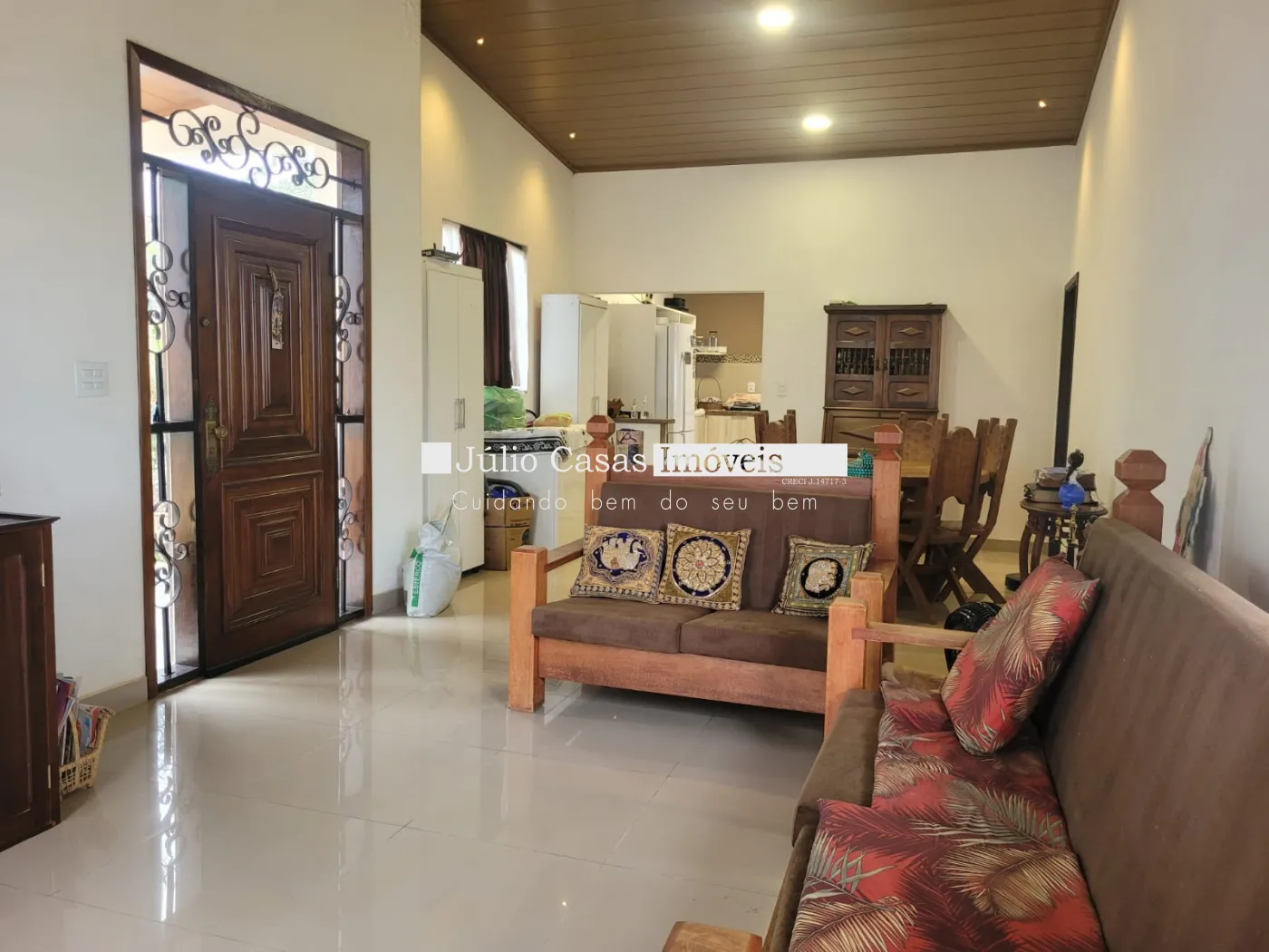 Casa em estilo contemporâneo, térrea com pé direito alto, sala ampla para dois ambientes, jantar e estar.