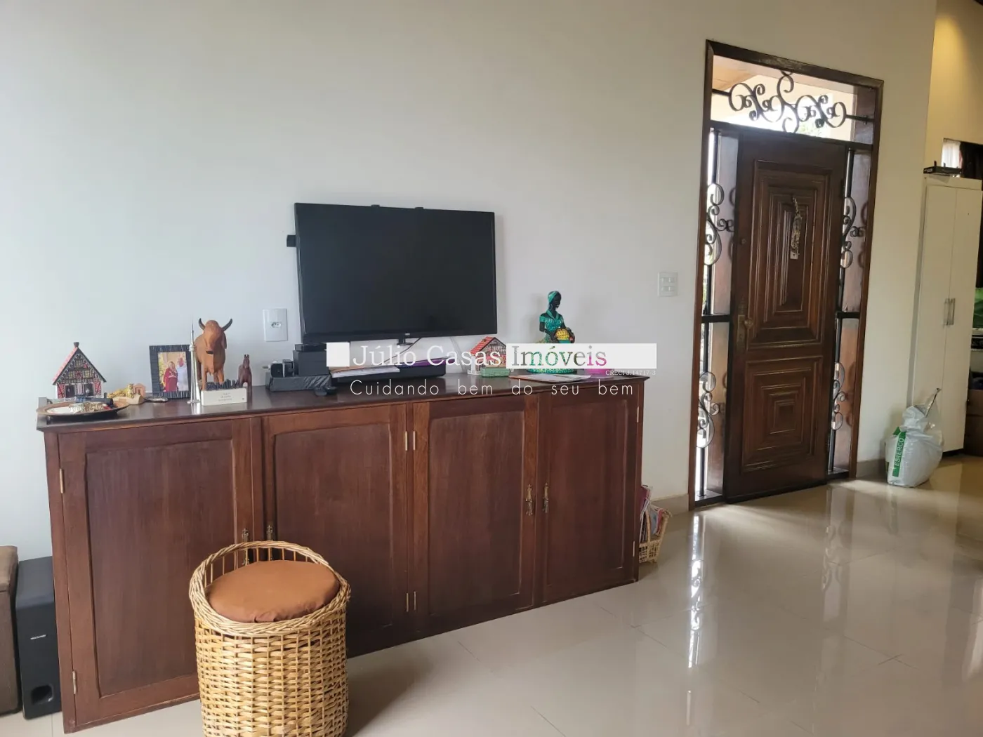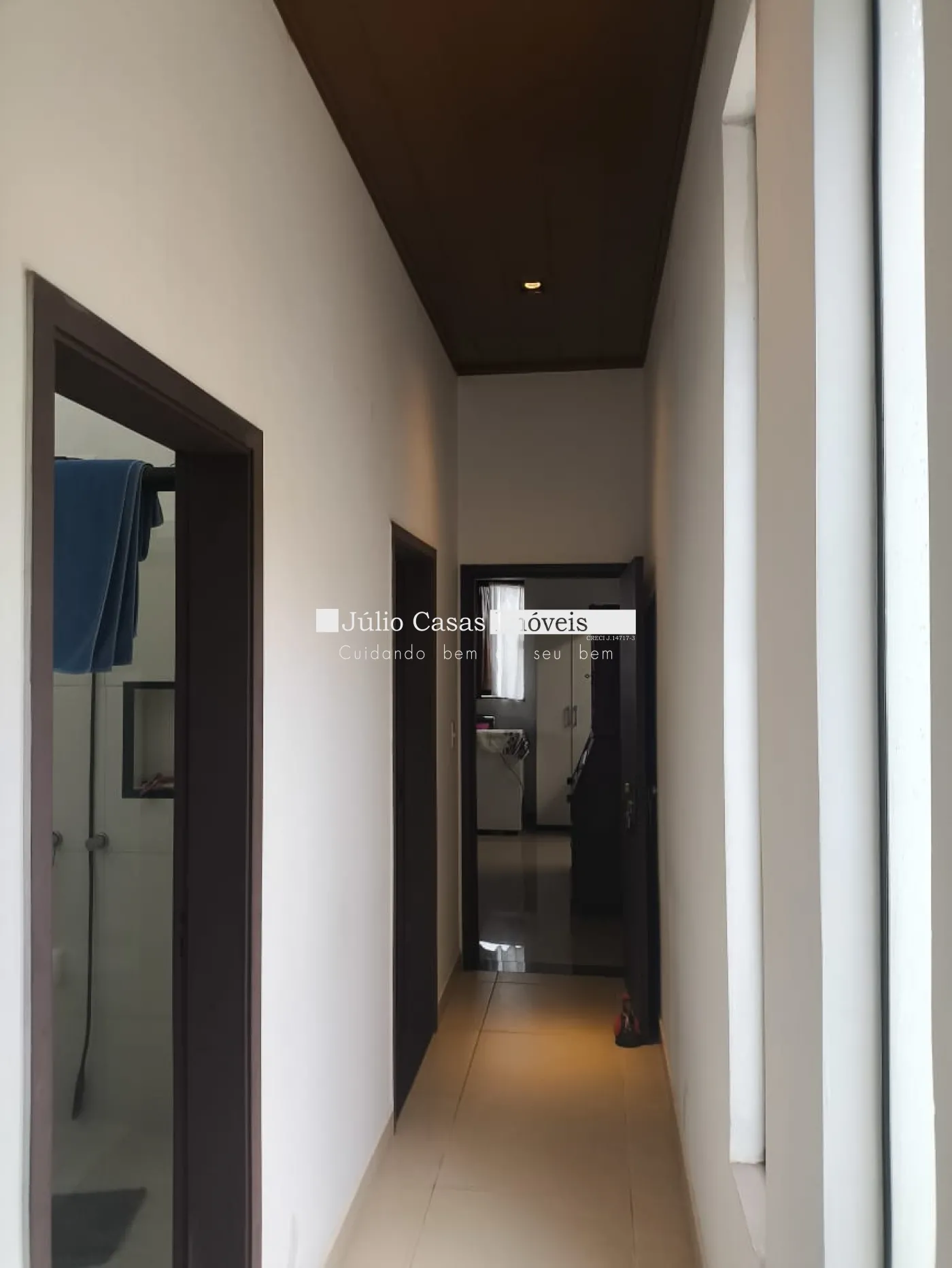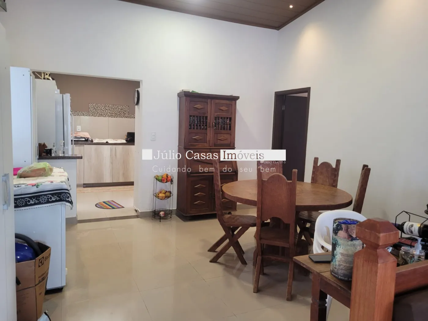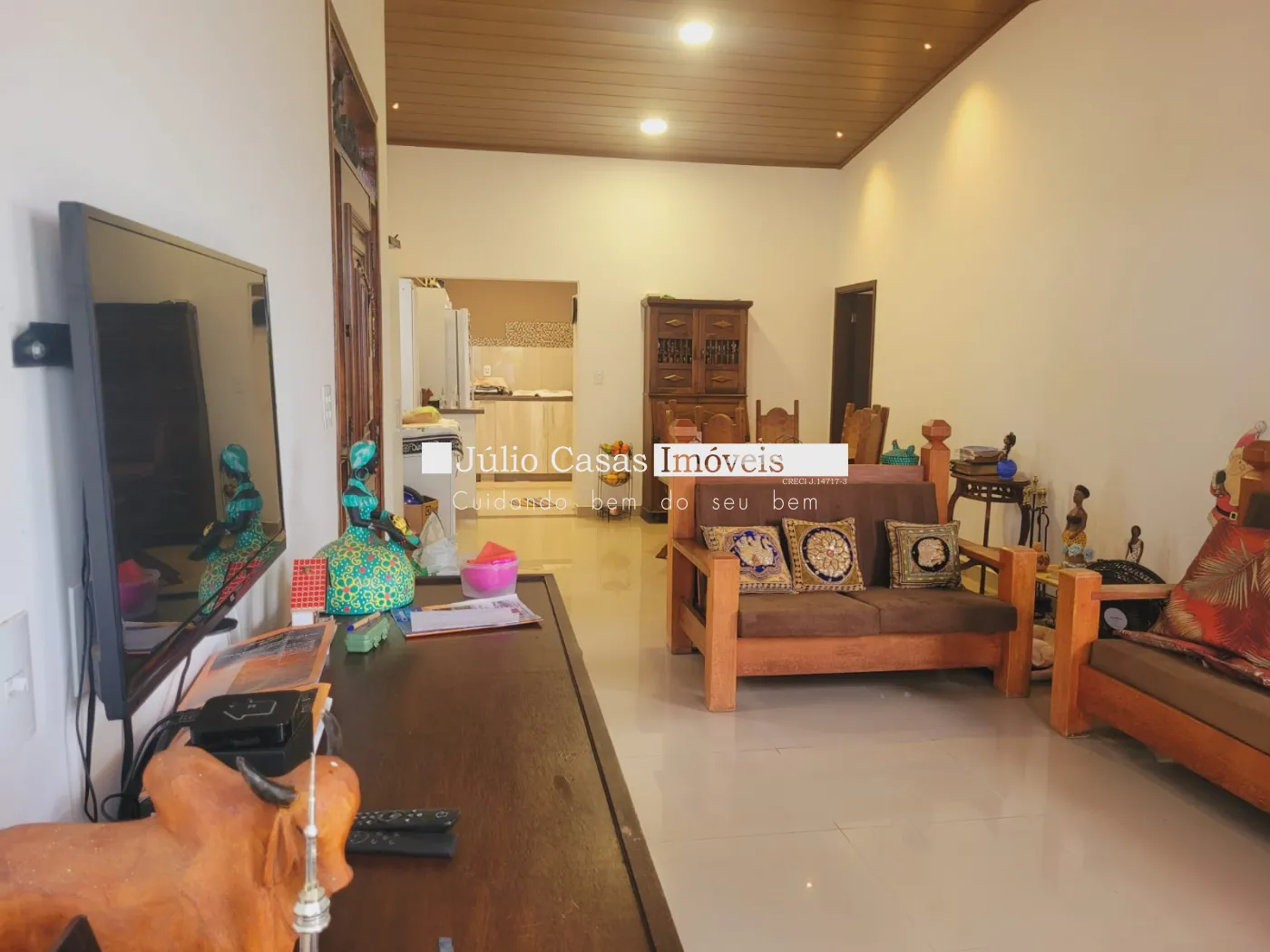 Casa em estilo contemporâneo, térrea com pé direito alto, sala ampla para dois ambientes, jantar e estar.
