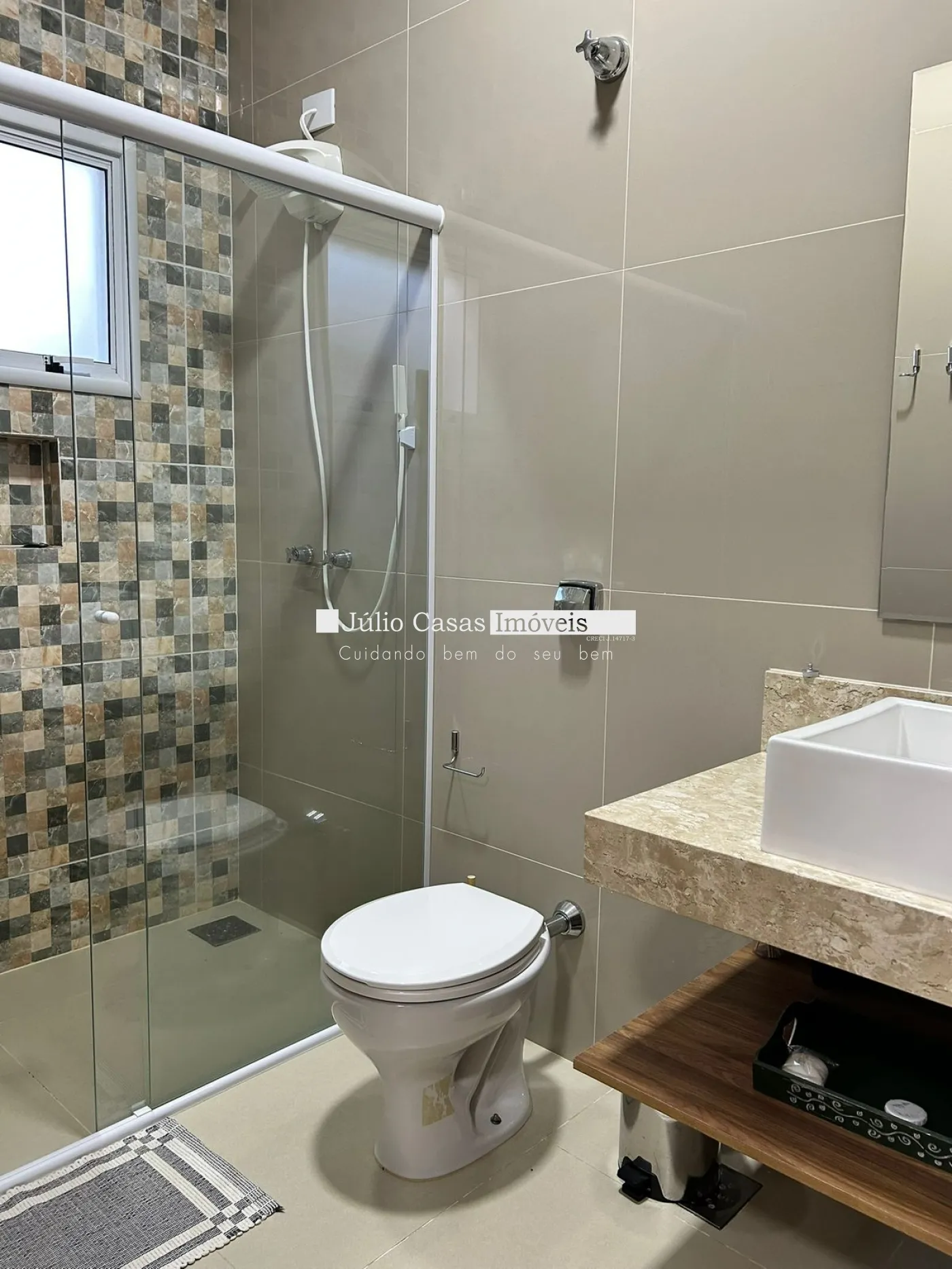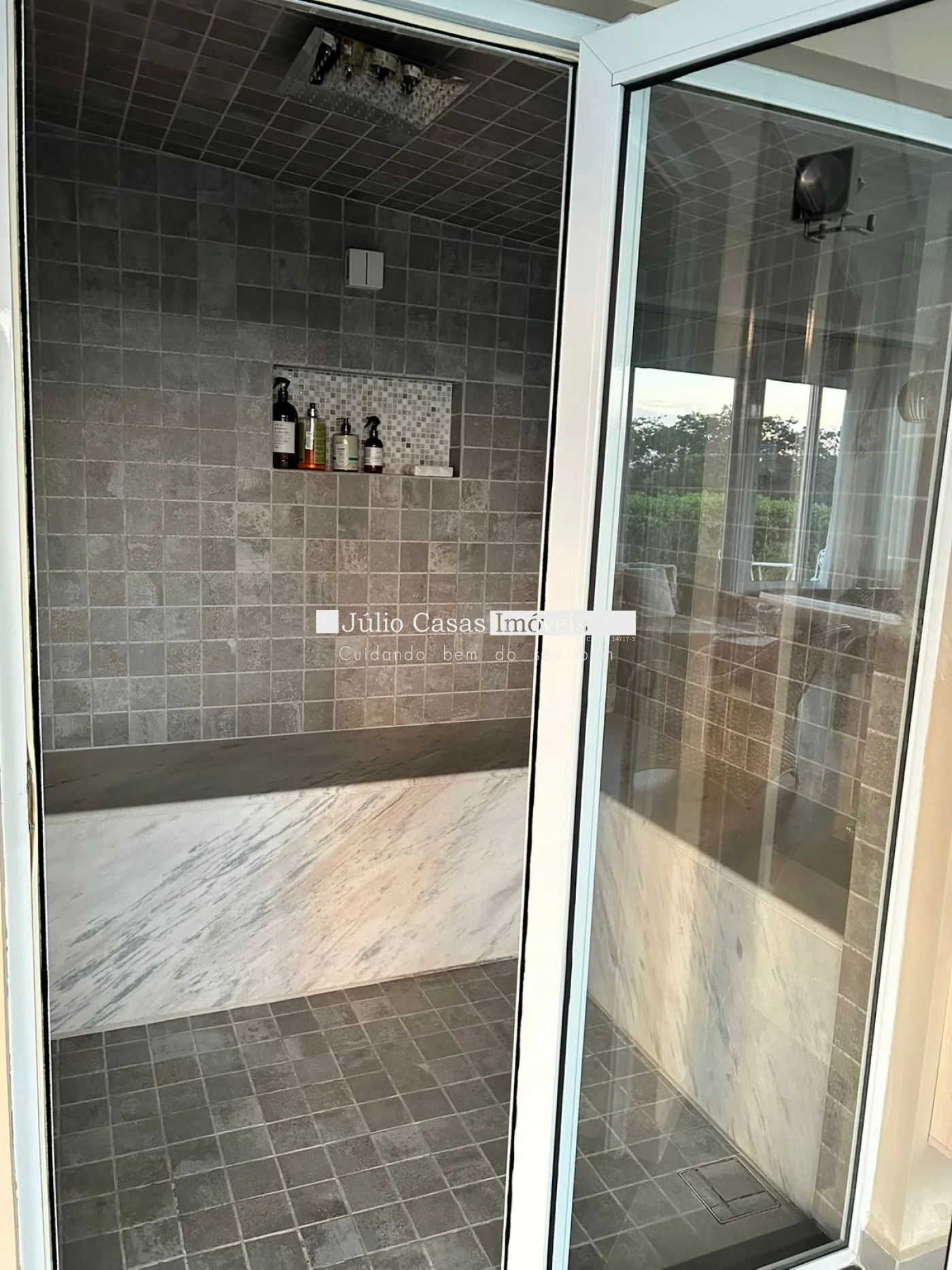 Composta por duas suítes amplas climatizadas com ar condicionado, um banheiro adicional (lavabo), sala climatizada com ar condicionado e com hidromassagem, sauna, academia equipada com aparelhos de altíssima qualidade, cozinha integrada, espaço para entrada de vários veículos e uma extensa área verde.