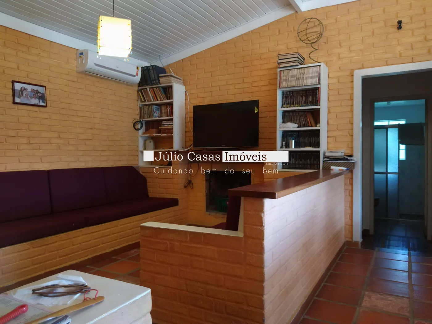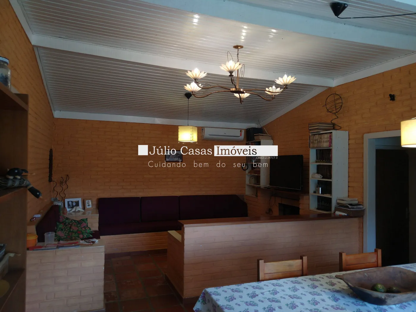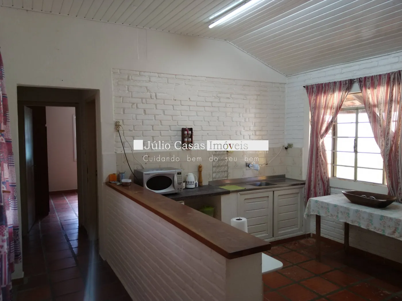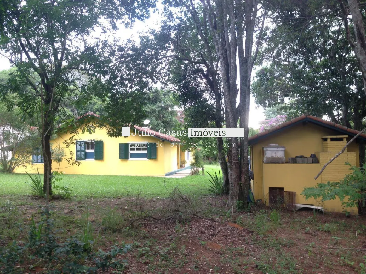 Chácara com casa térrea, poço artesiano, sala com lareira, ar condicionado frio e quente, sala de jantar, cozinha, 4 dormitórios, 2 banheiros, varanda, na área externa possui, edícula, sauna, churrasqueira, garagem e banheiro, possui também uma construção fechada onde era usado para serralheria.