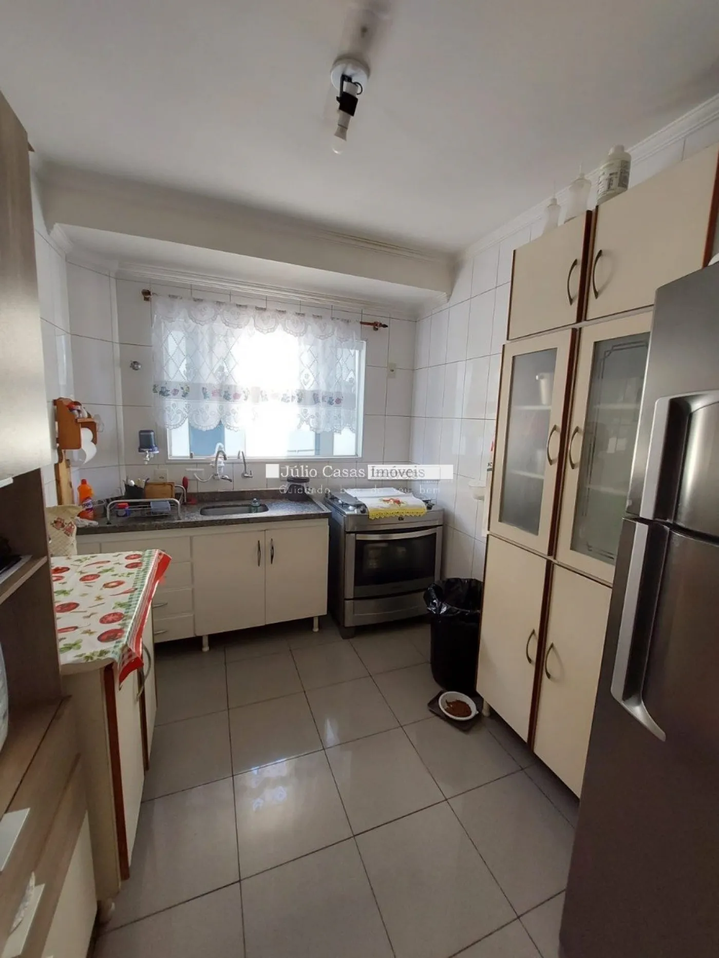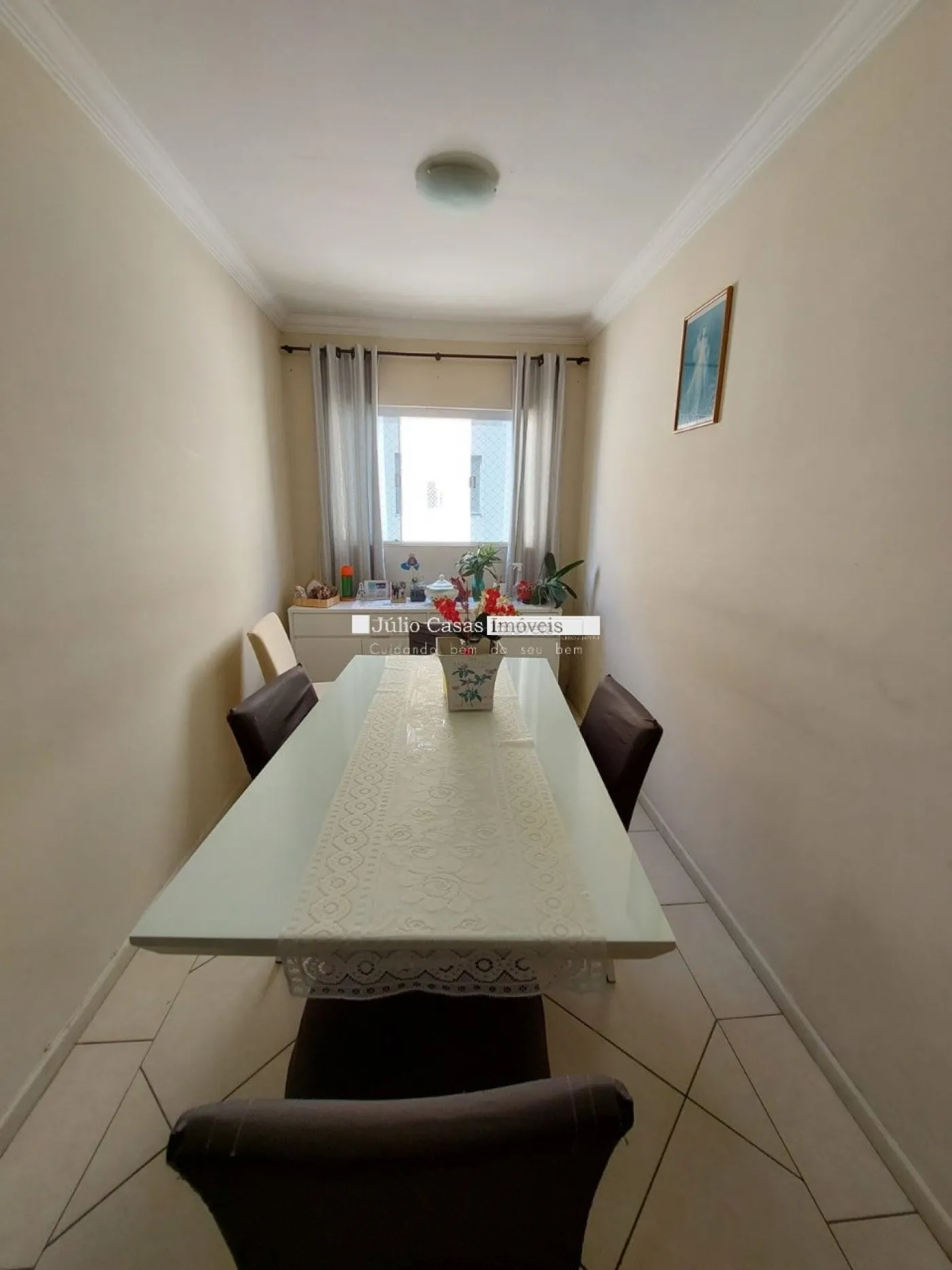Cobertura com 150 m² de área privativa, no primeiro pavimento temos toda a área intima do imóvel , com sala para dois ambientes em piso cerâmico, cozinha repleta de armários com bancada em granito, 3 dormitórios ,sendo um deles suite com varanda, e mais um banheiro social que serve os demais quartos.
