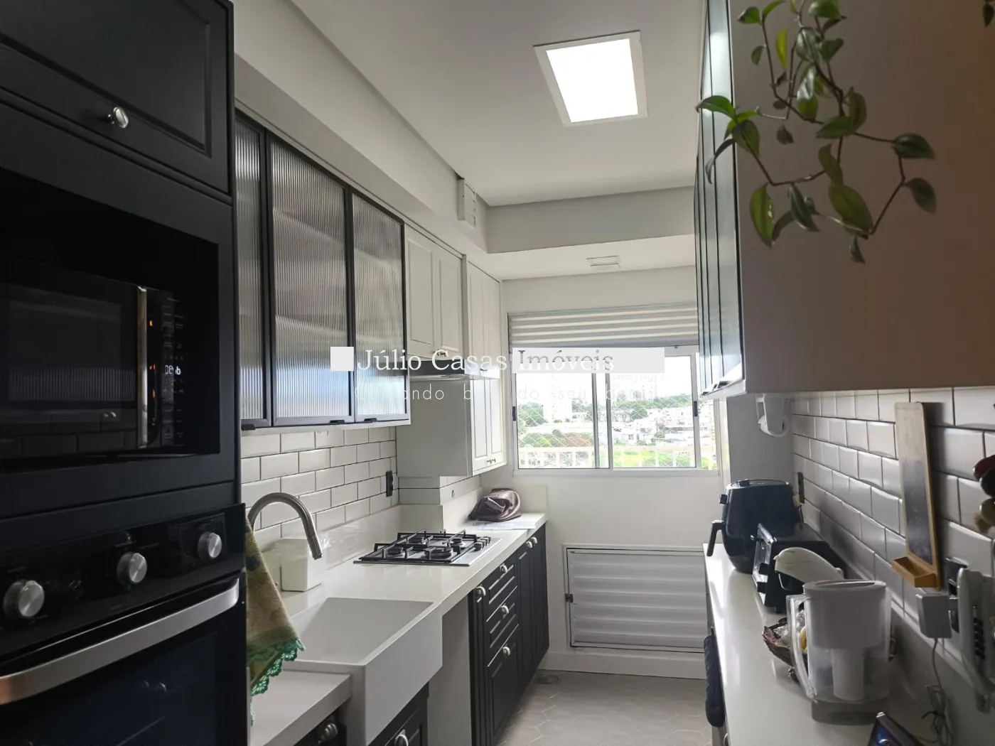 Lindo duplex à venda com sala ampla para dois ambientes, uma parede em cimento queimado, cozinha planejada, pia com cuba em inox, torneira Tramontina, fogão cooktop.