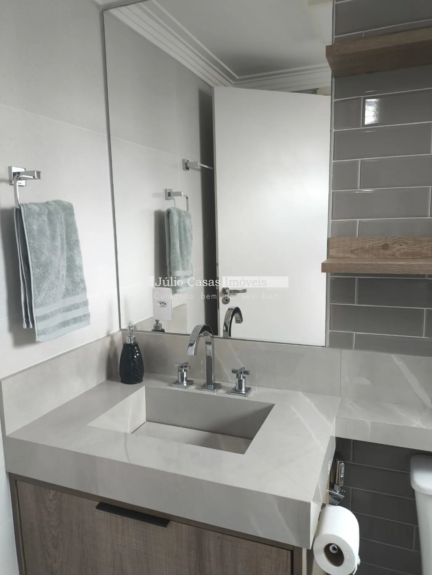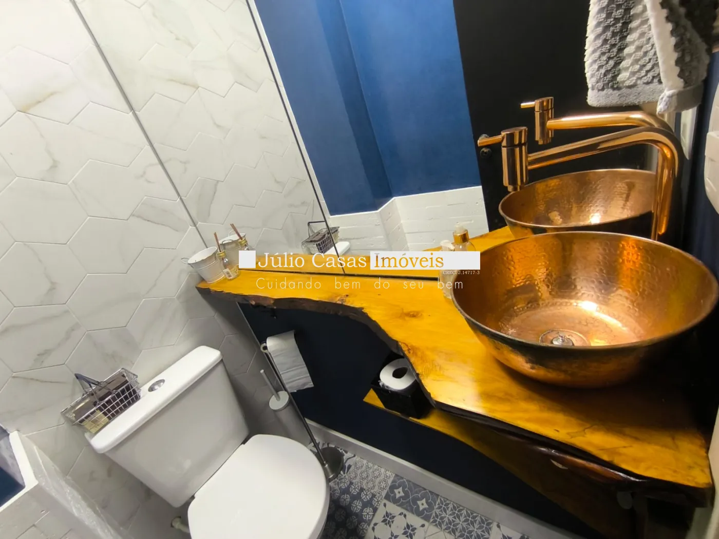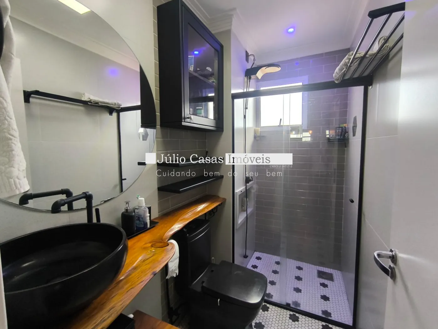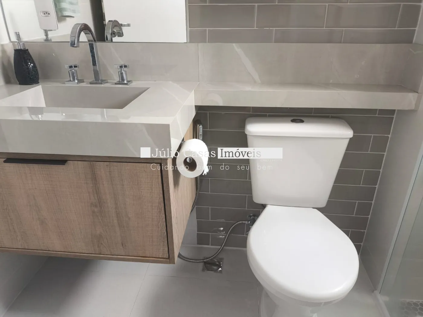 O ponto alto é a área gourmet de 25 m². Com cobertura Zetaflex retrátil e fechamento em vidro, o espaço se adapta a qualquer clima. Os banheiros são um espetáculo à parte, com cubas esculpidas em porcelanato e revestimentos decorativos.