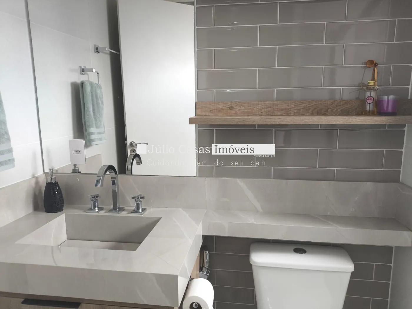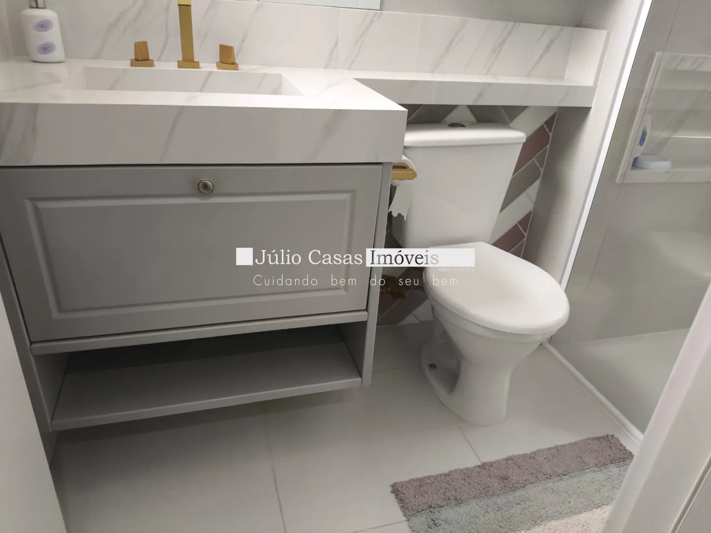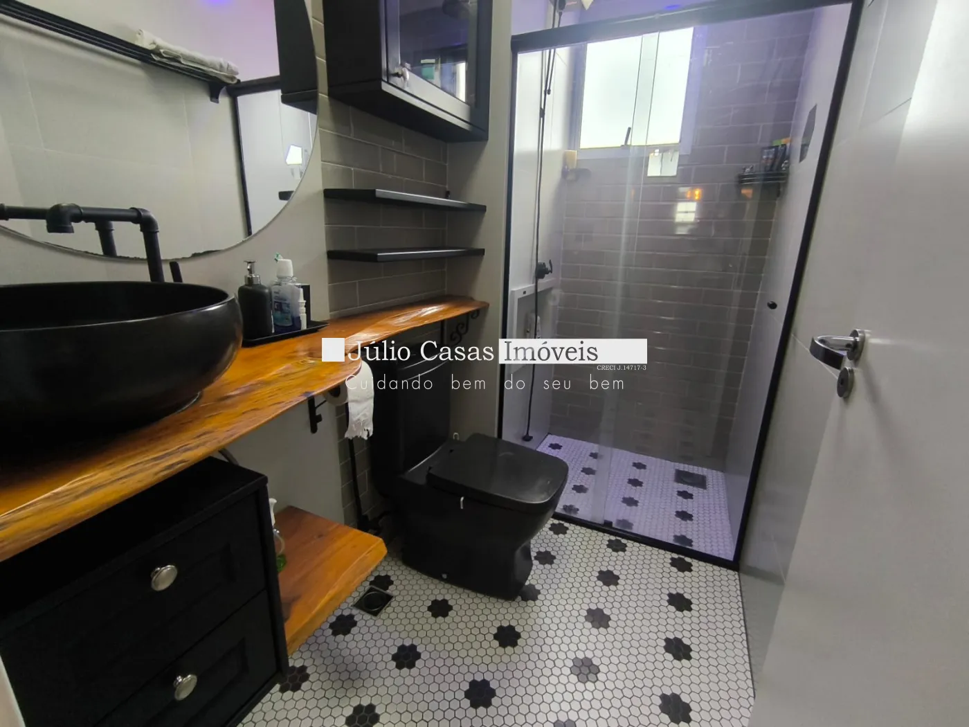 Acabamentos Nobres: Piso Portobello amadeirado, escada em Granito São Gabriel, banheiros com pias esculpidas em porcelanato e box temperado.