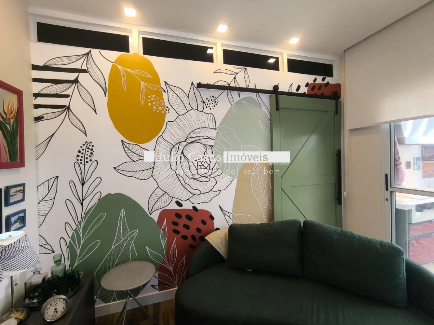 Painel na sala íntima feito pela Artista Plástica Bruna Choarelli.
