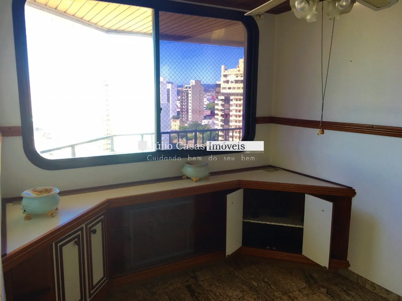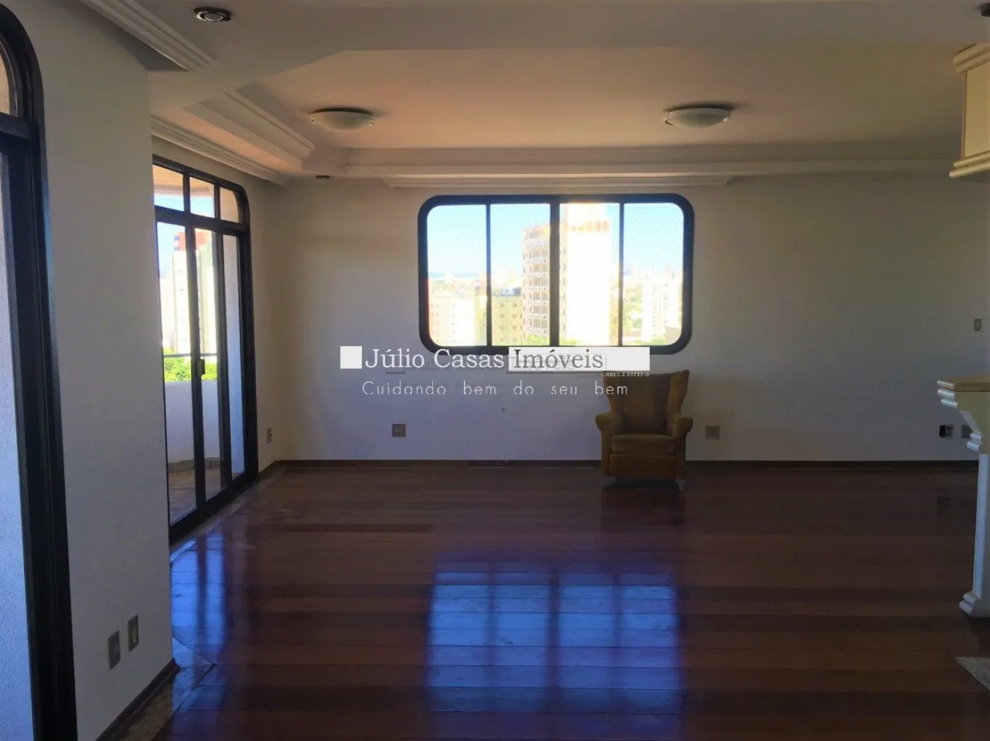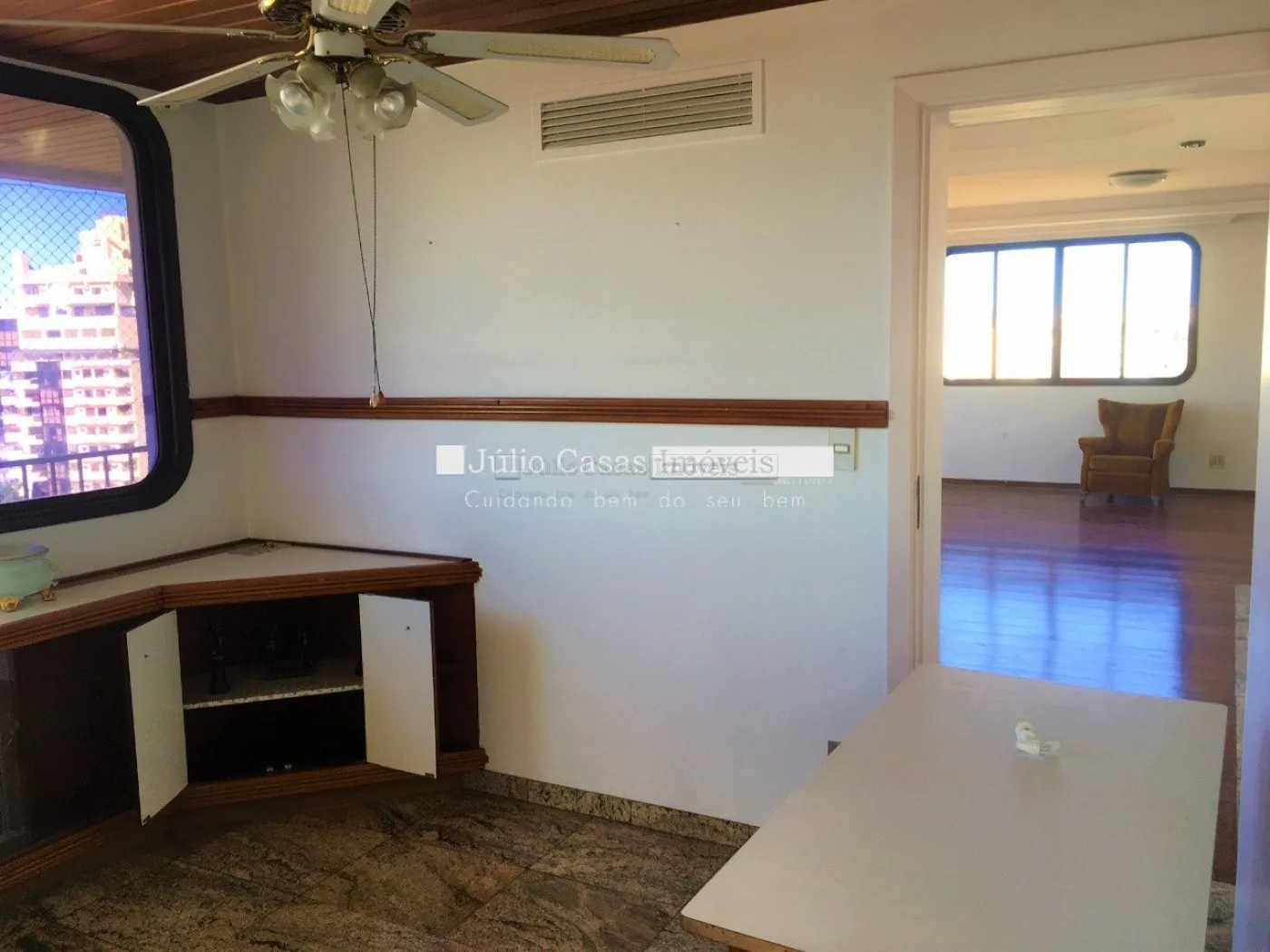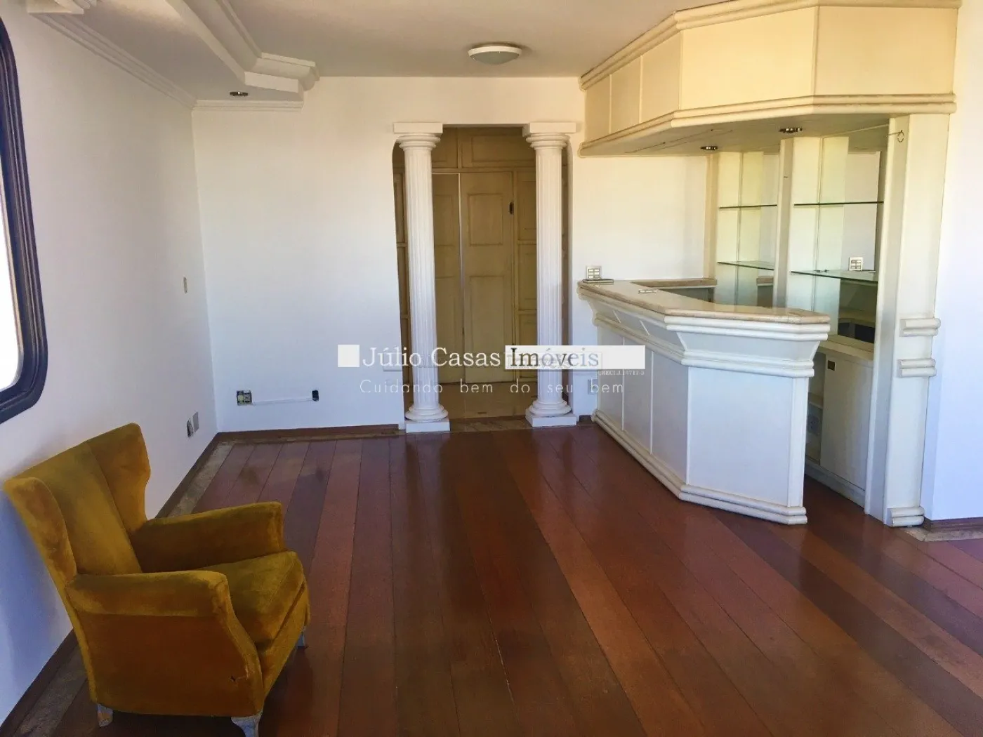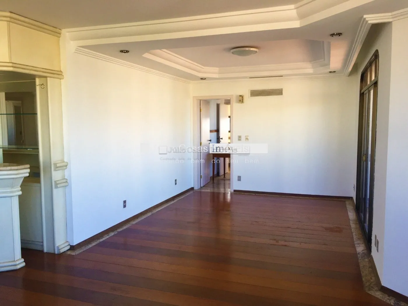 Possui sala para até três ambientes, com sacada e piso em madeira nobre.