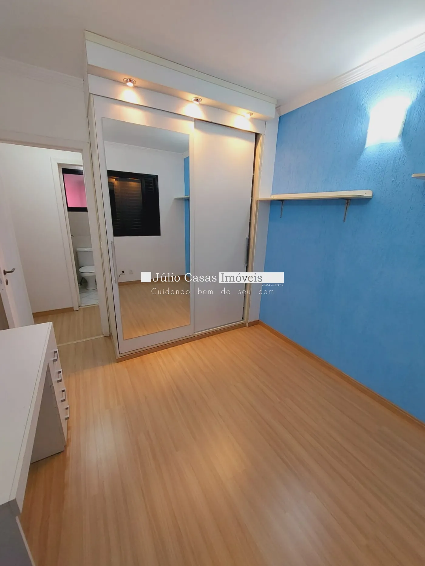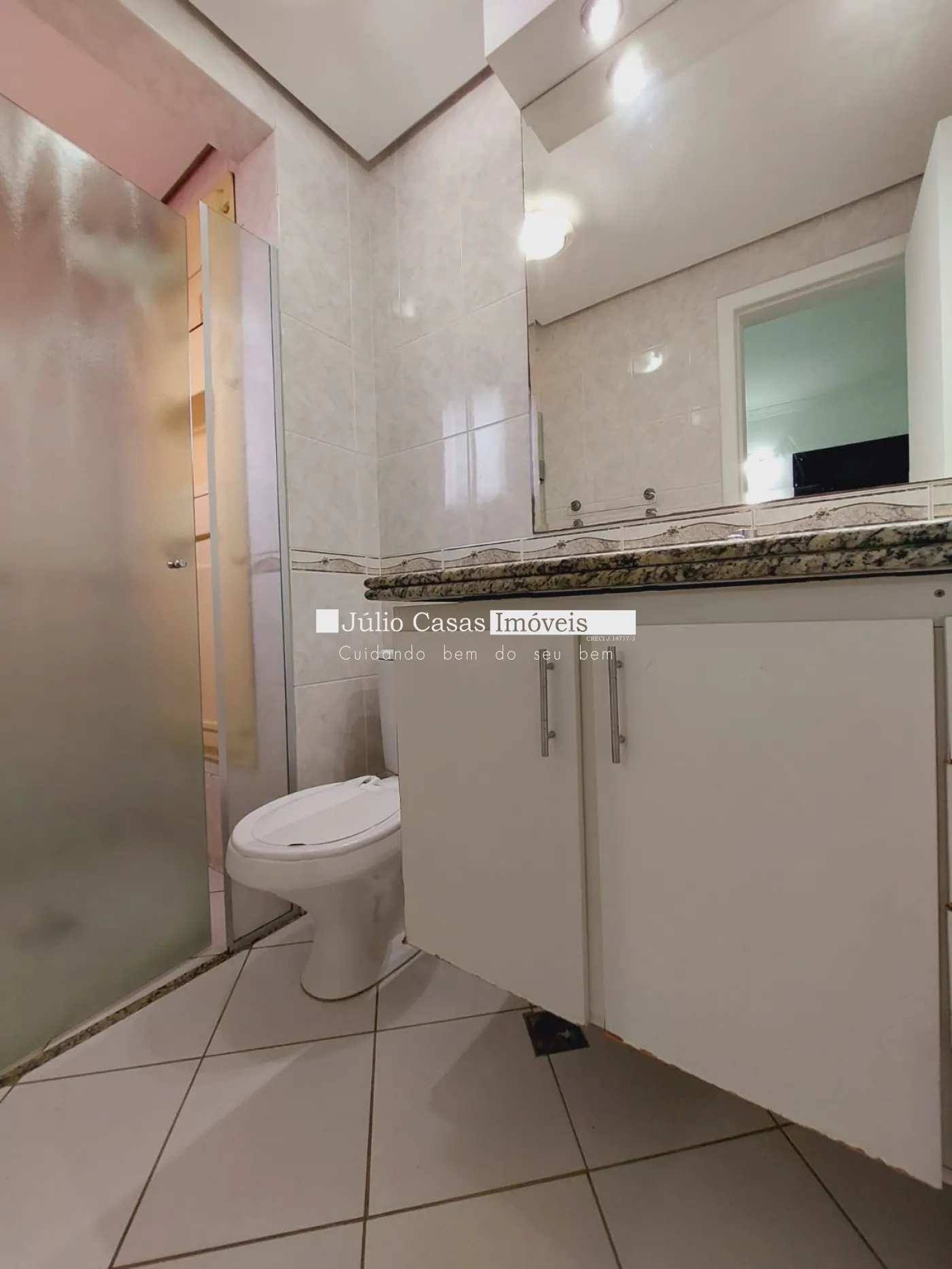 O apartamento dispõe de 3 dormitórios, sendo 2 suítes, todos com armários modulados, proporcionando praticidade e estilo. Os banheiros das suítes e o banheiro social estão equipados com box em vidro, gabinetes e bancadas em mármore, oferecendo conforto e sofisticação.
