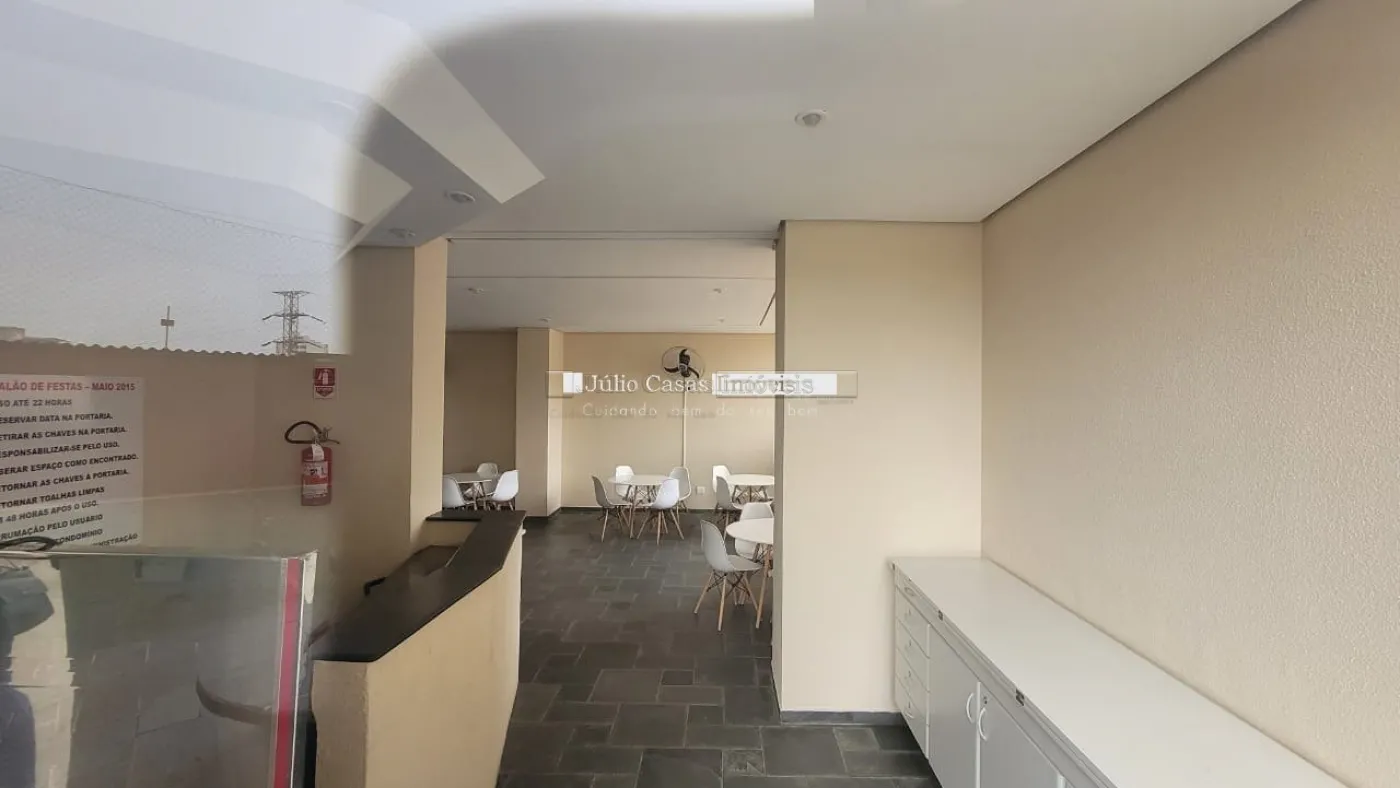 Condomínio possui piscina, brinquedoteca, quadra, jardim e um pequeno salão de festas. O prédio possui duas torres com 14 andares.
