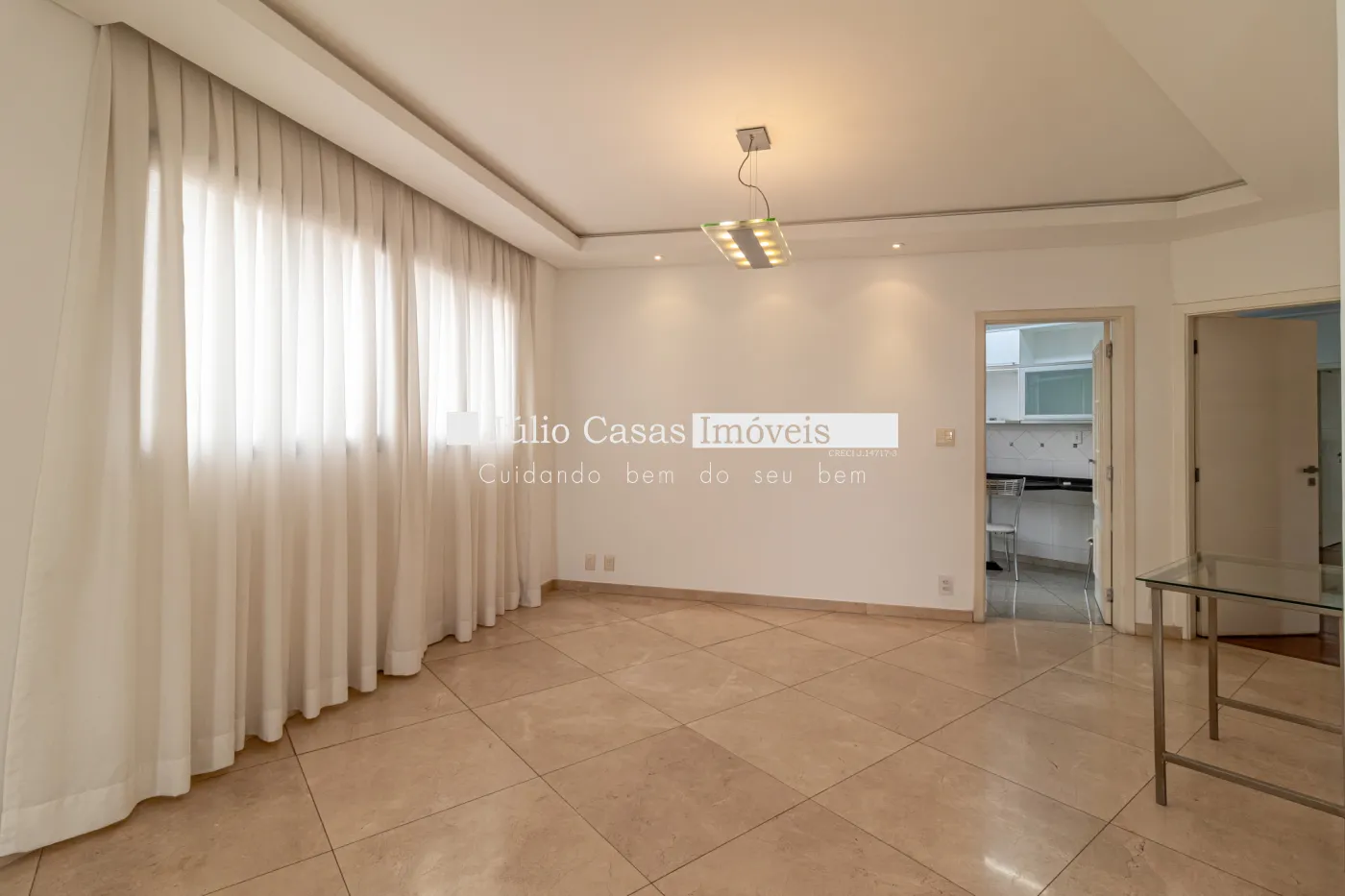 Este deslumbrante apartamento oferece um hall privativo que leva a uma ampla sala de dois ambientes, adornada com requintado mármore travertino, sancas elegantes e lustres sofisticados que criam uma atmosfera de sofisticação. As cortinas delicadas e a varanda convidativa proporcionam um espaço perfeito para relaxar. O ambiente é climatizado com um aparelho de ar condicionado, garantindo seu conforto em todas as estações.