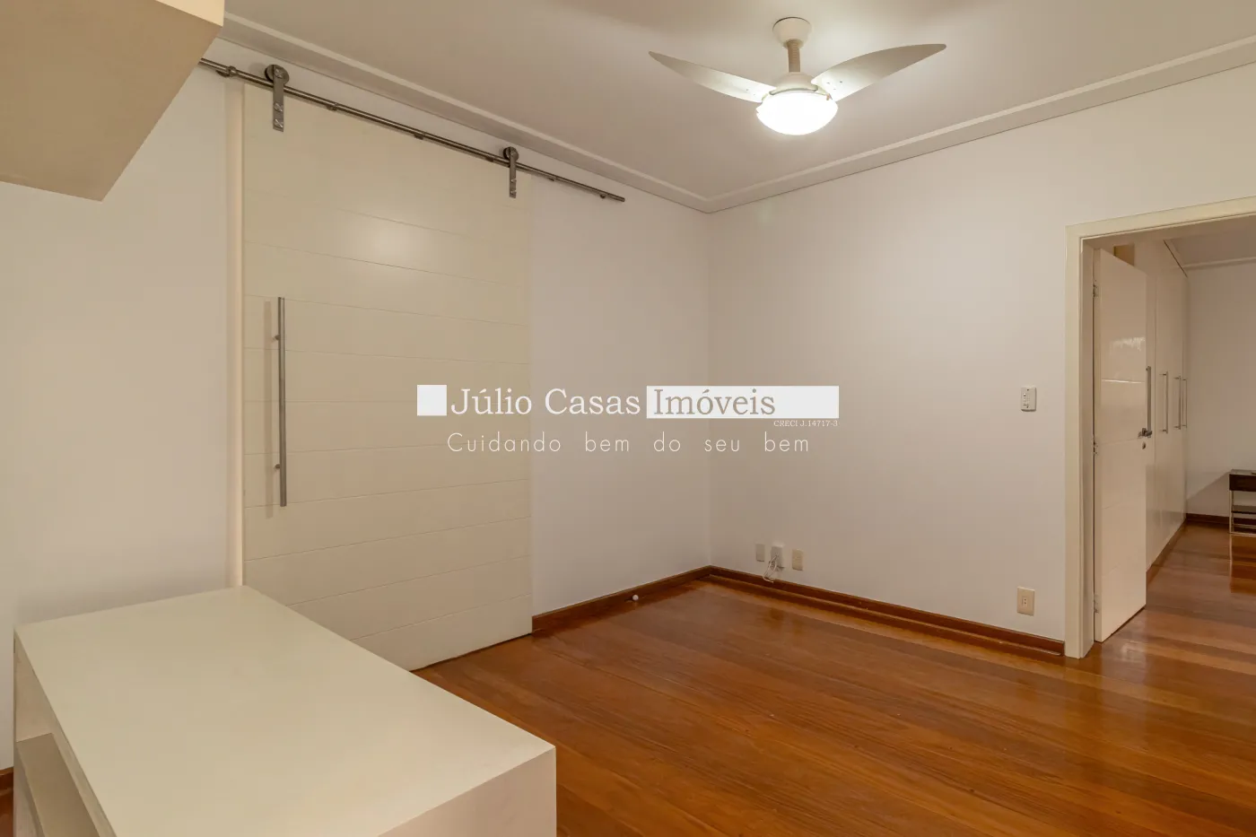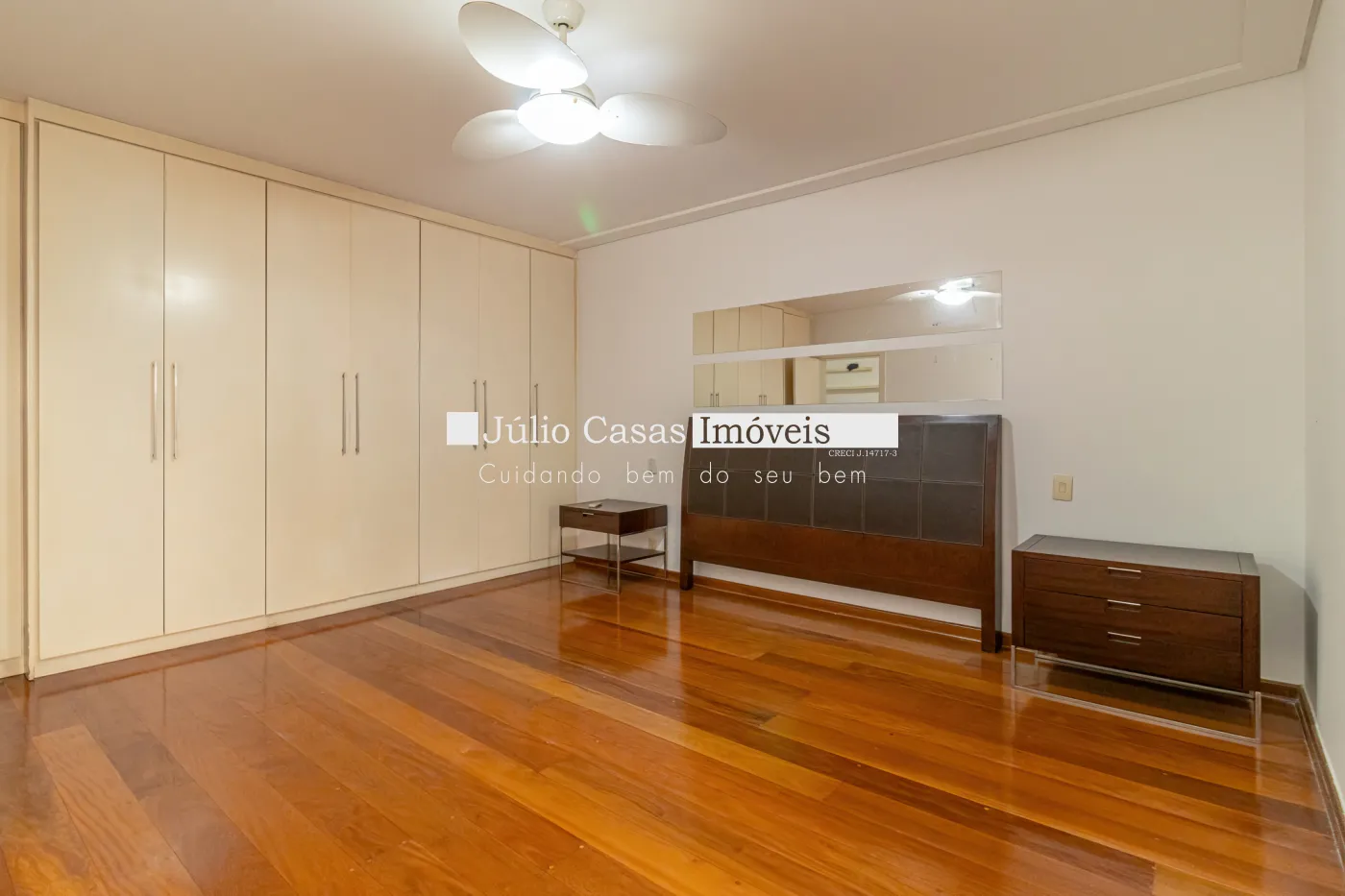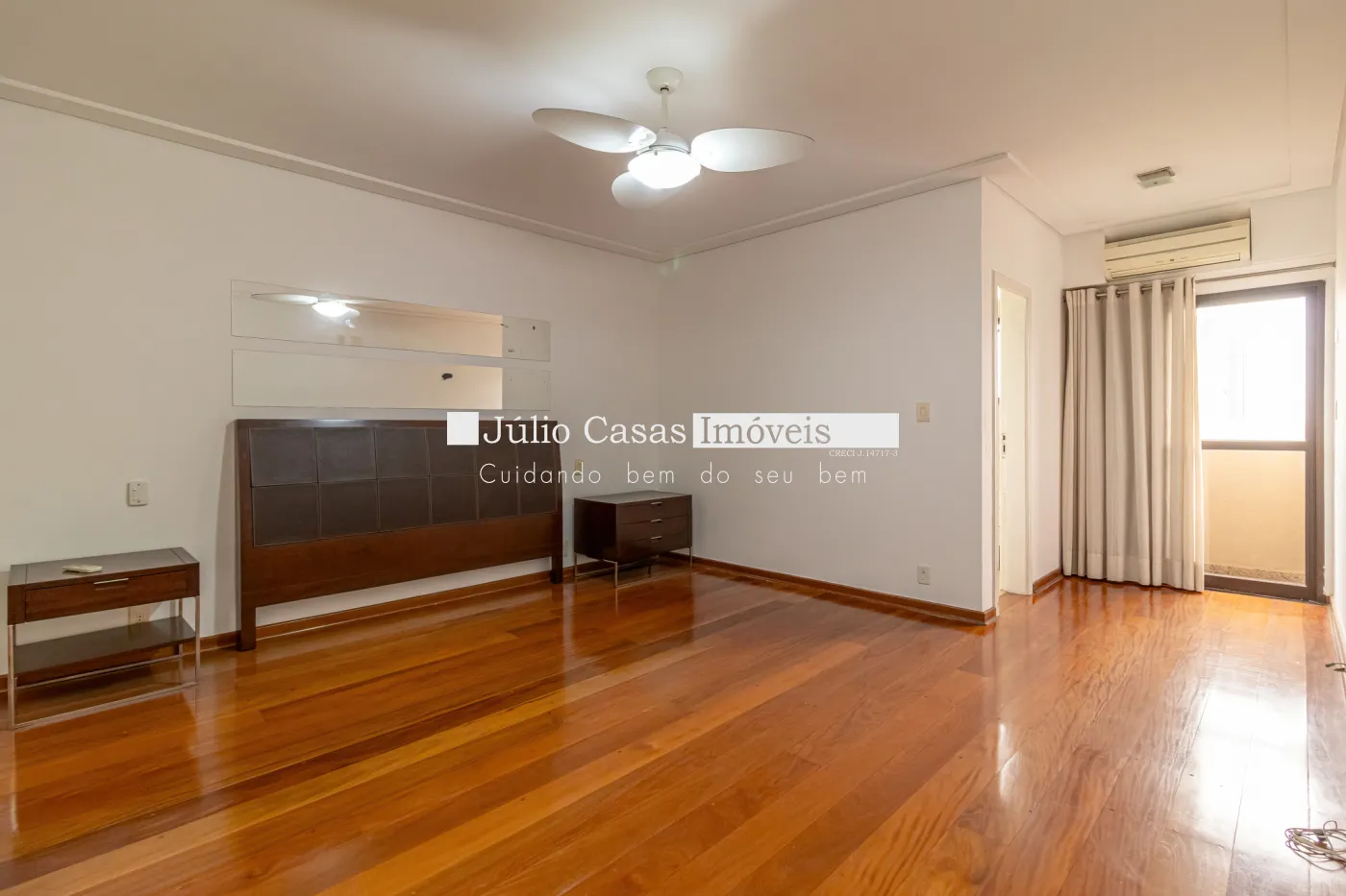 O apartamento possui 3 suítes moduladas, todas com sacada, sendo uma delas a luxuosa suíte master, equipada com ar-condicionado. Os outros dormitórios oferecem ventiladores de teto para um conforto adicional, e os pisos em madeira conferem um toque de elegância e aconchego.