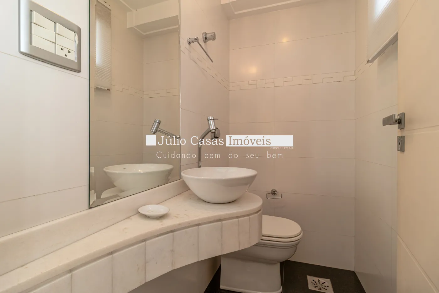 O lavabo impressiona com sua pia em mármore, enquanto a cozinha totalmente modulada é um verdadeiro convite à praticidade, contando com uma área de serviço que inclui uma completa dependência de empregada, tudo com piso de granito que adiciona funcionalidade e estilo.