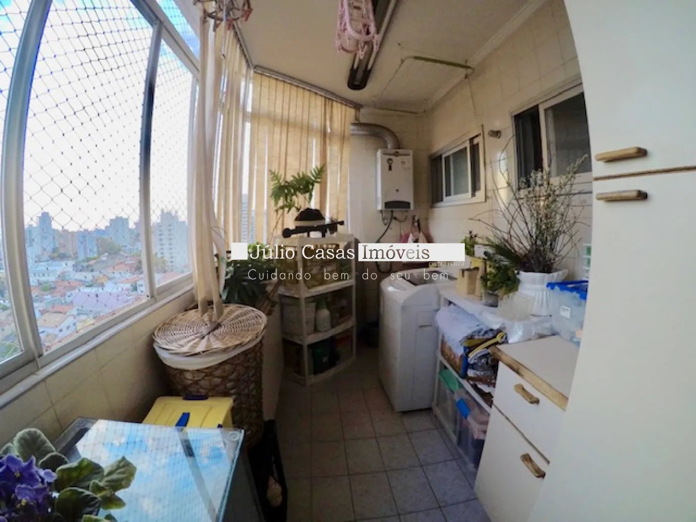 O apartamento apresenta piso de madeira nos quartos e na sala, criando um ambiente acolhedor, enquanto as demais áreas possuem piso cerâmico.