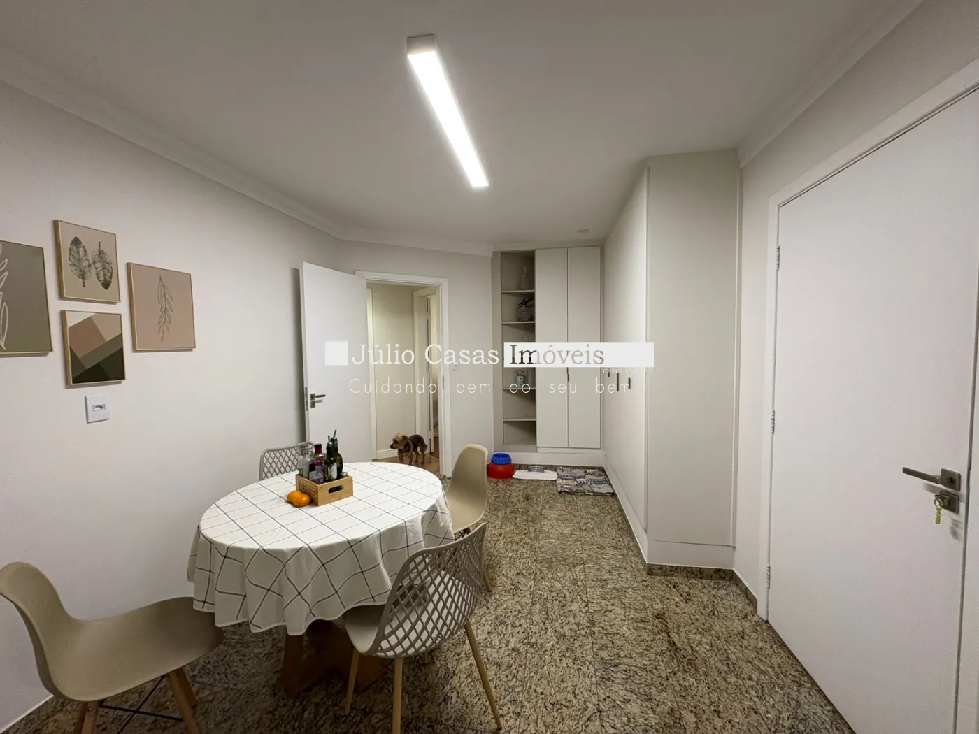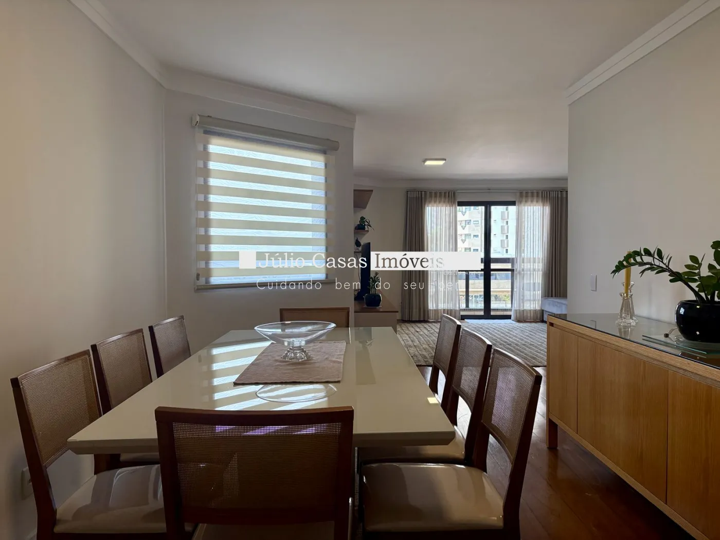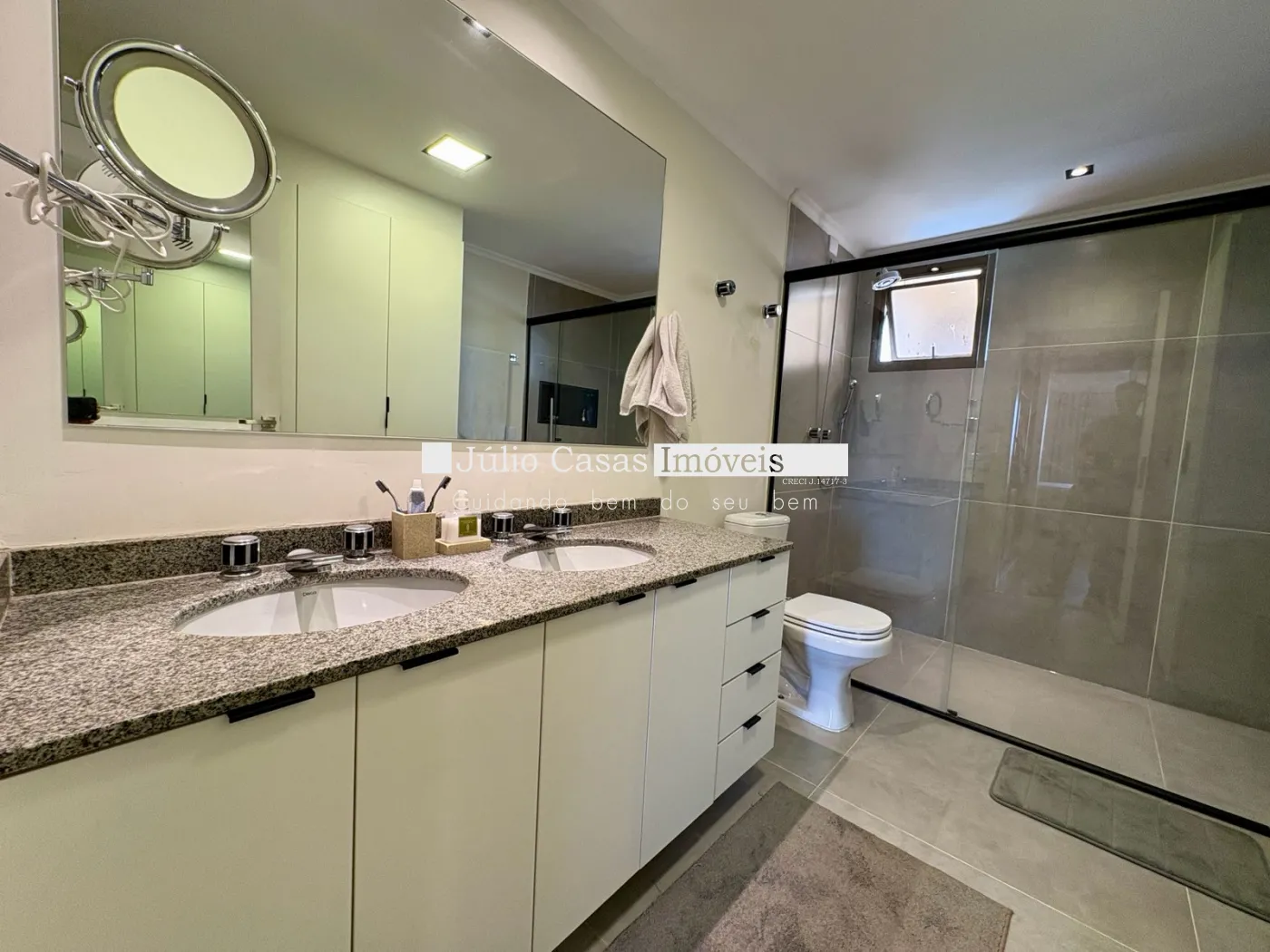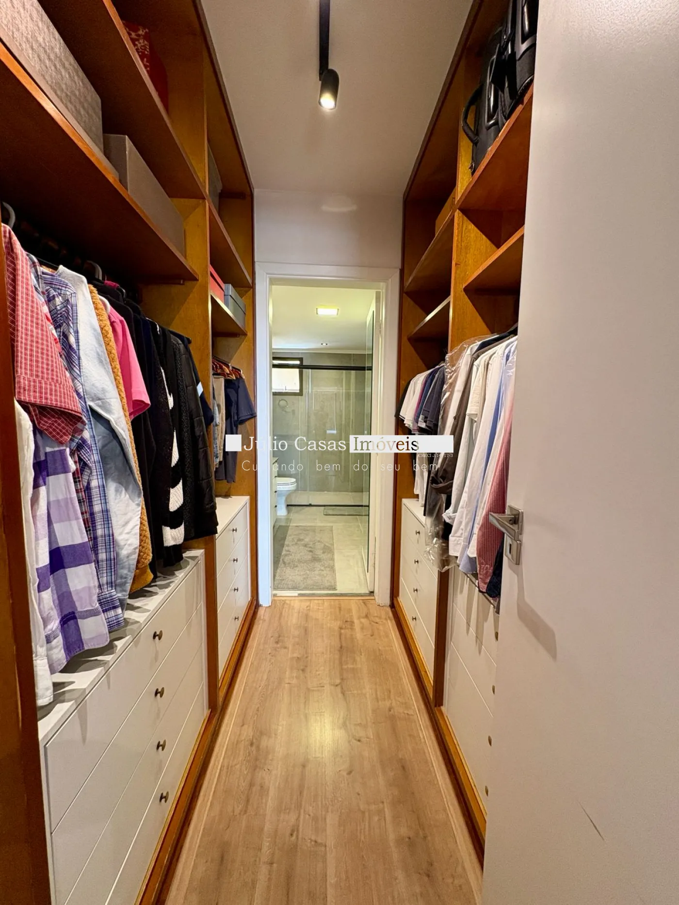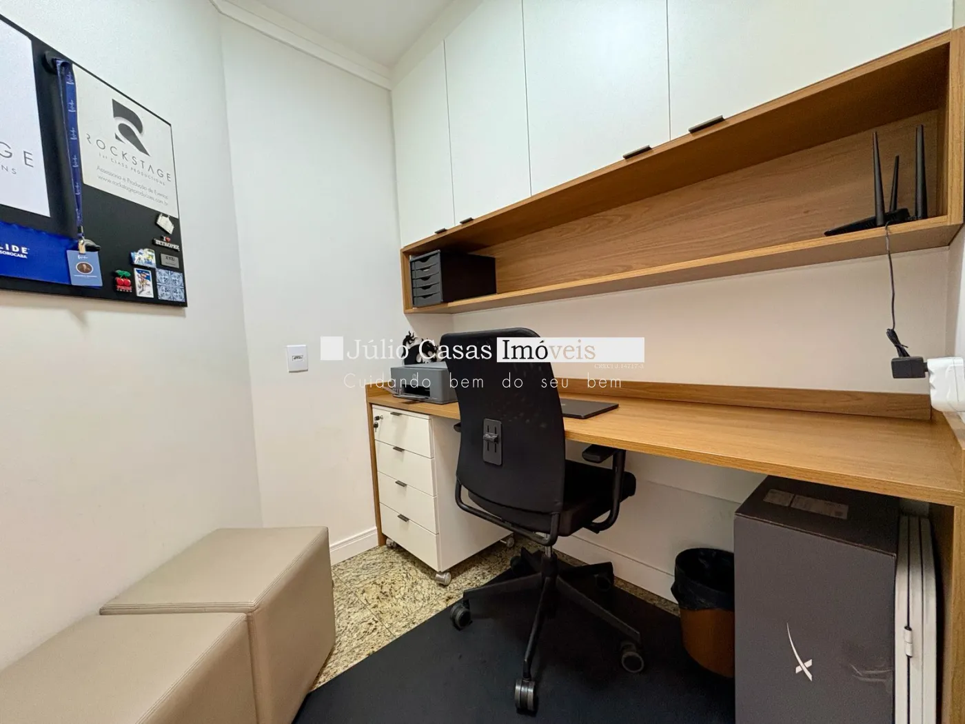 Apartamento muito bem localizado com sala dois ambientes, com sacada, em piso madeira, 3 suítes 2 com varanda e 1 com closet, todos modulados, cozinha com copa modulada, área de serviço com dependência de empregada completa, piso em granito nas áreas frias, quartos em carpetes de madeira, 2 vagas de garagem gaveta, elevador privativo.