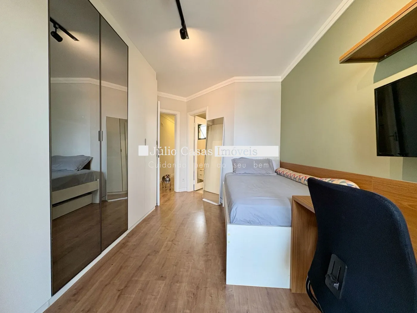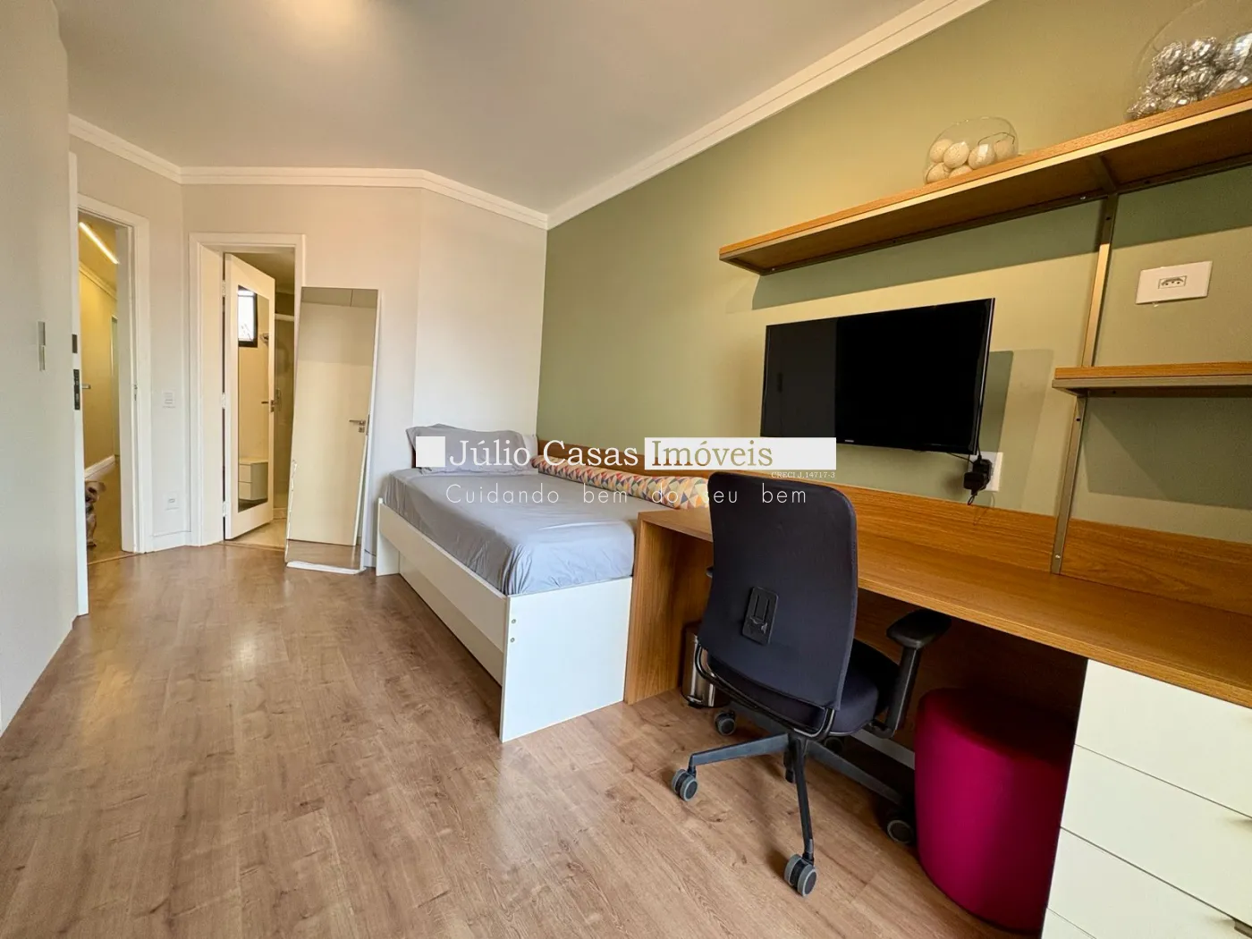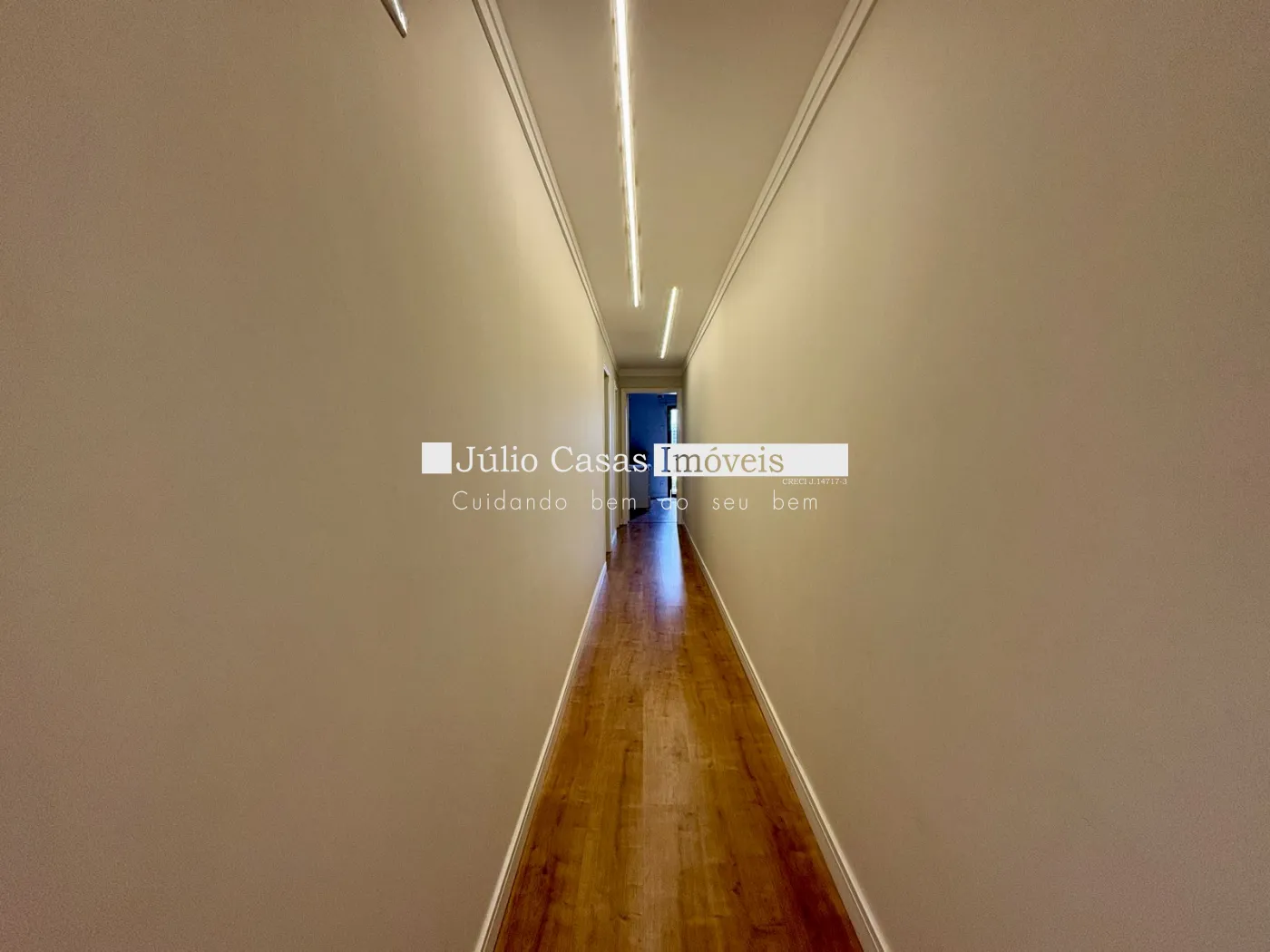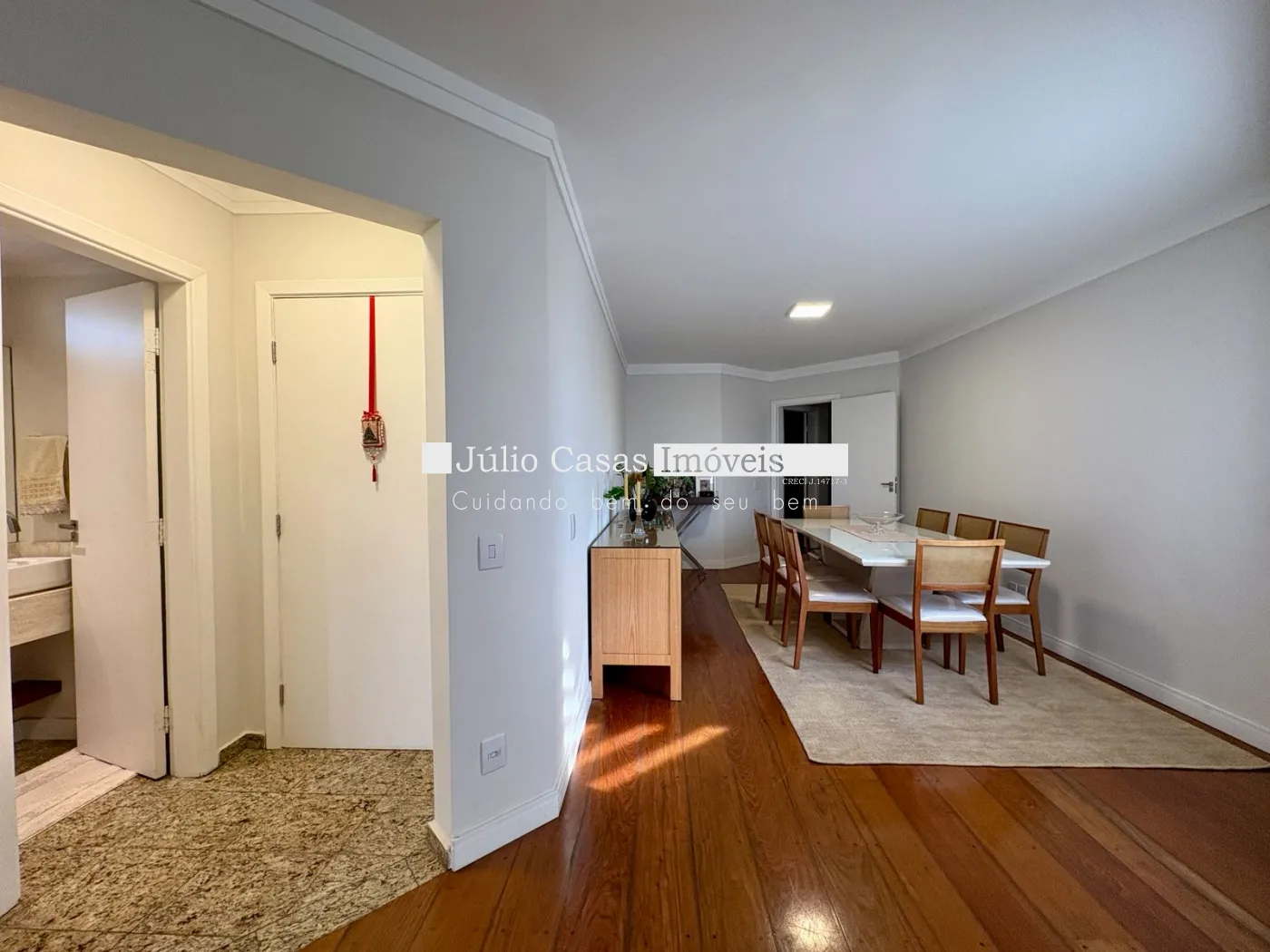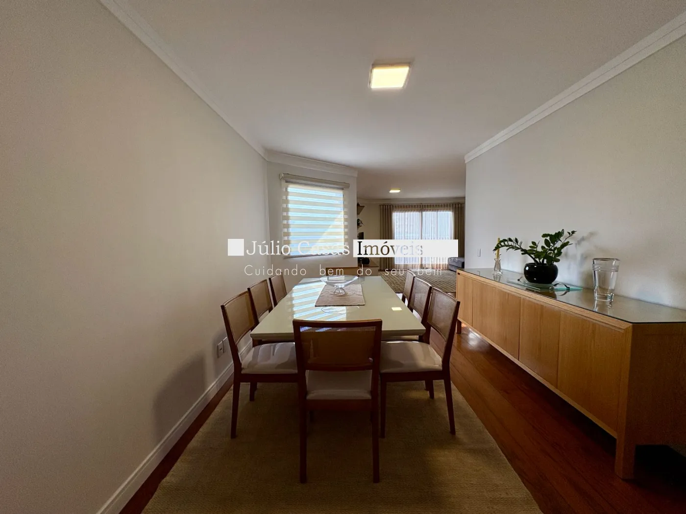 Apartamento muito bem localizado com sala dois ambientes, com sacada, em piso madeira, 3 suítes 2 com varanda e 1 com closet, todos modulados, cozinha com copa modulada, área de serviço com dependência de empregada completa, piso em granito nas áreas frias, quartos em carpetes de madeira, 2 vagas de garagem gaveta, elevador privativo.